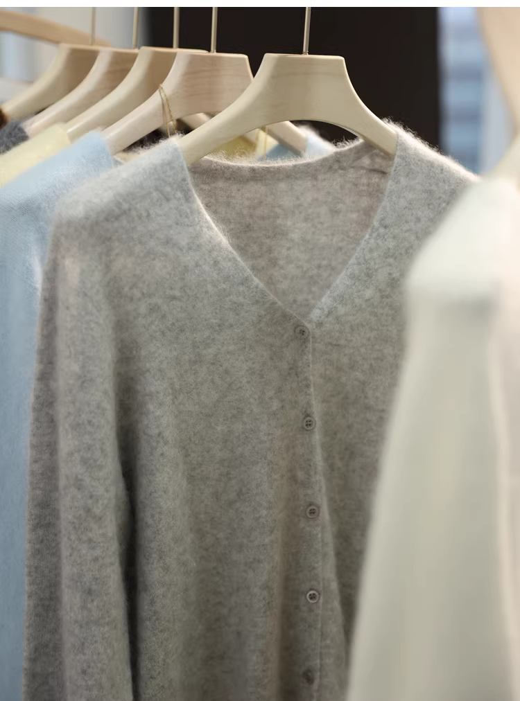 Áo len cardigan mây mềm mại, chất liệu len cashmere chải kỹ 28 sợi, dệt kim liền mạch cổ V dành cho nữ, mẫu mới mùa thu