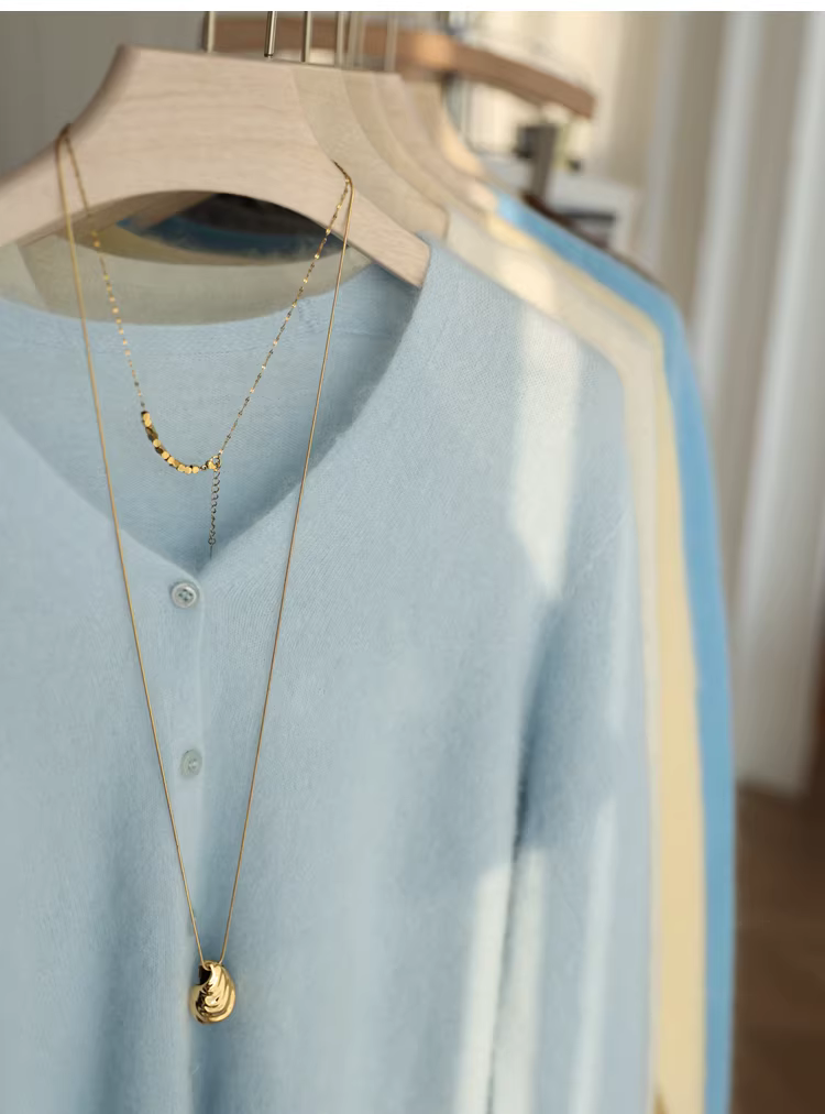 - Áo len cardigan mây mềm mại, chất liệu len cashmere chải kỹ 28 sợi, dệt kim liền mạch cổ V dành cho nữ, mẫu mới mùa thu