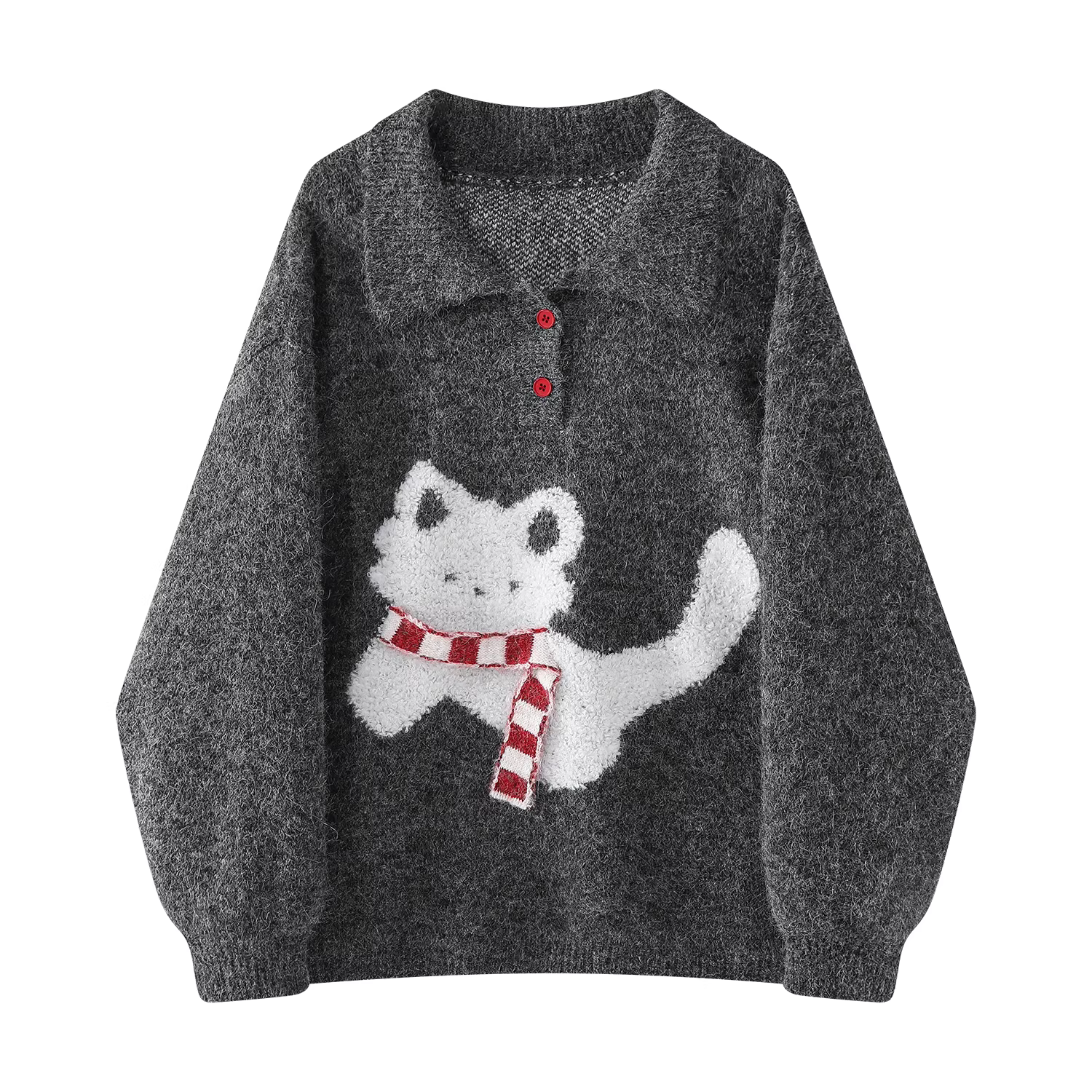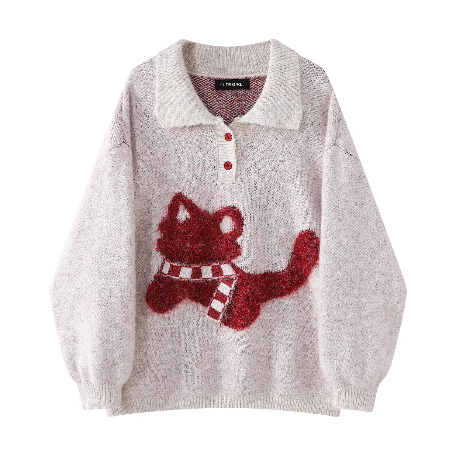 - Áo len chui đầu cổ polo kiểu Hàn Quốc dễ thương dành cho nữ, chất liệu dệt kim dáng rộng, mùa thu đông