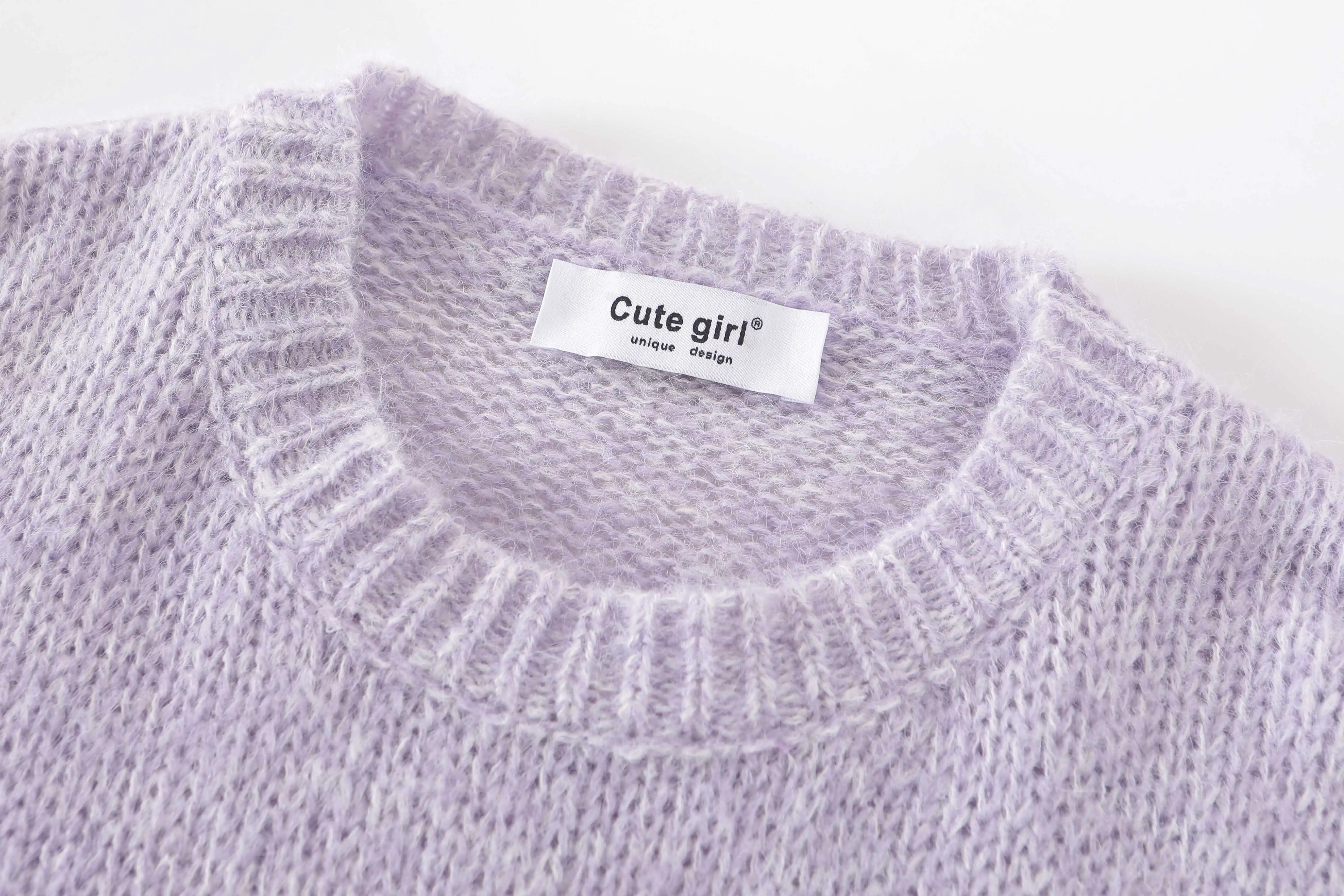 - Áo len chui đầu cổ tròn màu tím gradient cao cấp của CuteGirl dành cho nữ, áo dệt kim mềm mại và rộng rãi cho mùa thu đông.