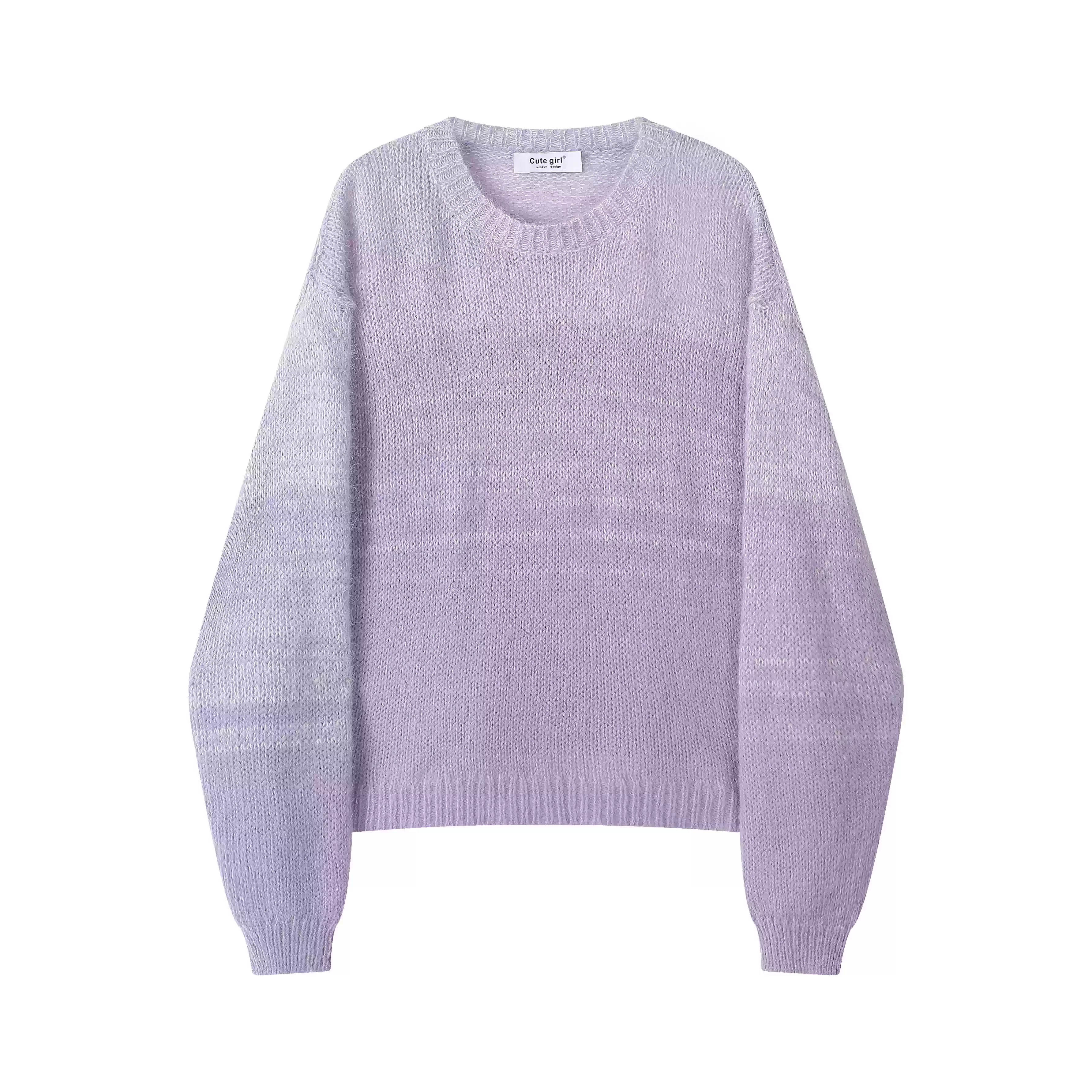 Áo len chui đầu cổ tròn màu tím gradient cao cấp của CuteGirl dành cho nữ, áo dệt kim mềm mại và rộng rãi cho mùa thu đông.