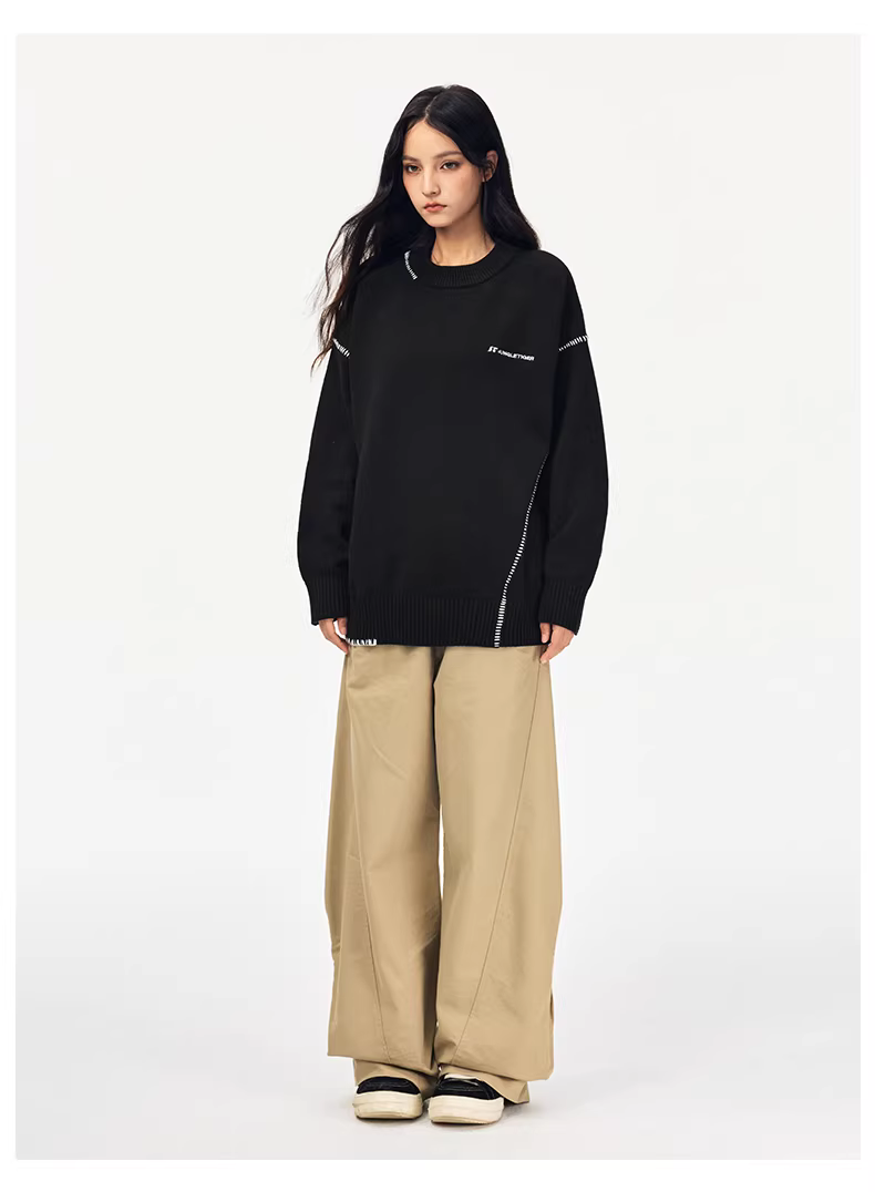 - Áo len chui đầu cổ tròn thêu hình hổ rừng dành cho nam và nữ Thu/Đông 2025, kiểu dáng rộng rãi, đa năng, chất liệu dệt kim