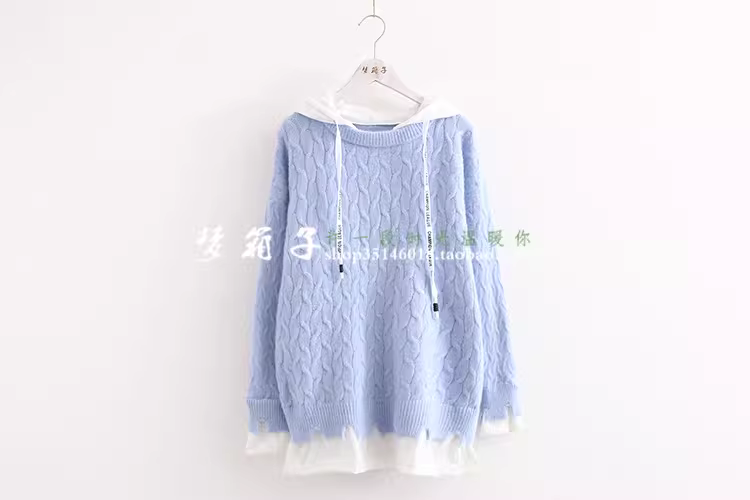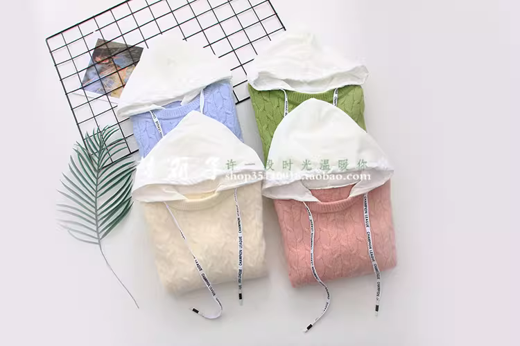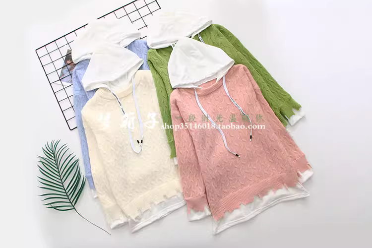 字母帽绳,假两件设计,宽松甜美款