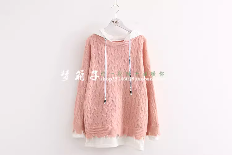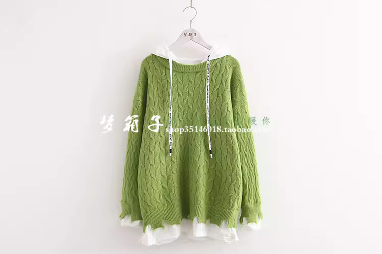 - Áo len chui đầu dáng rộng dệt kim vintage mùa thu 2025 Dream Box dành cho nữ, màu trơn tươi mới, kiểu giả hai mảnh