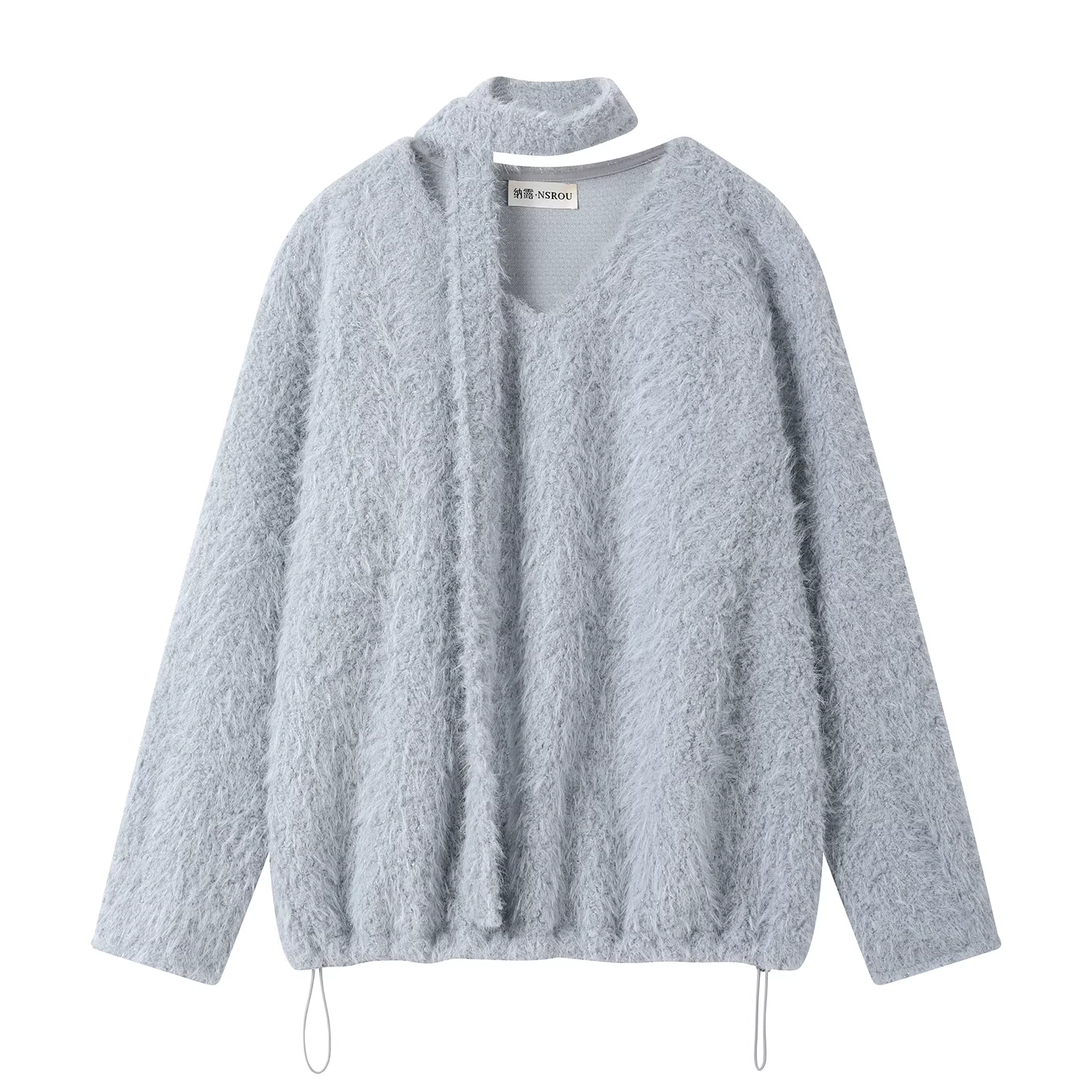 - Áo len cổ chữ V dáng rộng và giản dị phong cách Hàn Quốc dành cho nữ, áo dệt kim đa năng có dây buộc cho mùa thu đông.