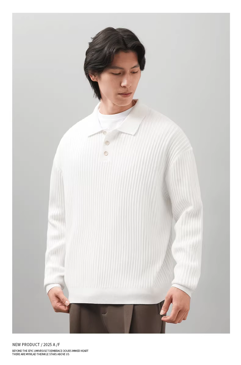 • Áo len cổ điển truyền thống dành cho nam, mùa thu đông, kiểu dáng giản dị Mỹ, áo cổ POLO, áo khoác dệt kim thường ngày.