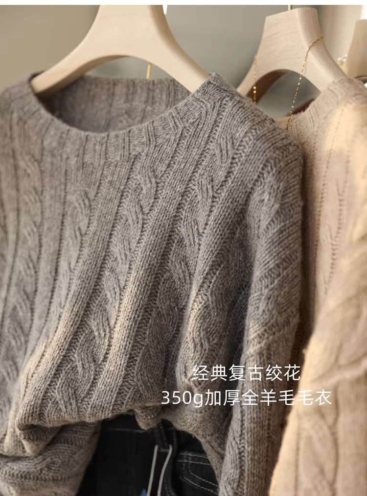 Áo len cổ tròn dáng rộng, chất liệu len nguyên chất dày dặn 350g, kiểu dáng cổ điển, dệt kim liền mạch, dành cho nữ, mẫu mới thu đông.