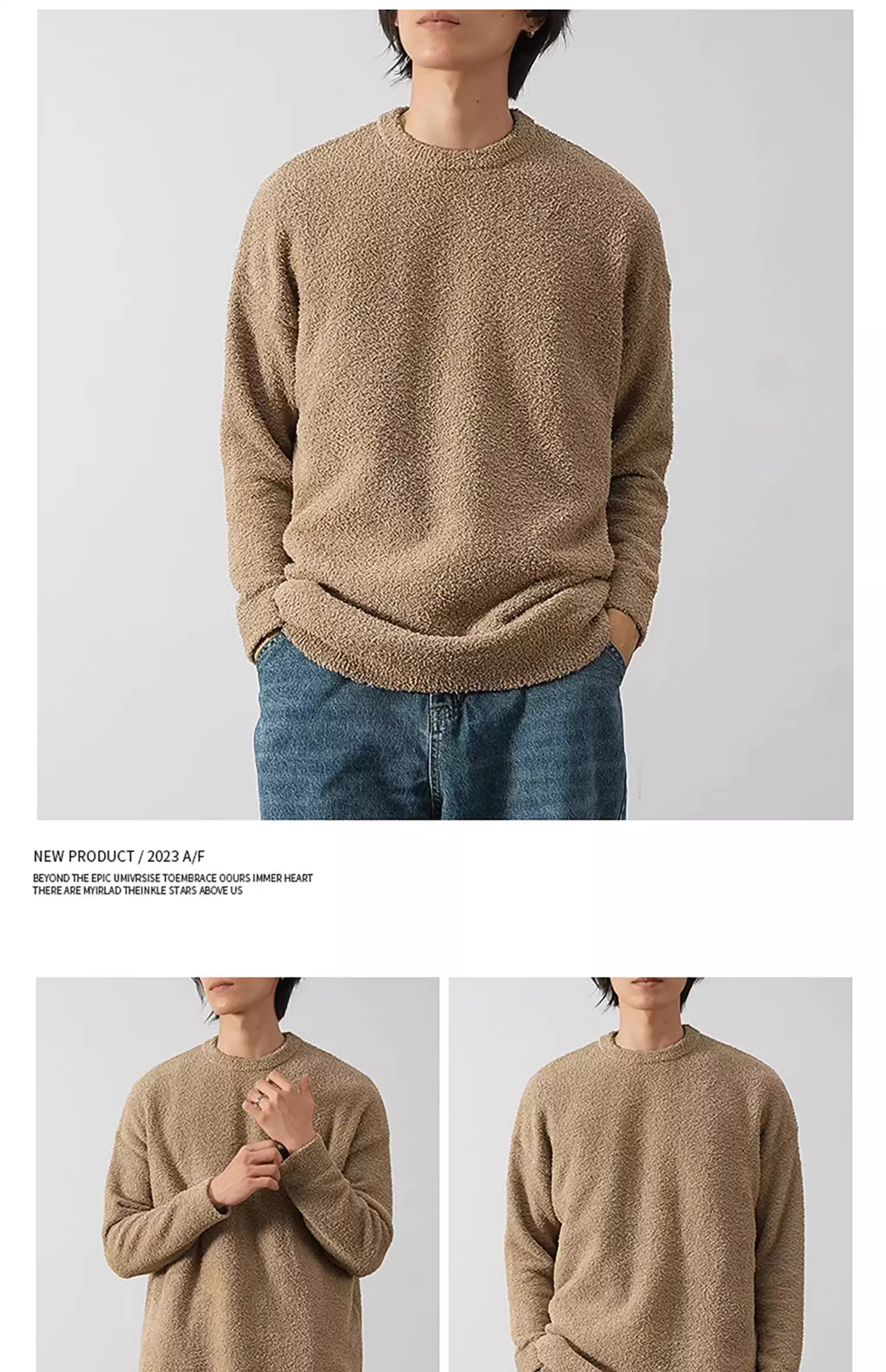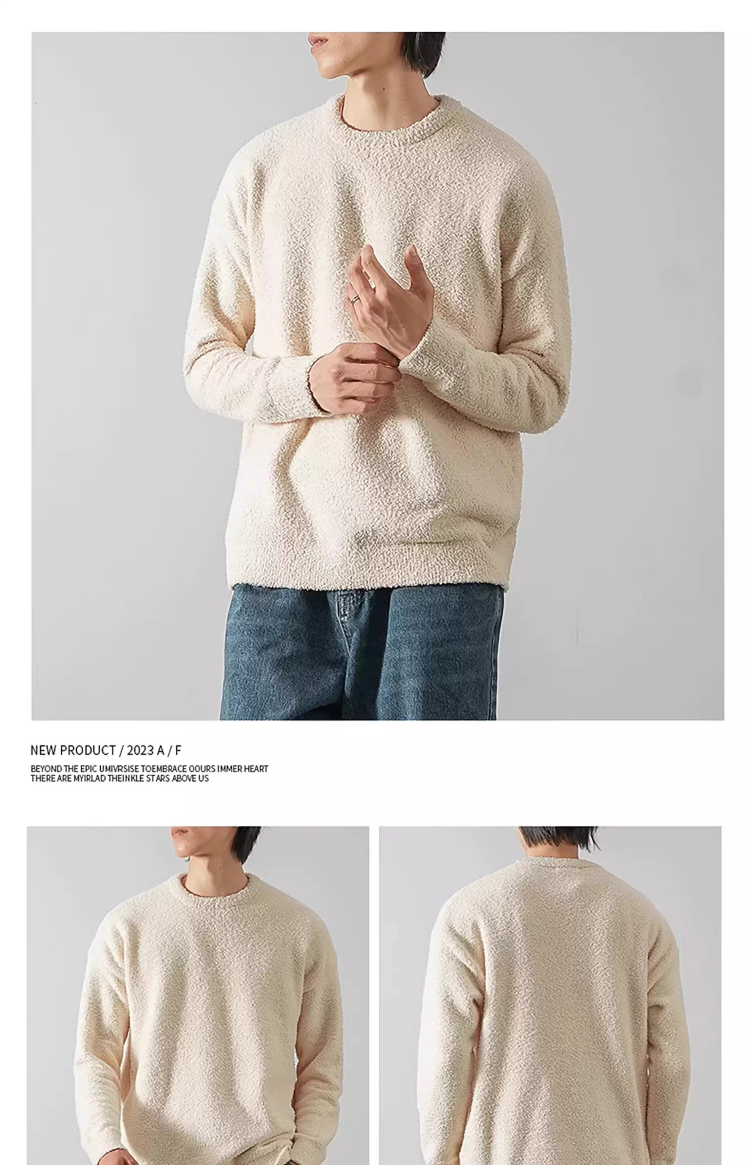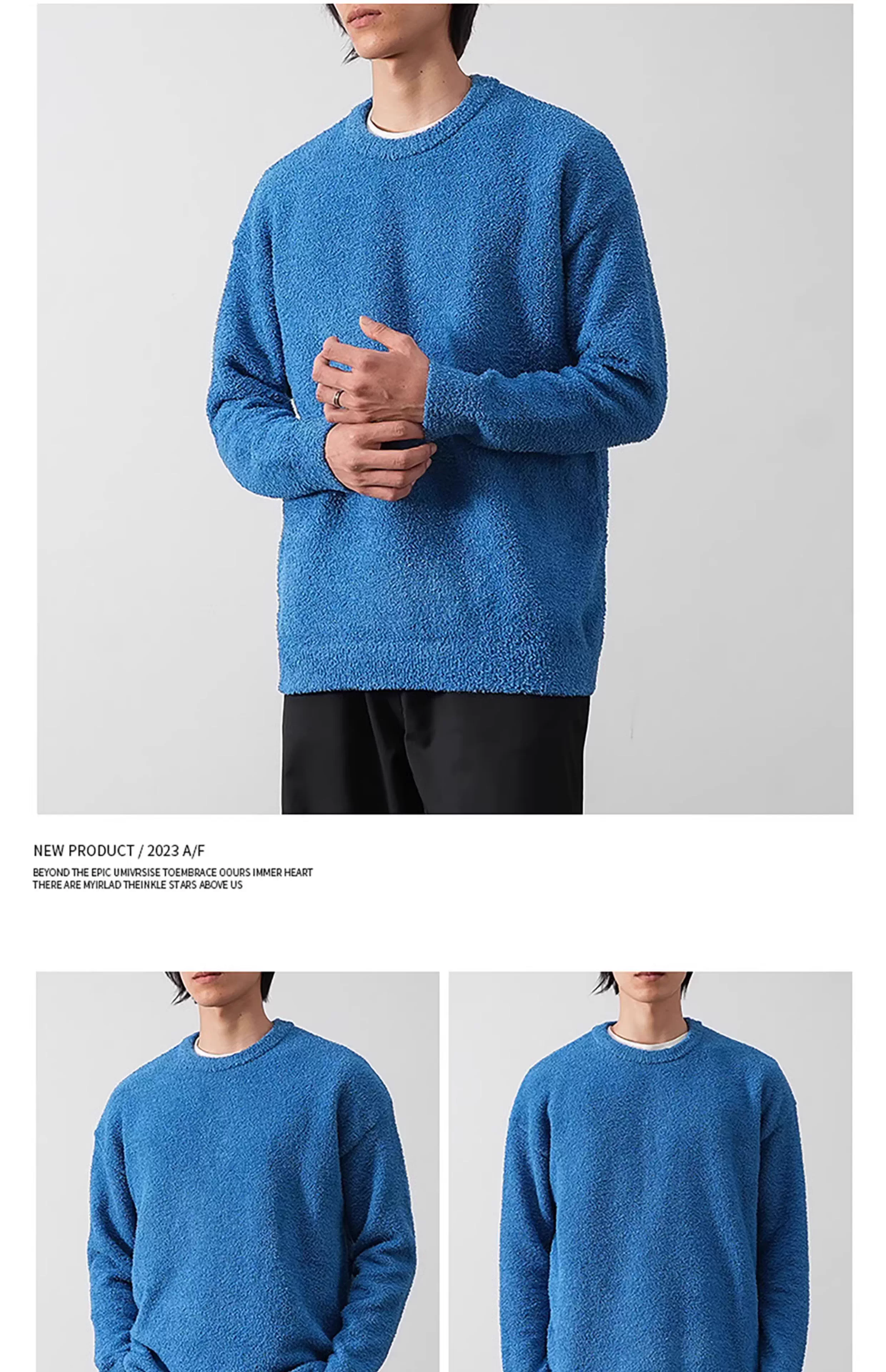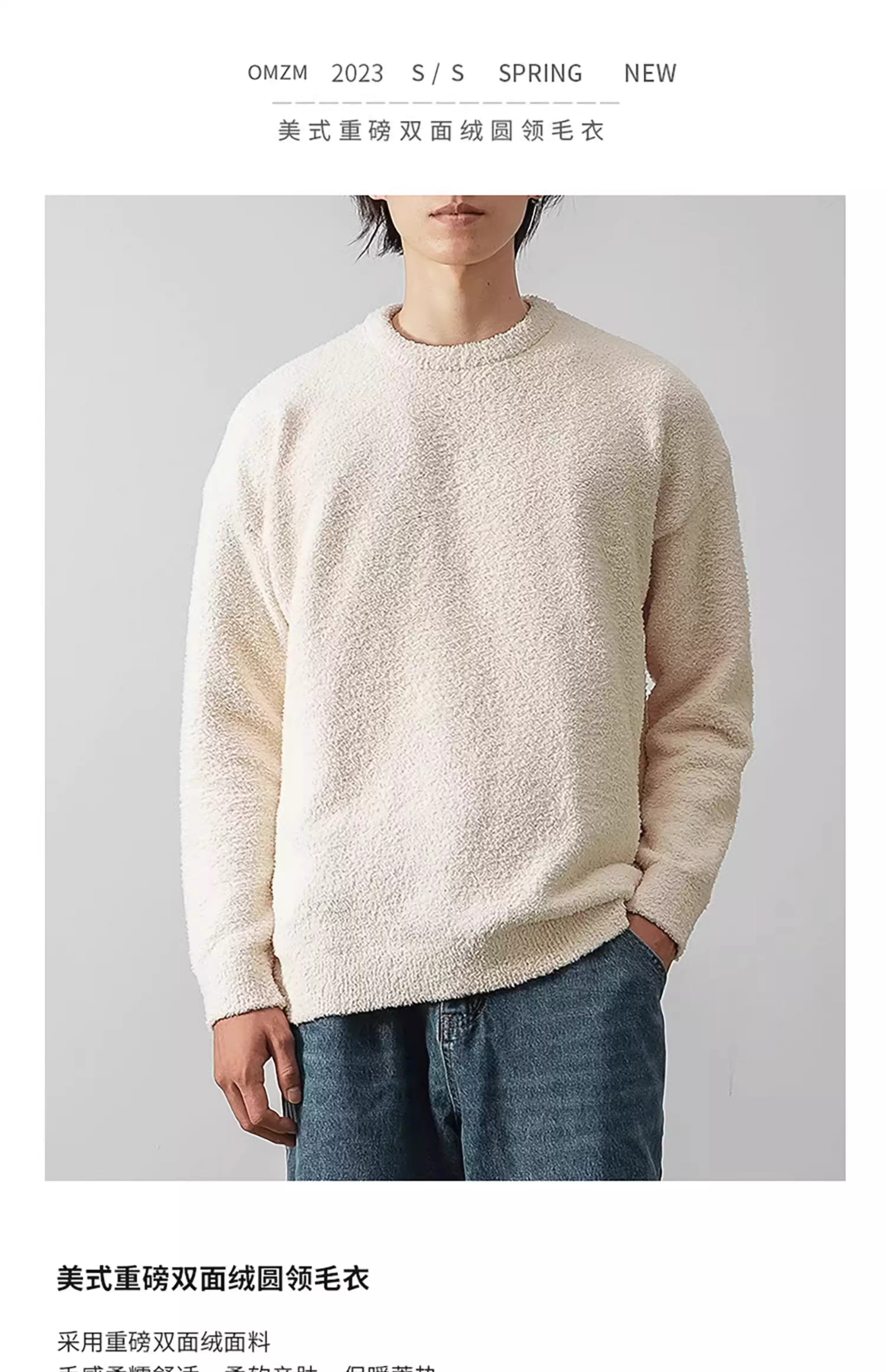 - Áo len cổ tròn hai mặt cực mềm OMZM dành cho nam, áo len dệt kim màu trơn dày dặn mới mùa thu đông 2023