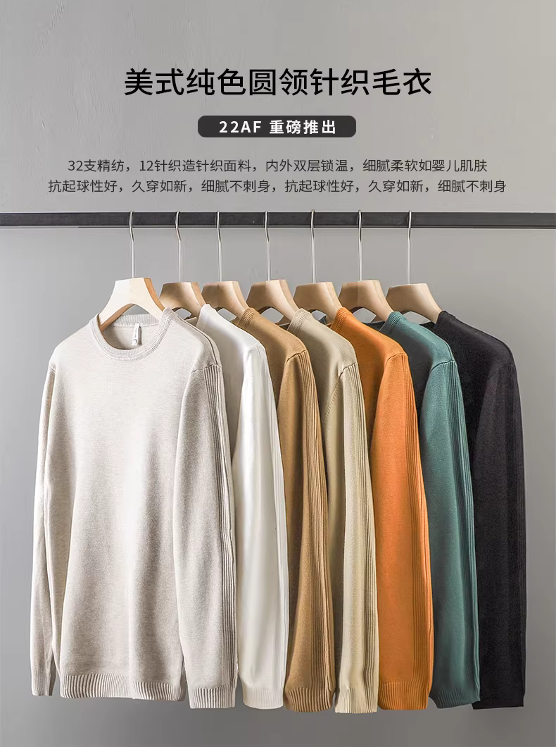 Áo len cổ tròn hạng nặng kiểu Mỹ dành cho nam, dày dặn cho mùa đông, chất liệu dệt kim ấm áp, phong cách giản dị, màu trơn, áo lót bên trong kiểu cổ điển.