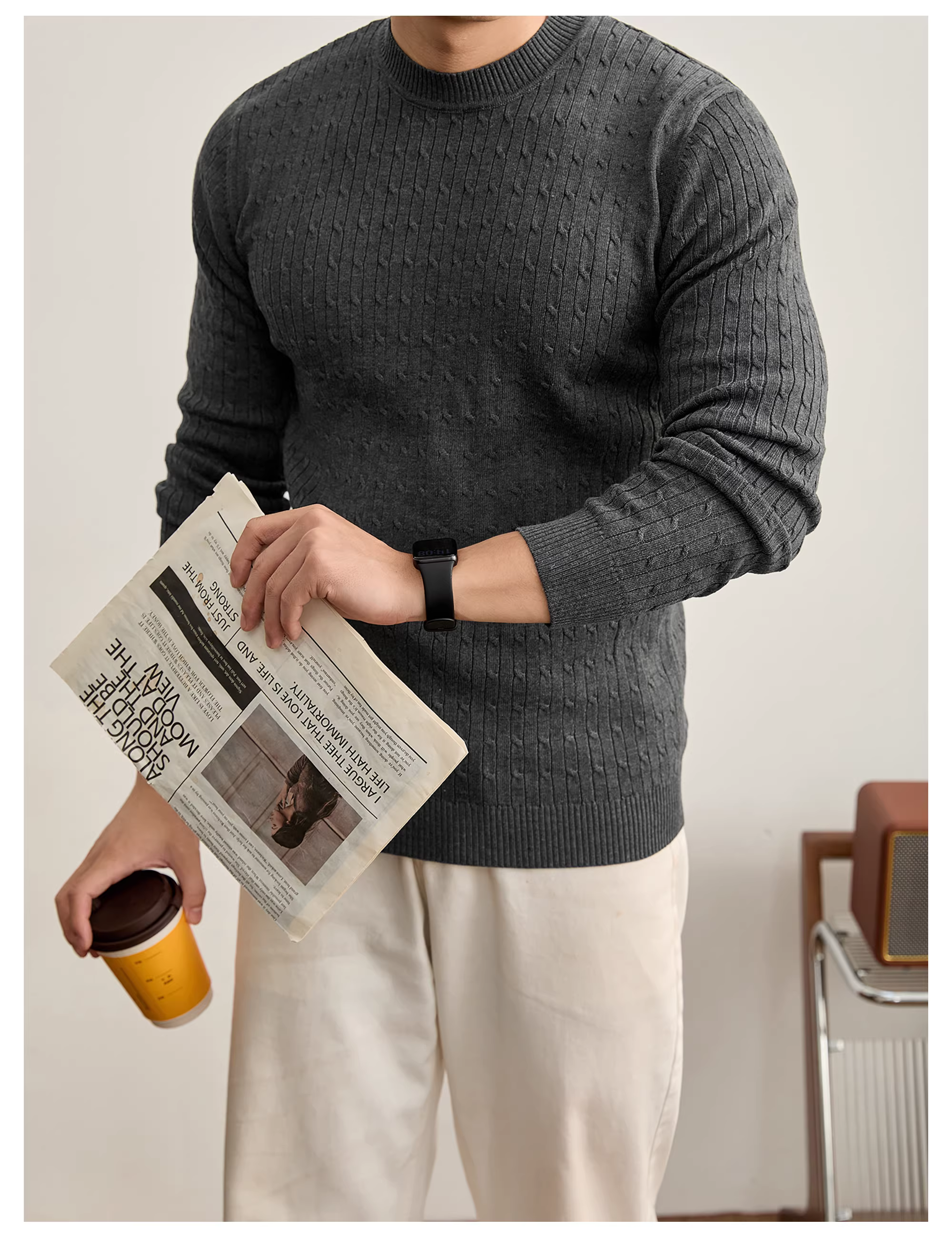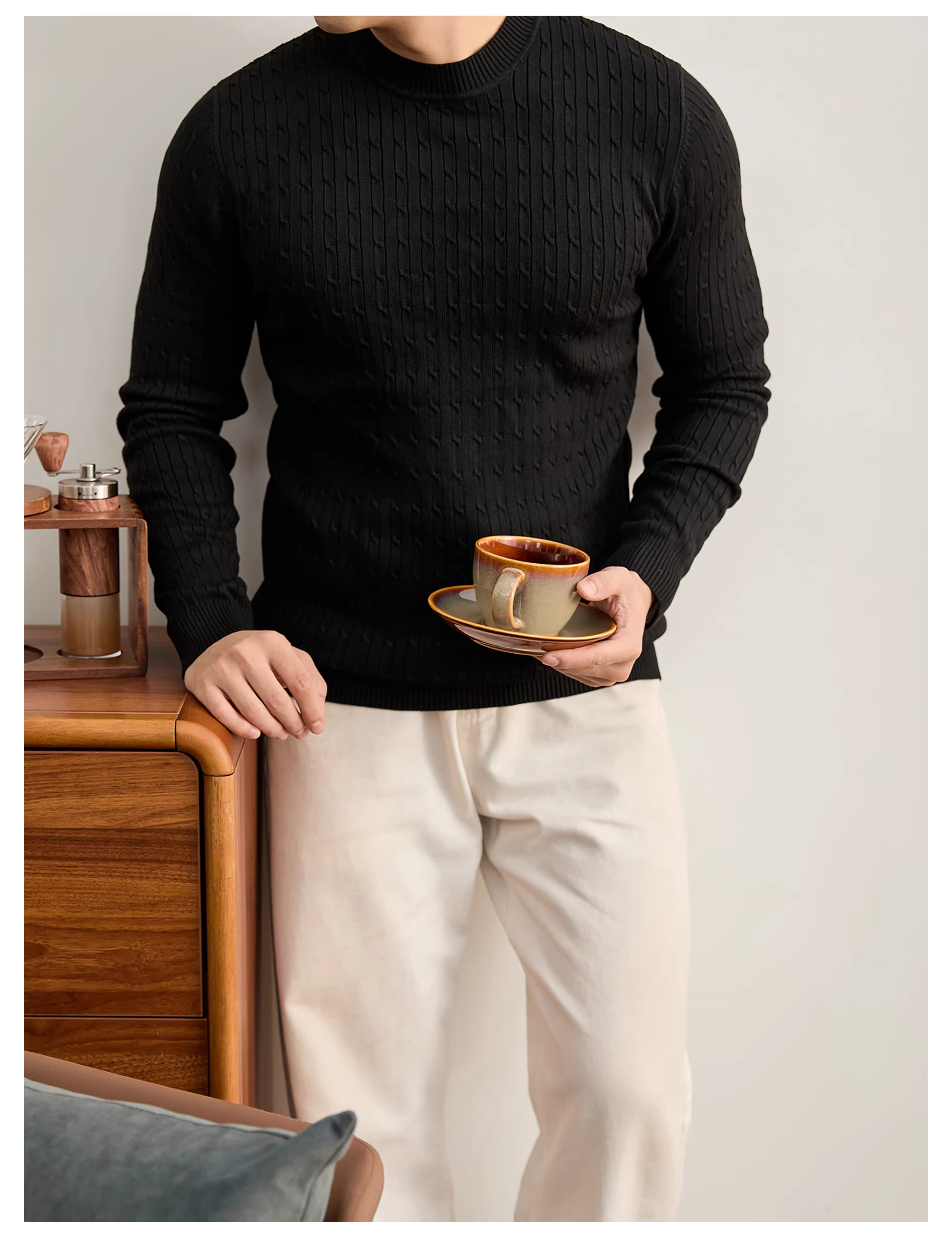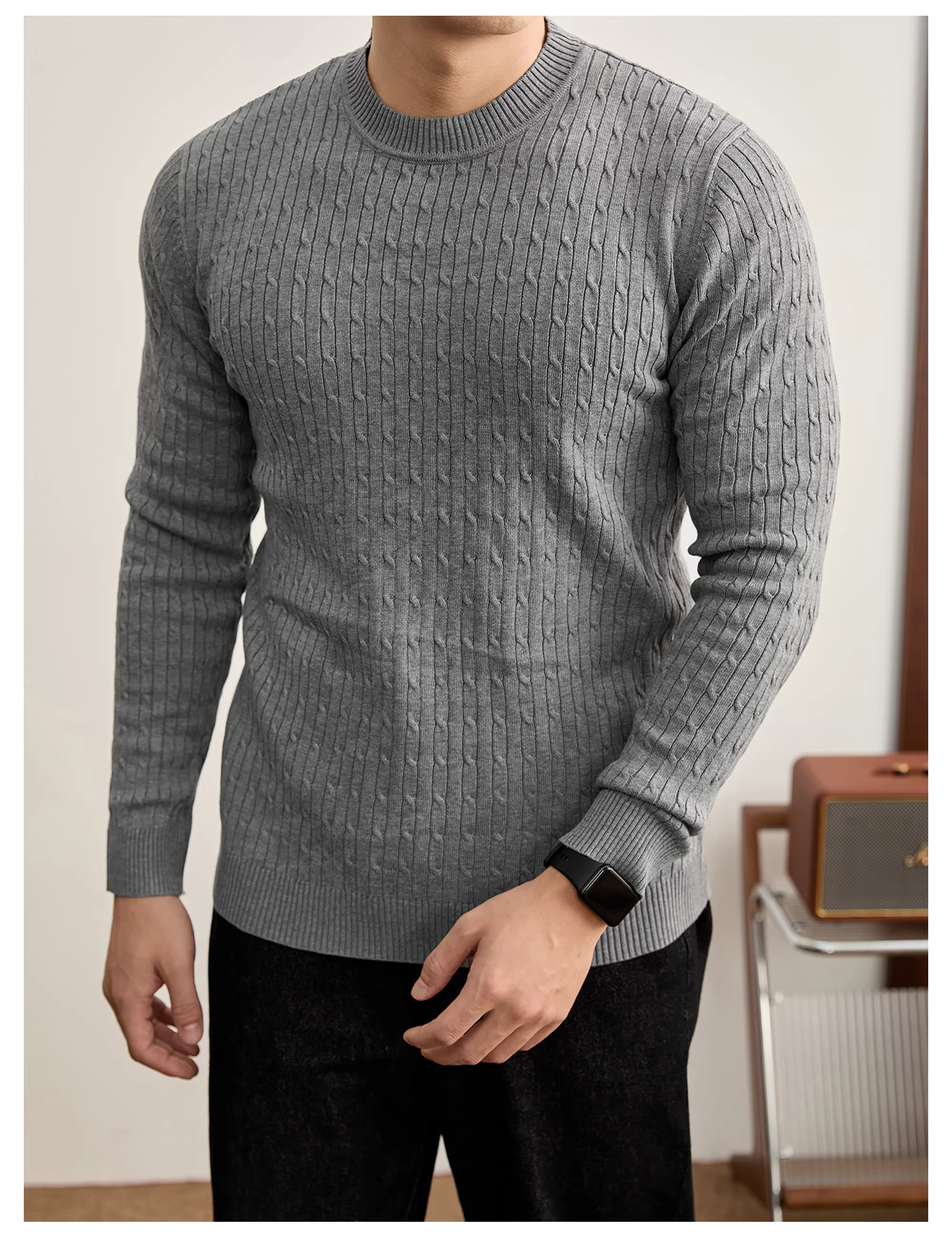 - Áo len cổ tròn phong cách mùa thu đông ấm áp kiểu Nhật LUUD dành cho nam với chất liệu dệt kim kiểu cáp, trang phục dệt kim đơn giản và đa năng