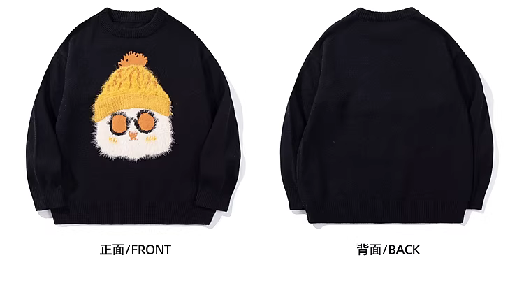 - Áo len cổ tròn thiết kế hoạt hình cổ điển của Wukong dành cho nam, thương hiệu thời thượng, dáng rộng, áo dệt kim đa năng dành cho cặp đôi.