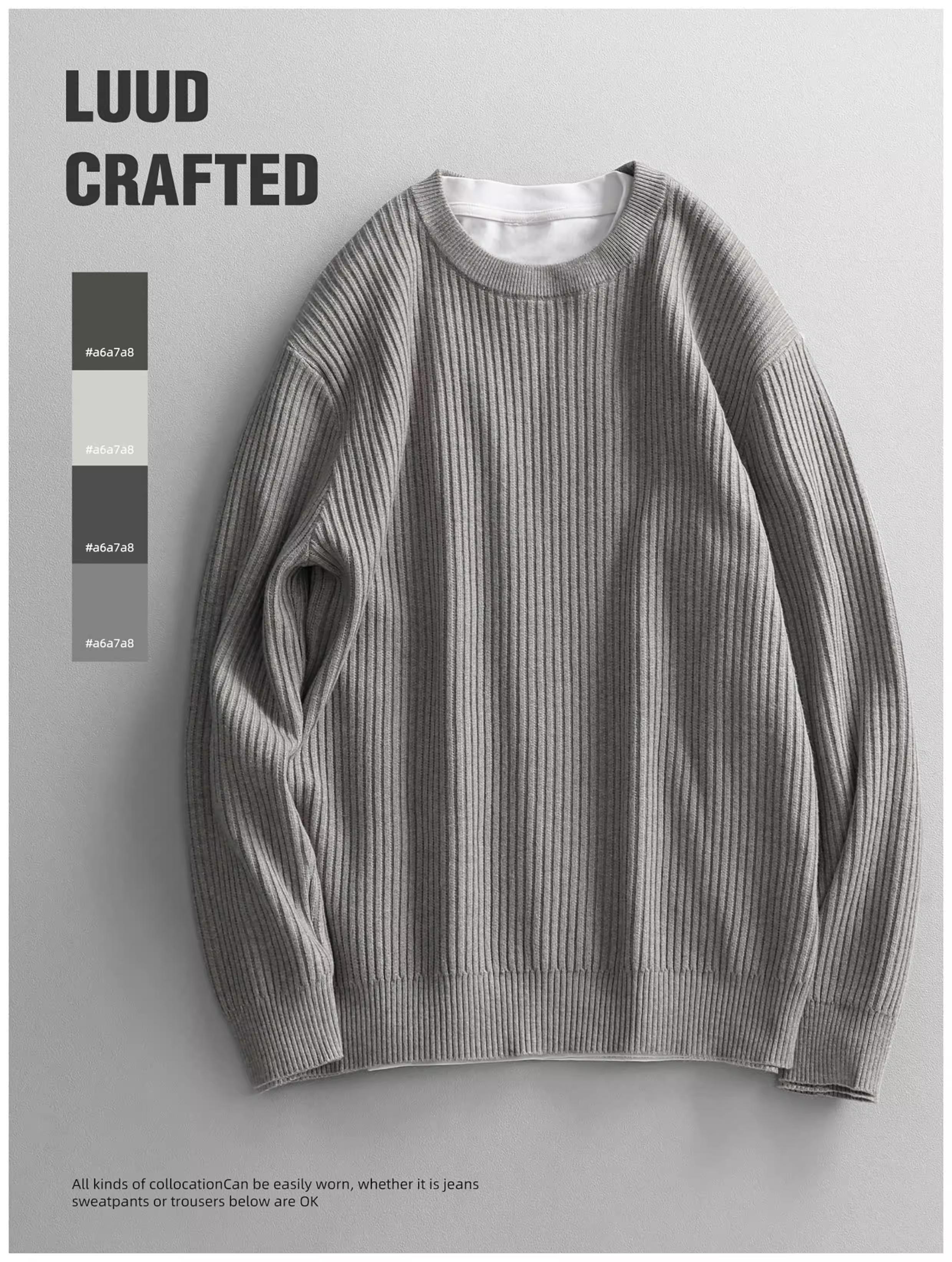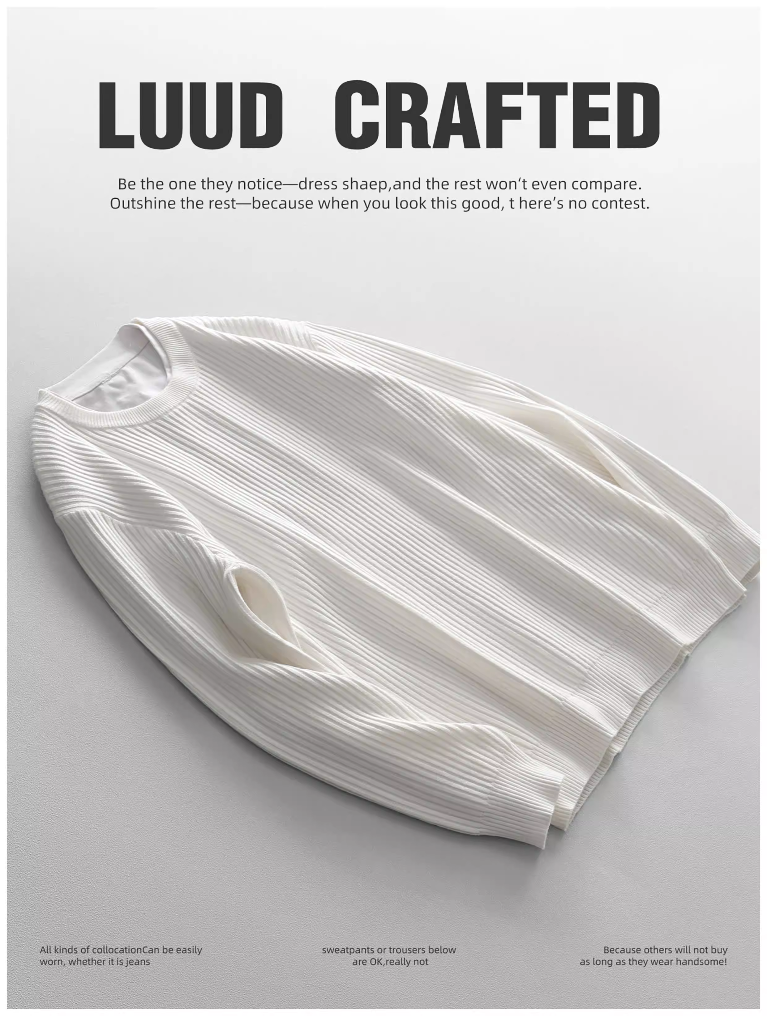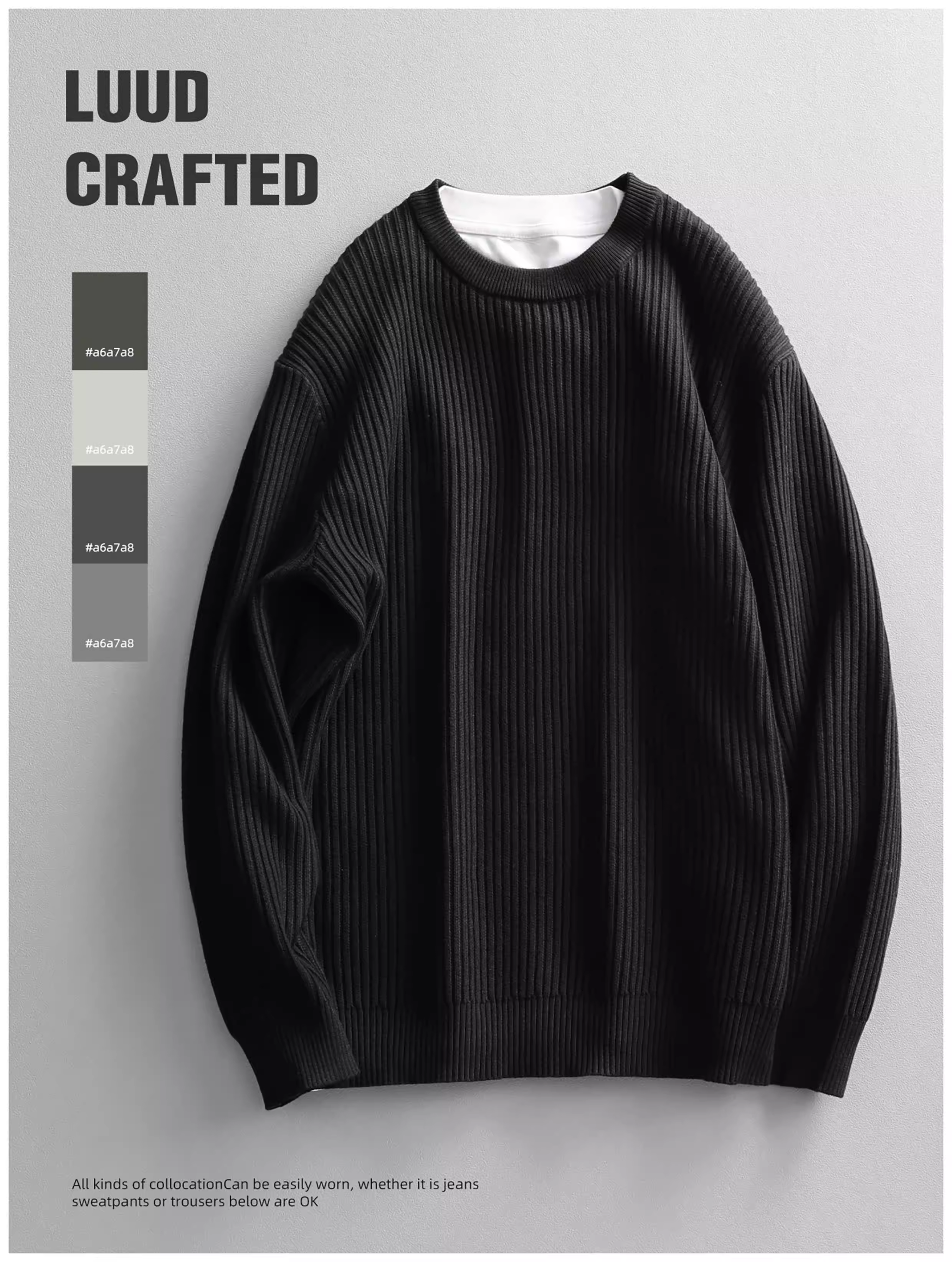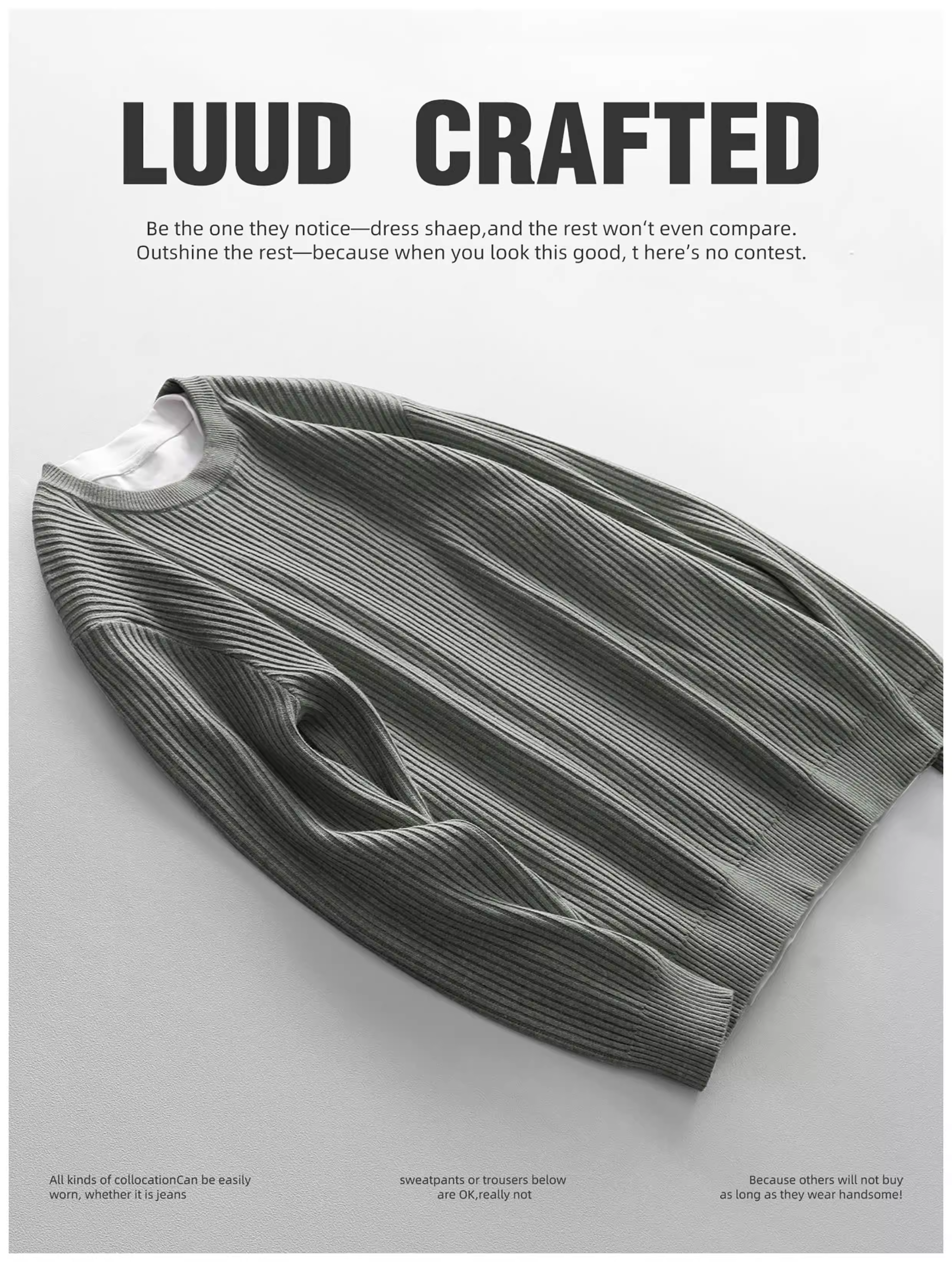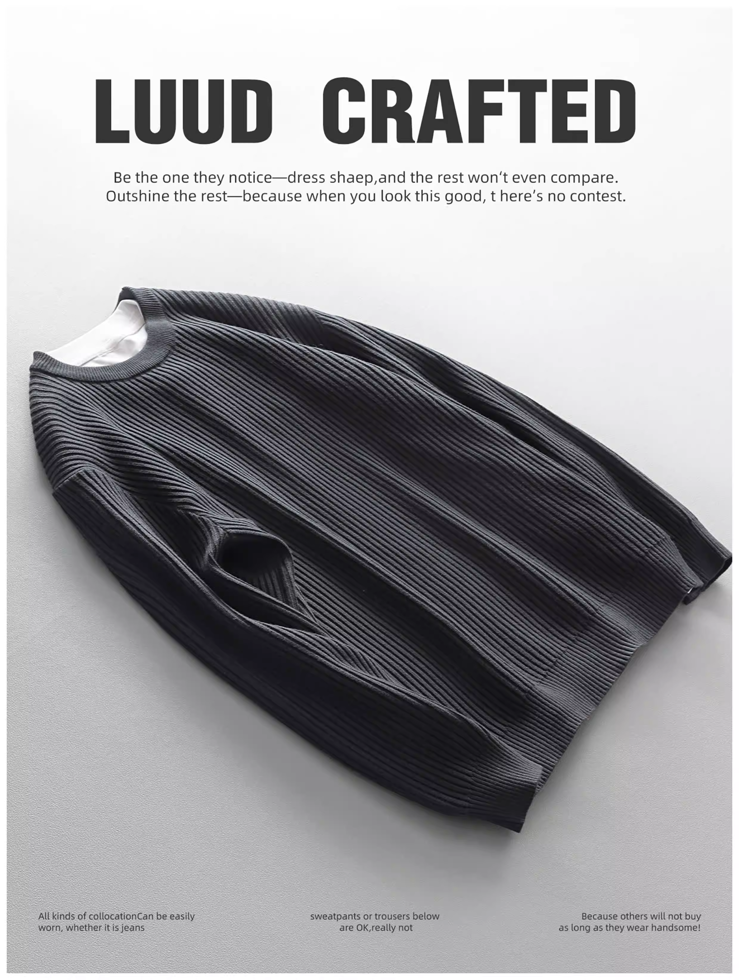 - Áo len cổ tròn thời trang đô thị dành cho nam LUUD Áo len dệt kim màu trơn hợp thời trang có sọc dọc áo sơ mi cơ bản