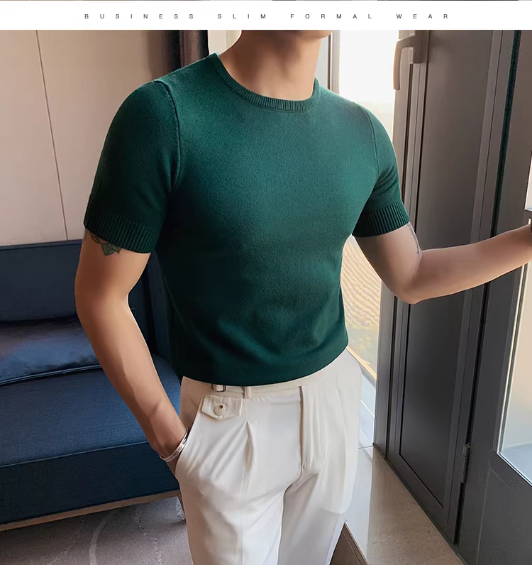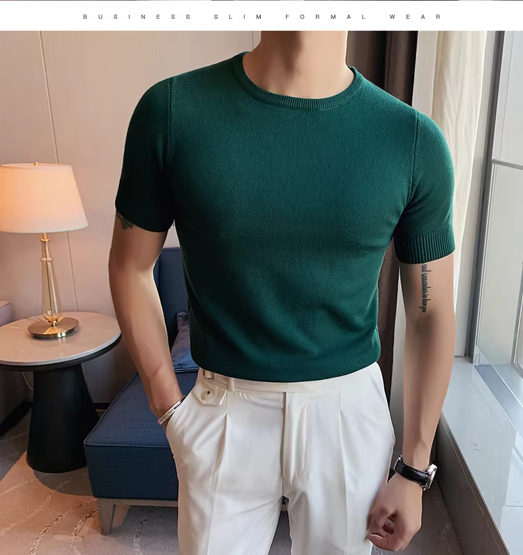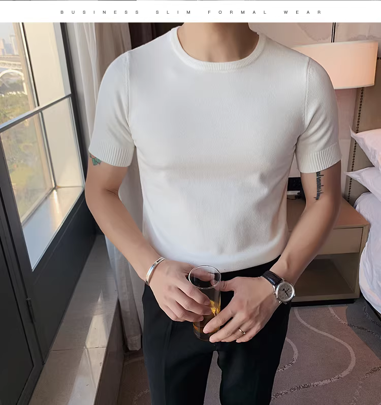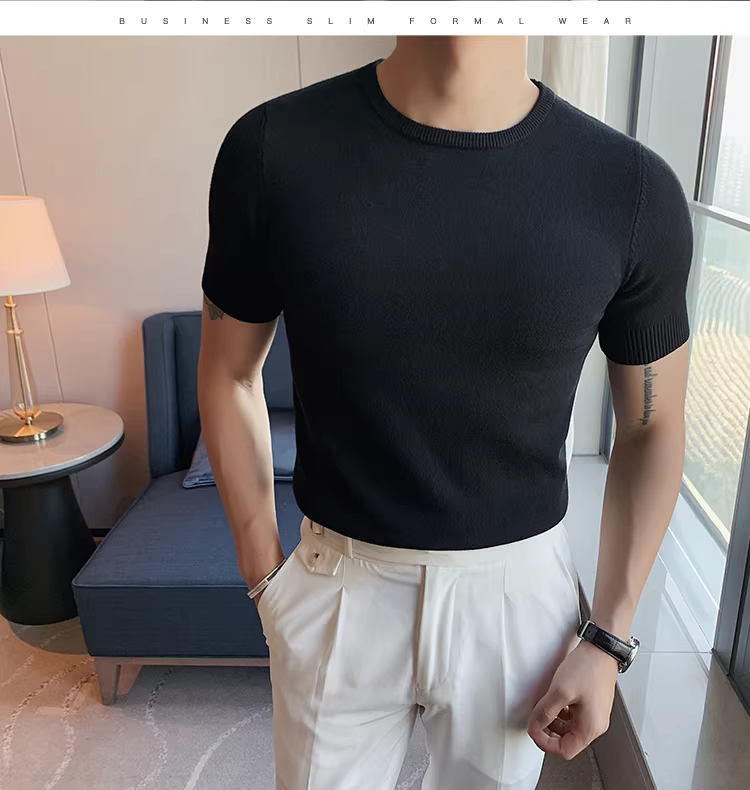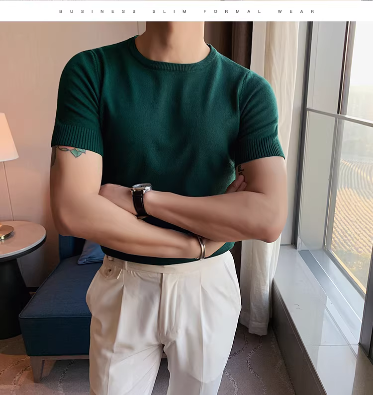 - Áo len cổ tròn thu đông cho nam, dáng ôm, phong cách Hàn Quốc, hợp thời trang, đa năng, áo thun lụa băng, tay lửng, áo thun dệt kim ngắn tay thông thường.