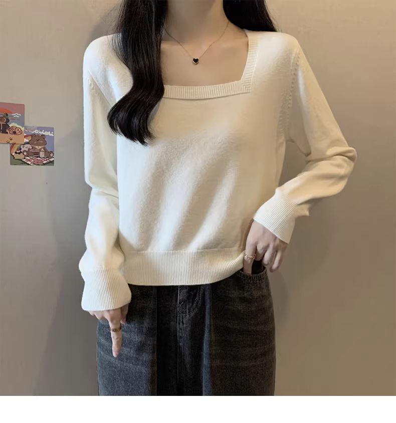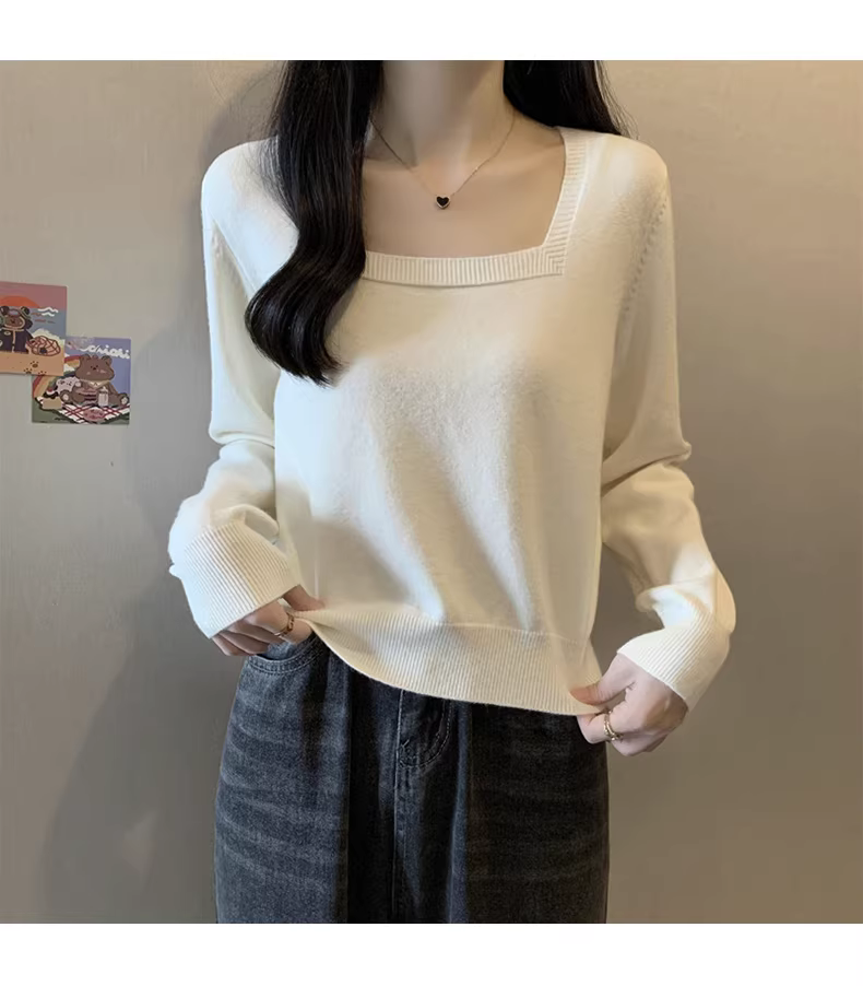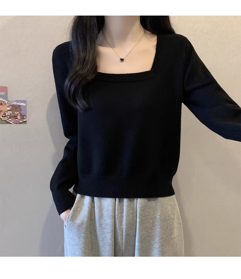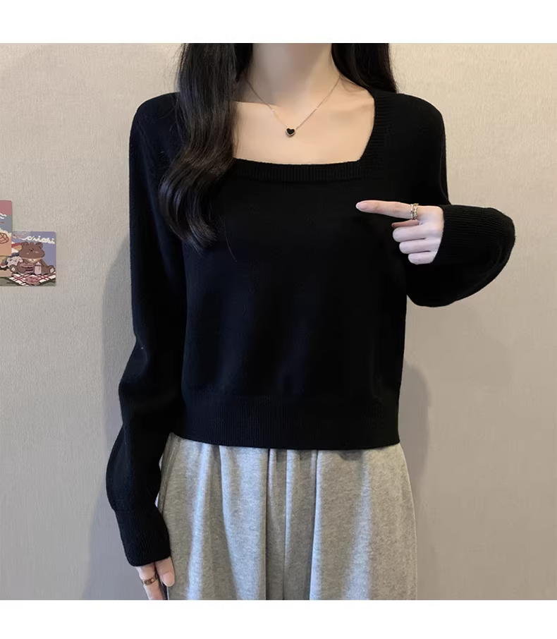 Áo len cổ vuông màu đen dài tay La Chapelle dành cho nữ, kiểu mới thu đông 2025, áo lót nhỏ nhắn.