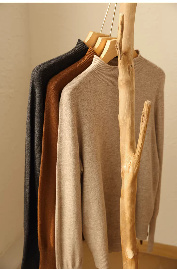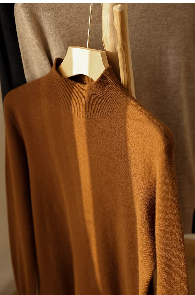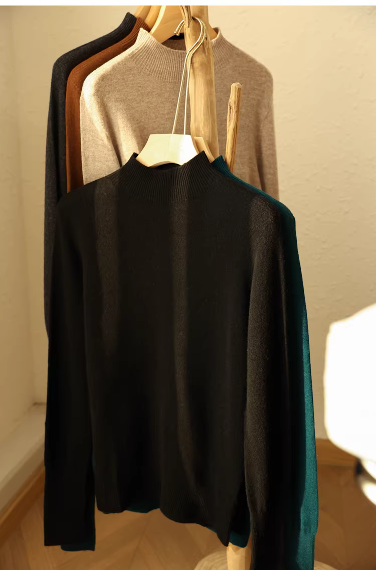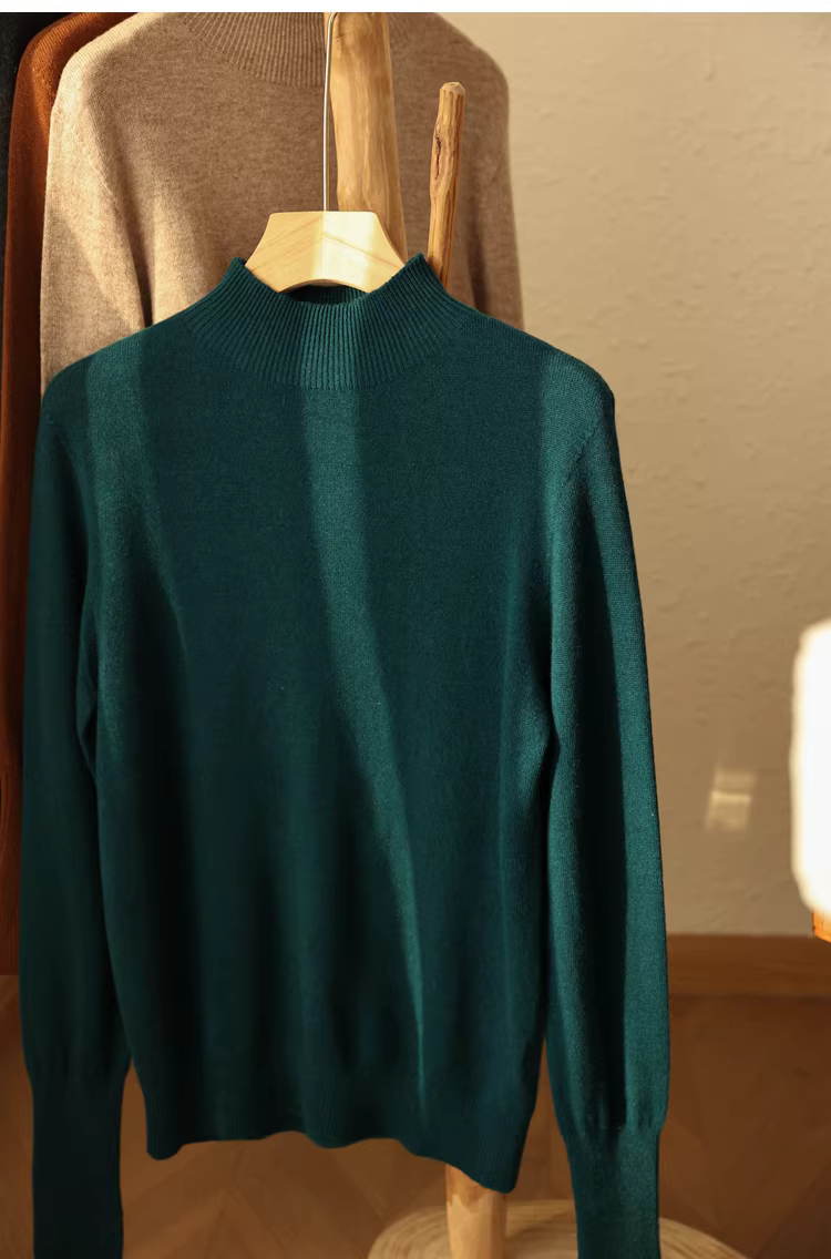 - Áo len đa năng cơ bản 100% len merino dày 200g liền mạch, kiểu nửa cổ lọ dành cho nữ mùa thu đông