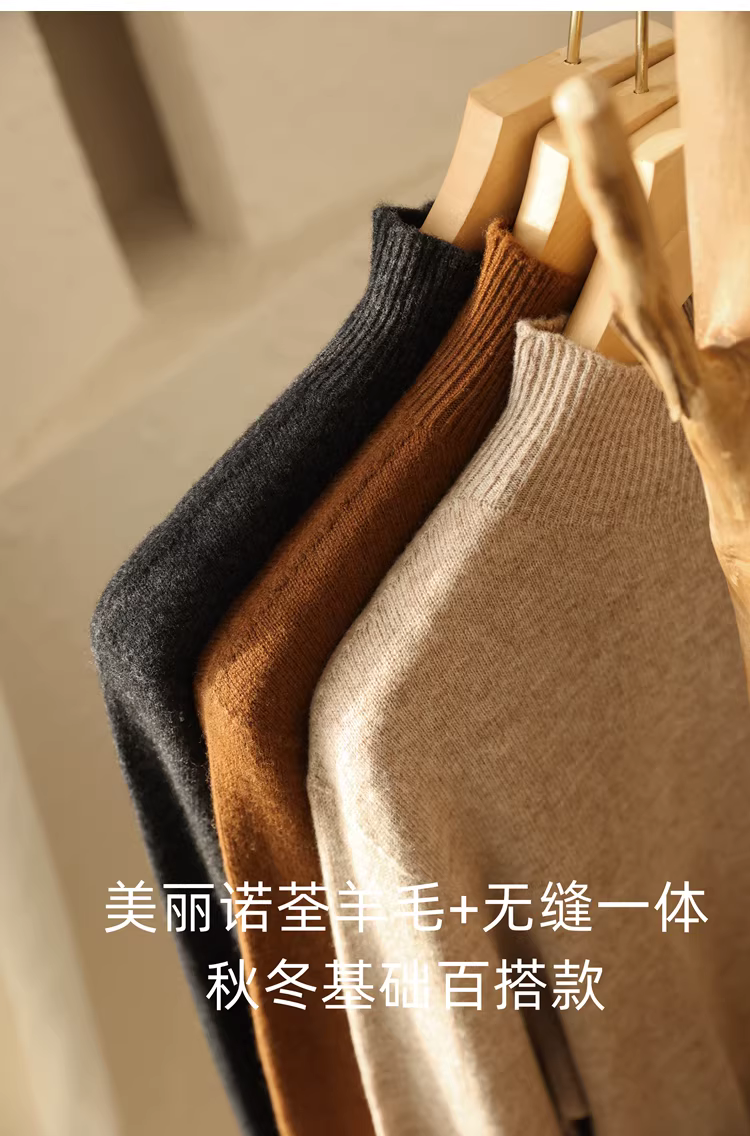Áo len đa năng cơ bản 100% len merino dày 200g liền mạch, kiểu nửa cổ lọ dành cho nữ mùa thu đông
