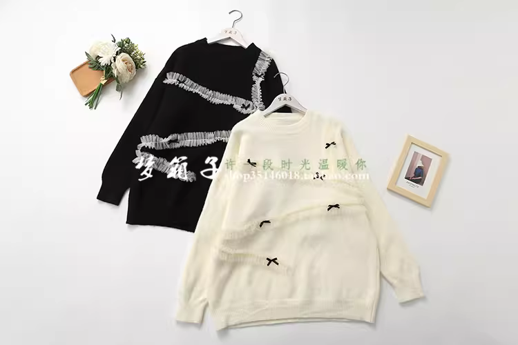 宽松套头,甜美蝴蝶结木耳边美美哒