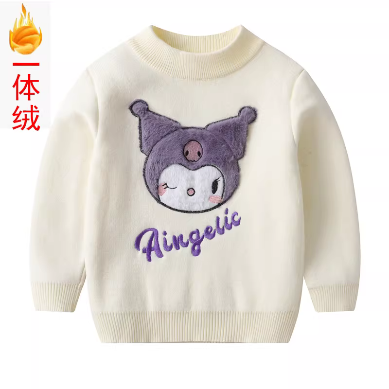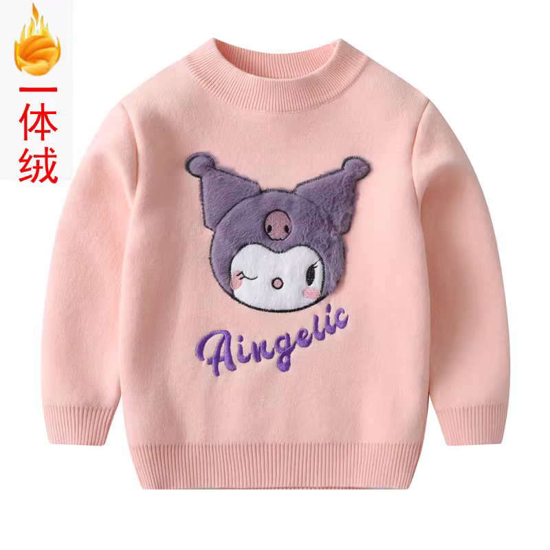 - Áo len dày lót lông cừu cho bé gái, kiểu dáng xuân đông mới, cổ tròn hoạt hình, áo thun cotton dệt kim thời trang cho trẻ em.