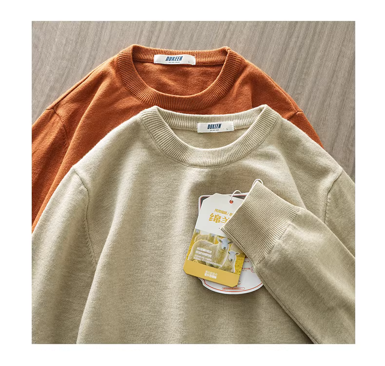 Áo len De Rong dành cho nam, phong cách trẻ trung mùa đông, lót lông cừu, dày dặn, ấm áp, cổ tròn, áo len dệt kim lớp lót.
