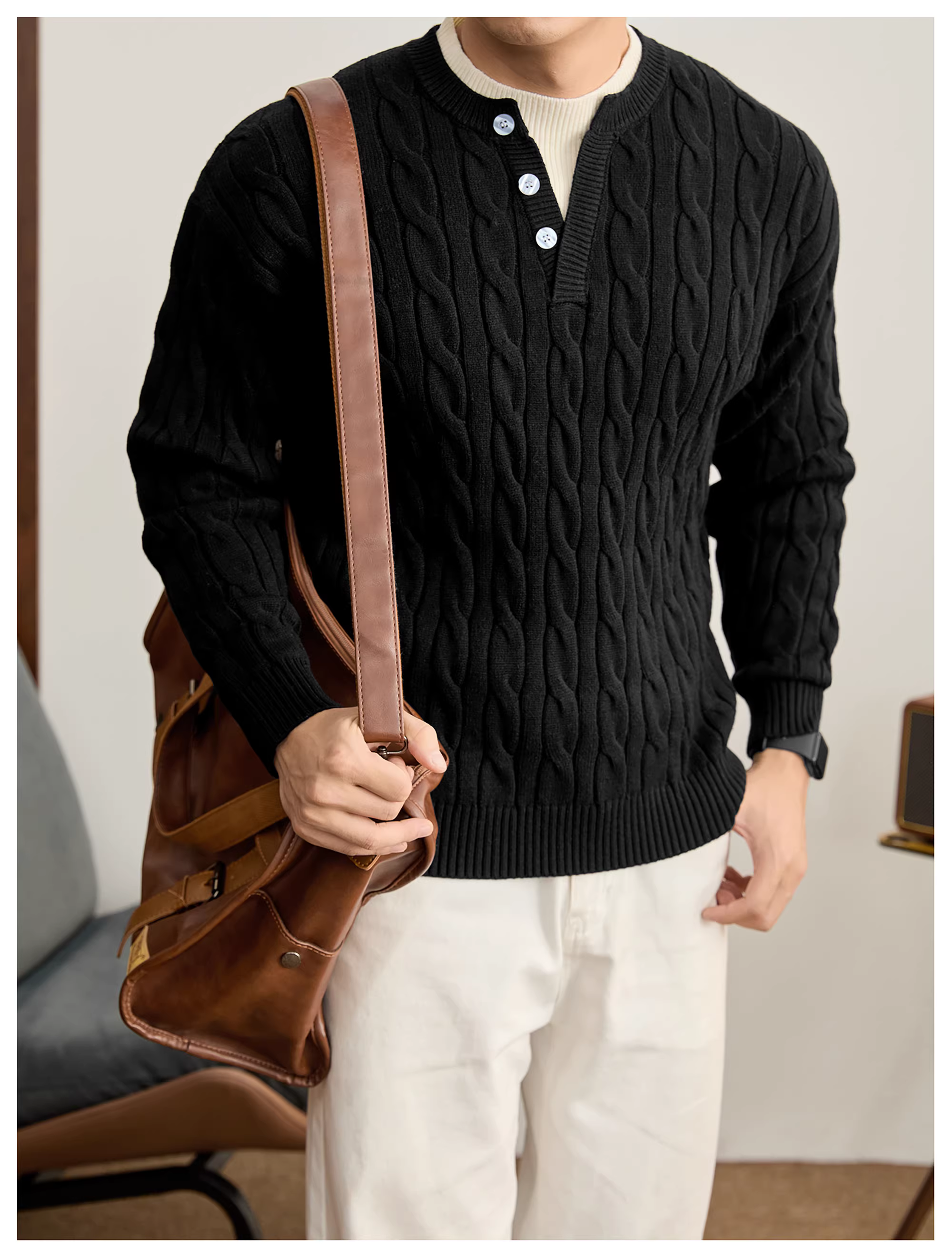 - Áo len dệt kim ba chiều giả hai mảnh LUUD dành cho nam, áo len sợi lõi xoắn chống xù mùa đông