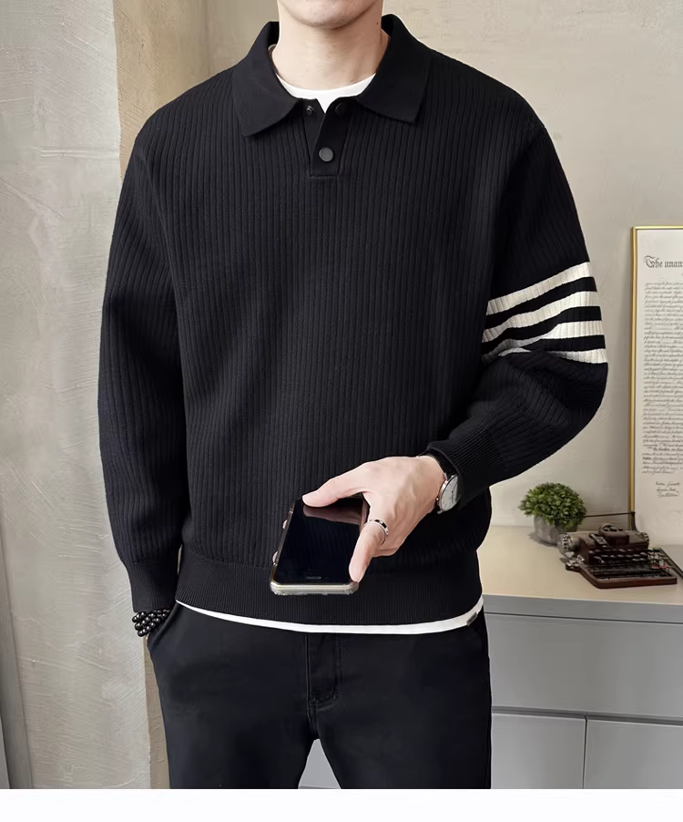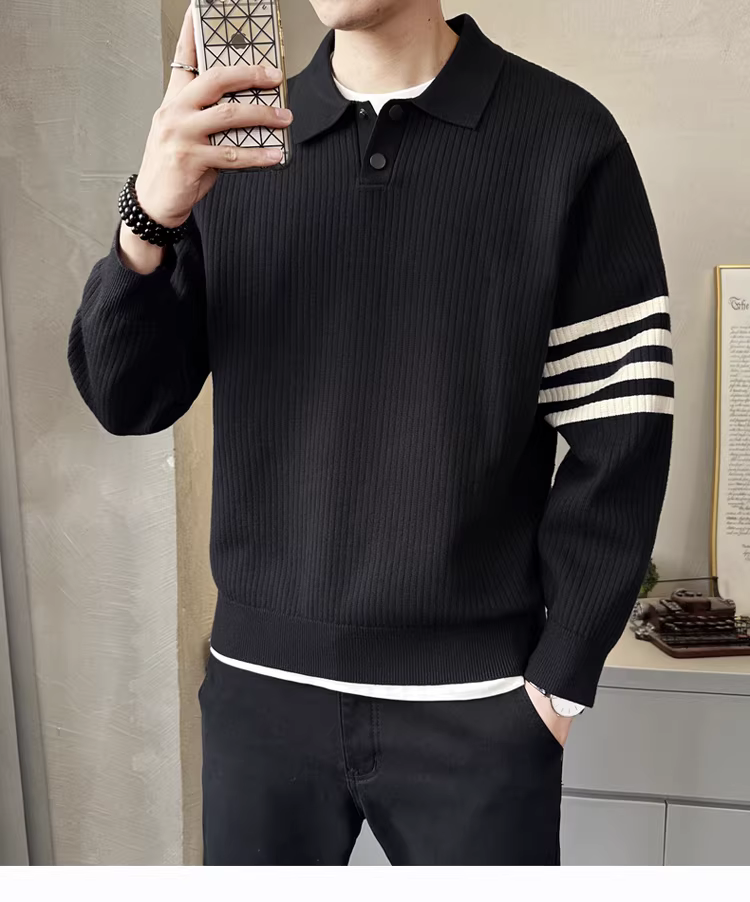 Áo len dệt kim có cổ Lyocell dành cho nam, mùa thu đông, kiểu dáng rộng rãi, phong cách cổ điển sang trọng, mặc lót bên trong.