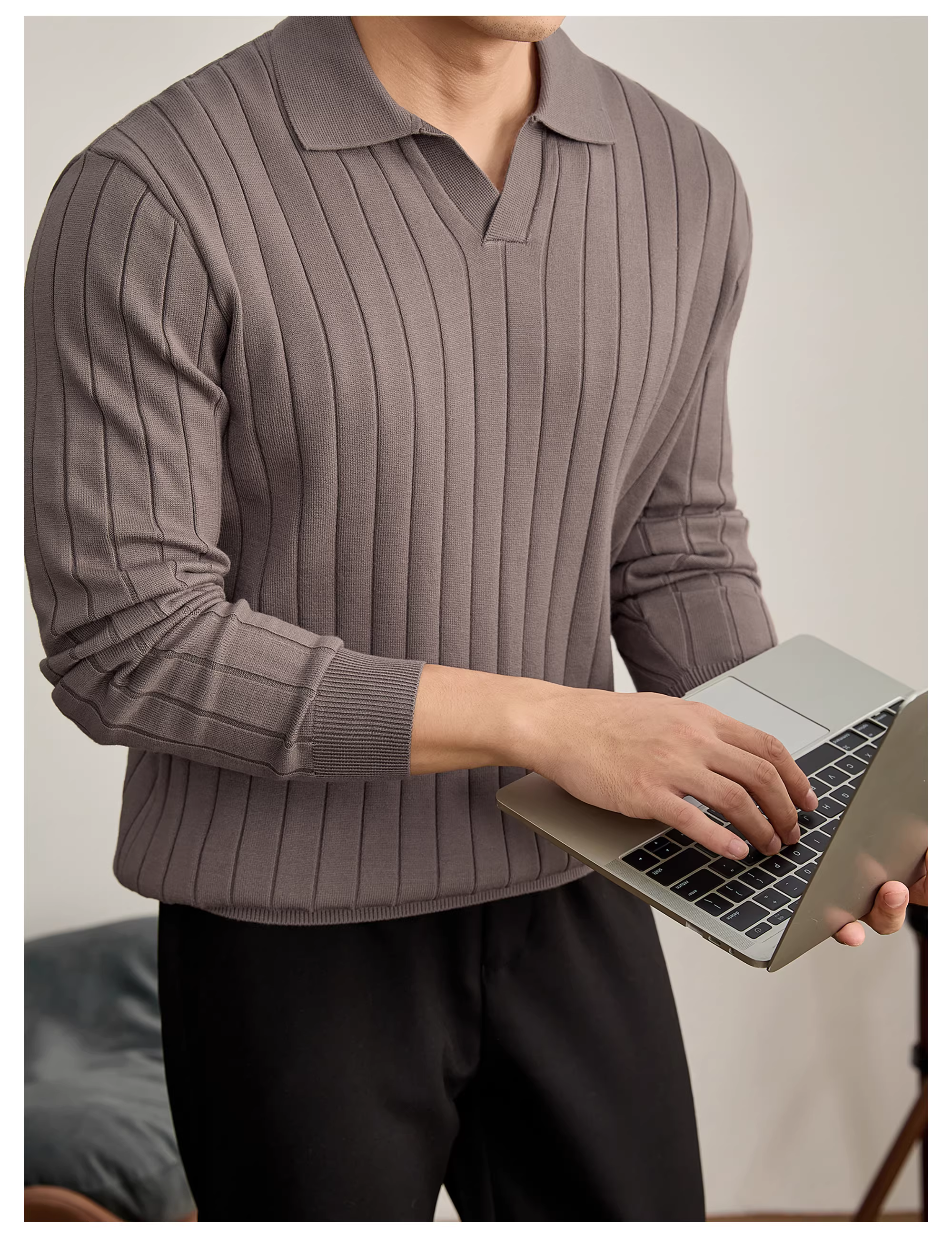 - Áo len dệt kim cổ hải âu màu đen cao cấp LUUD có sọc dọc dạng gân và chất liệu sang trọng Áo sơ mi POLO