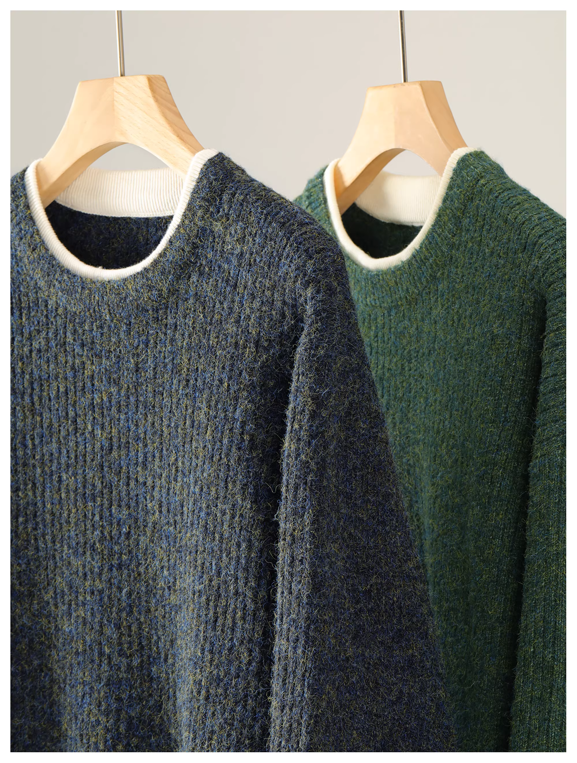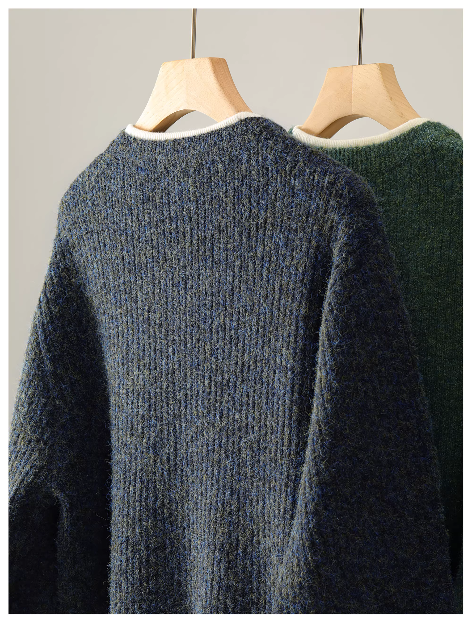 Áo len dệt kim có họa tiết LUUD với thiết kế giả hai mảnh, sợi mohair thun lụa nhiều màu sắc, áo len cổ tròn dành cho nam.