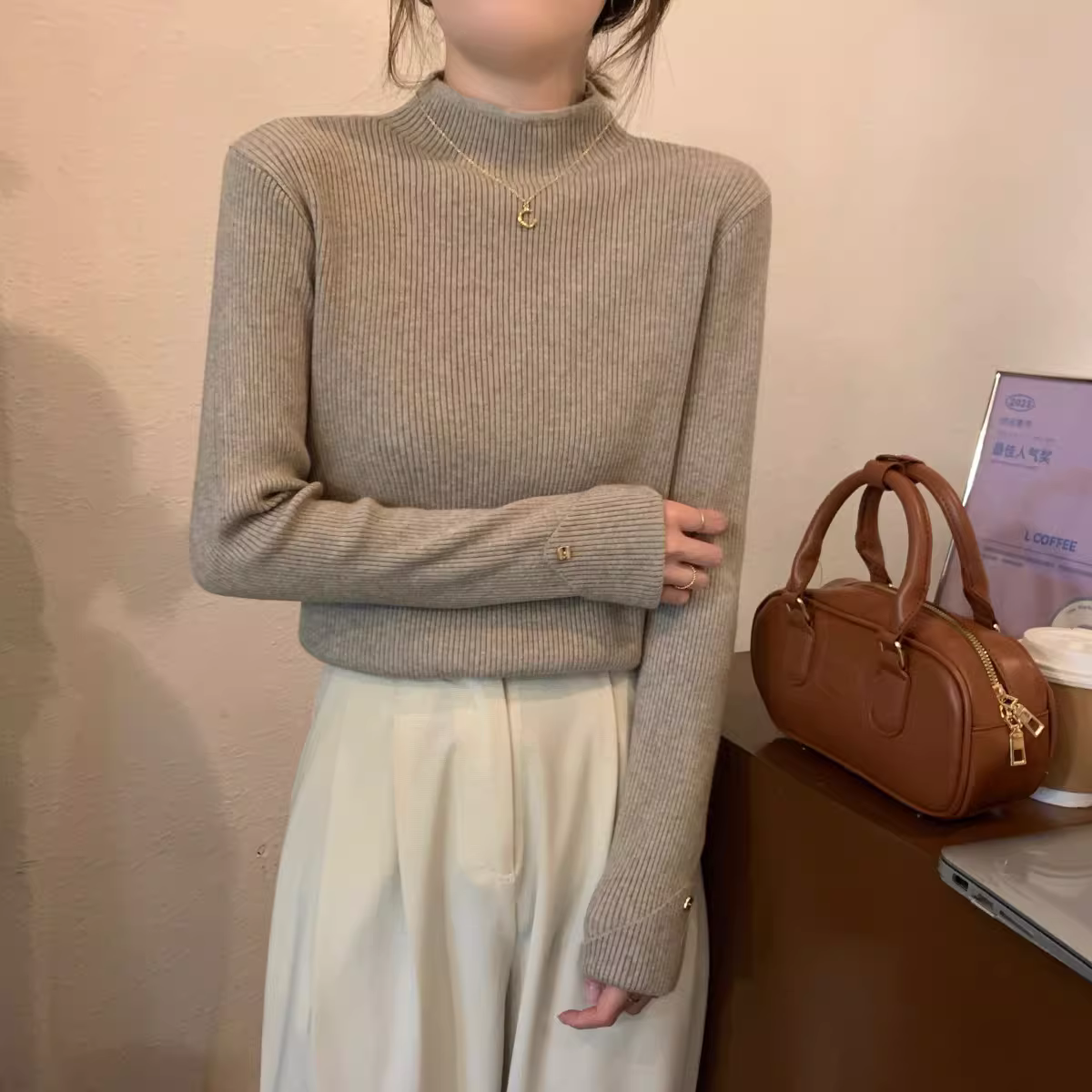 - Áo len dệt kim cổ lọ nửa cao La Chapelle dành cho nữ, kiểu dáng thu đông mới 2025, áo lót mỏng, áo len mặc trong.