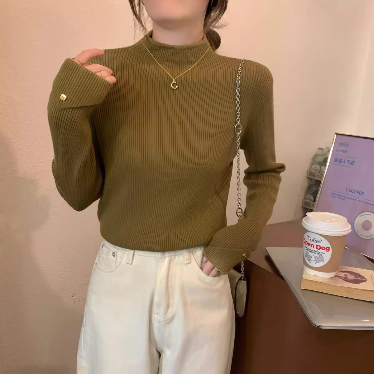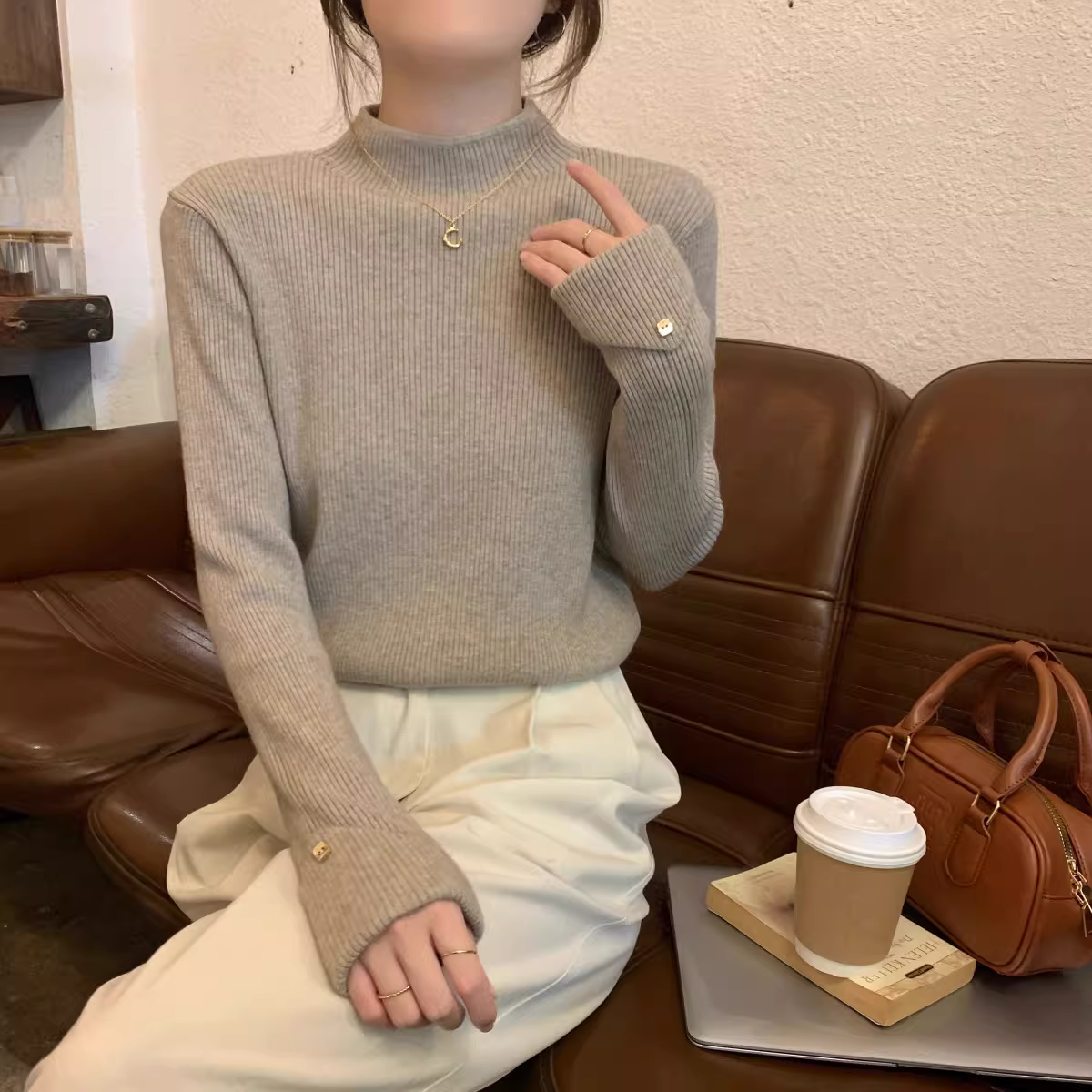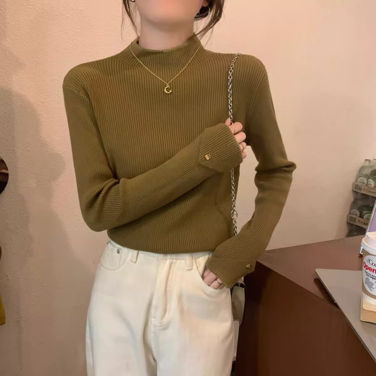 Áo len dệt kim cổ lọ nửa cao La Chapelle dành cho nữ, kiểu dáng thu đông mới 2025, áo lót mỏng, áo len mặc trong.