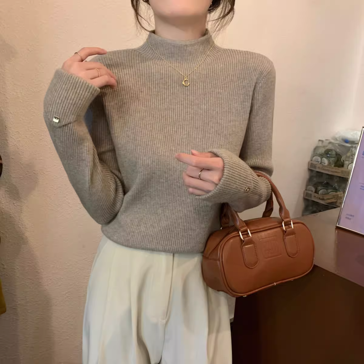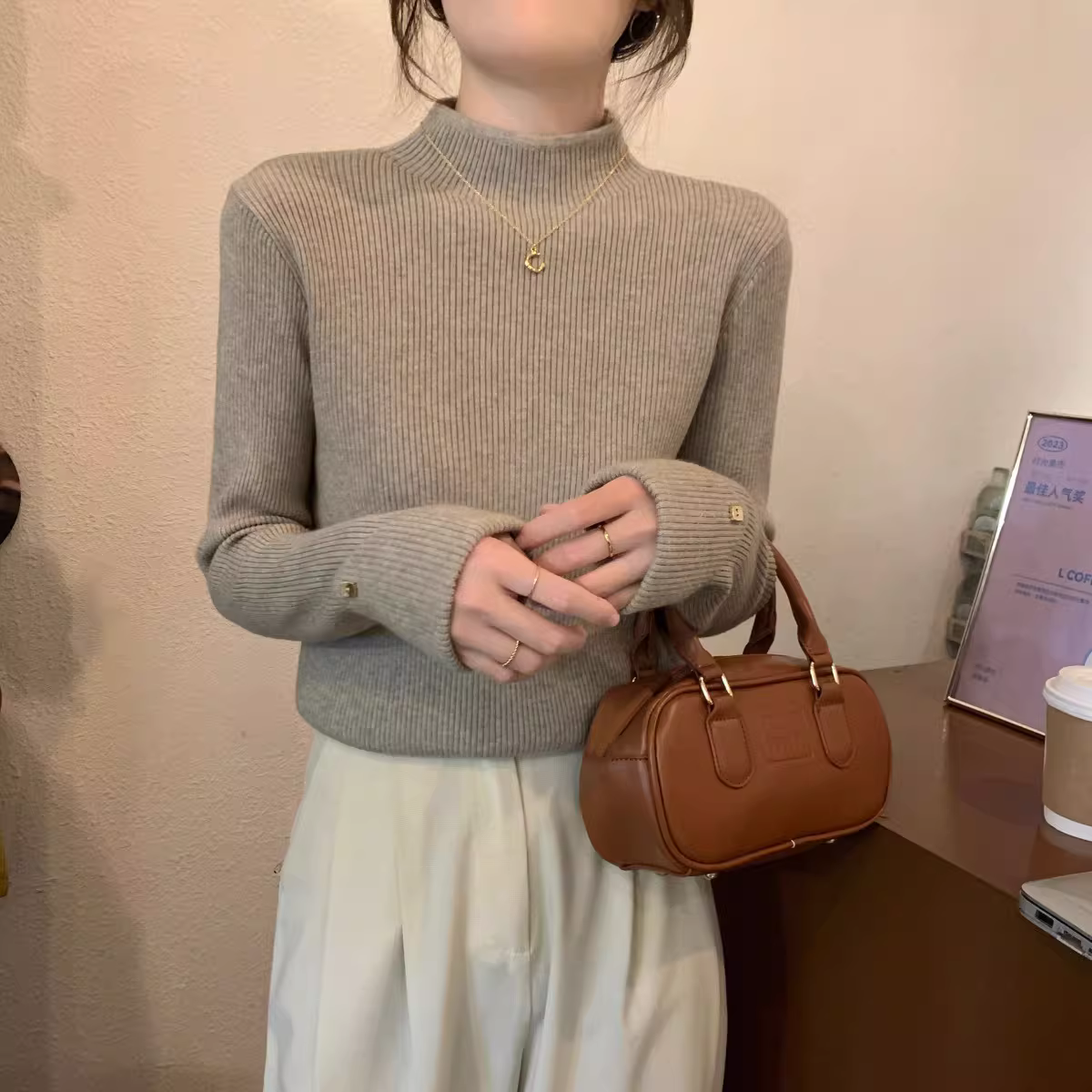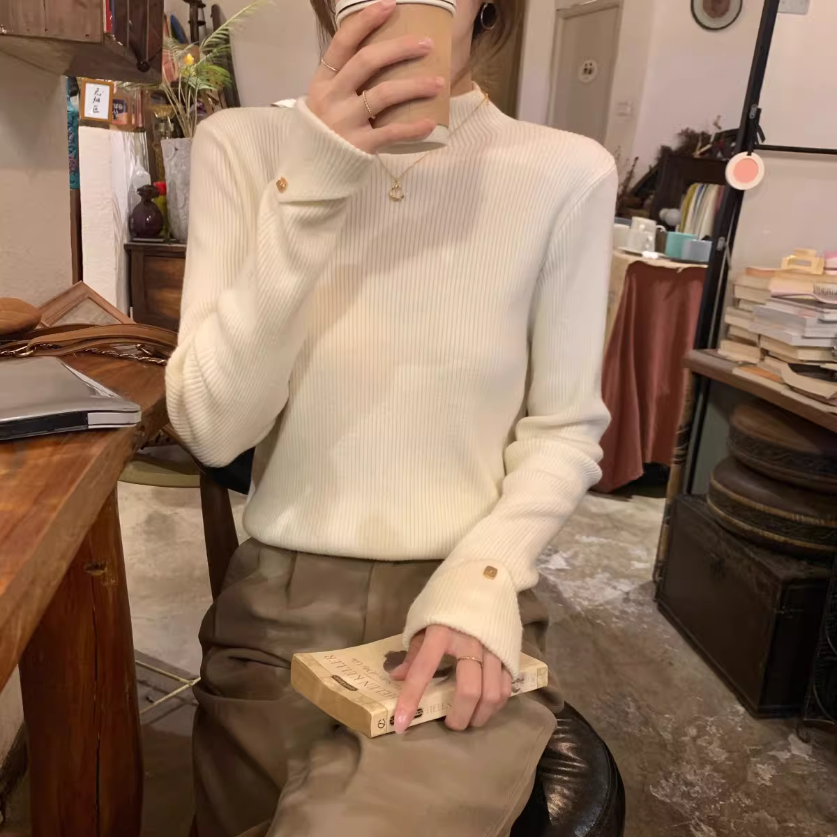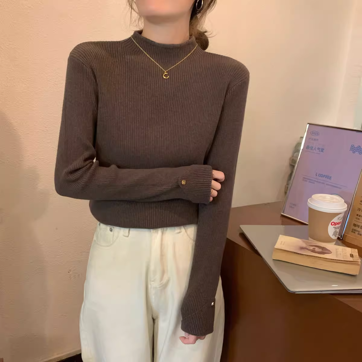 Áo len dệt kim cổ lọ nửa cao La Chapelle dành cho nữ, kiểu dáng thu đông mới 2025, áo lót mỏng, áo len mặc trong.