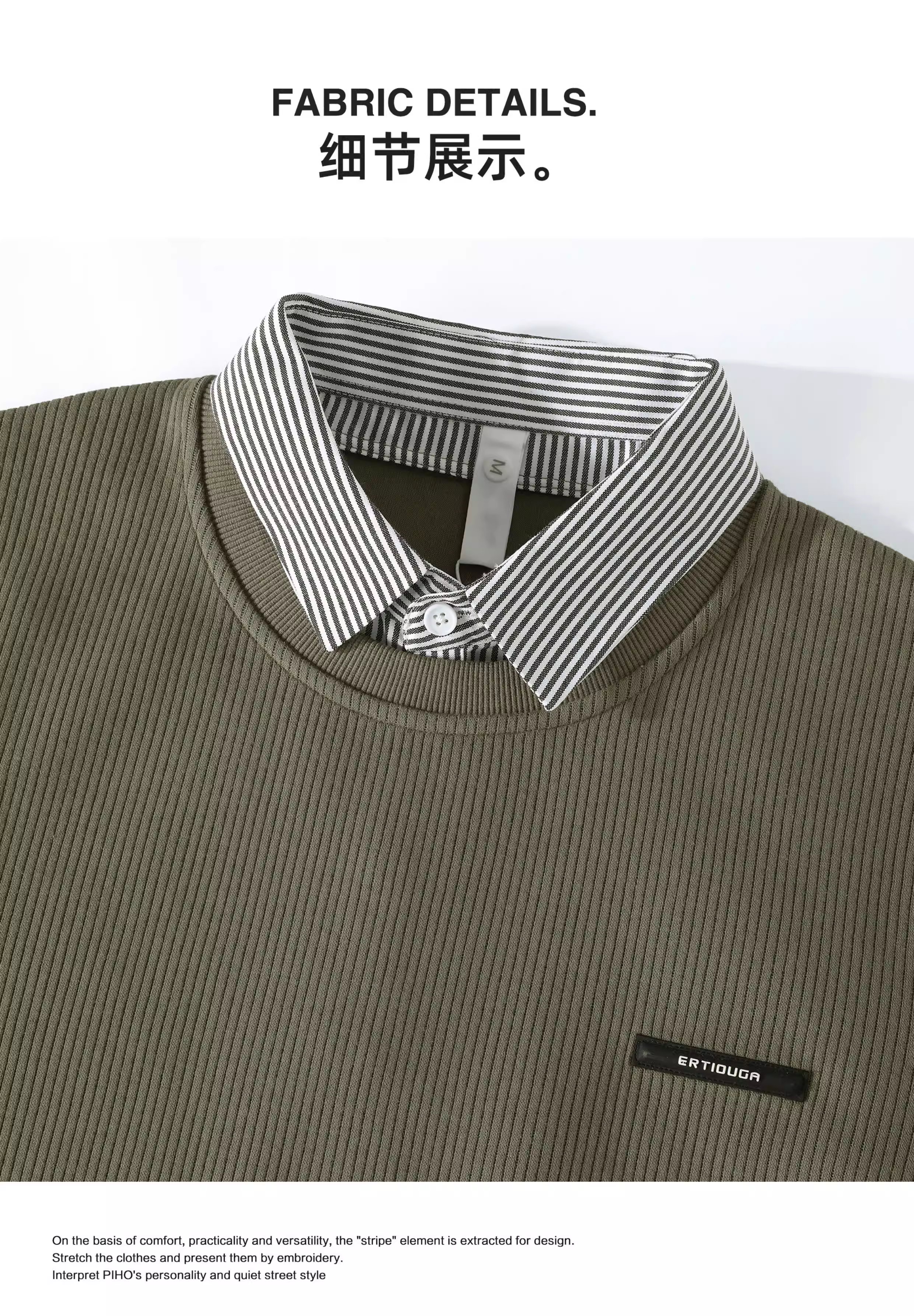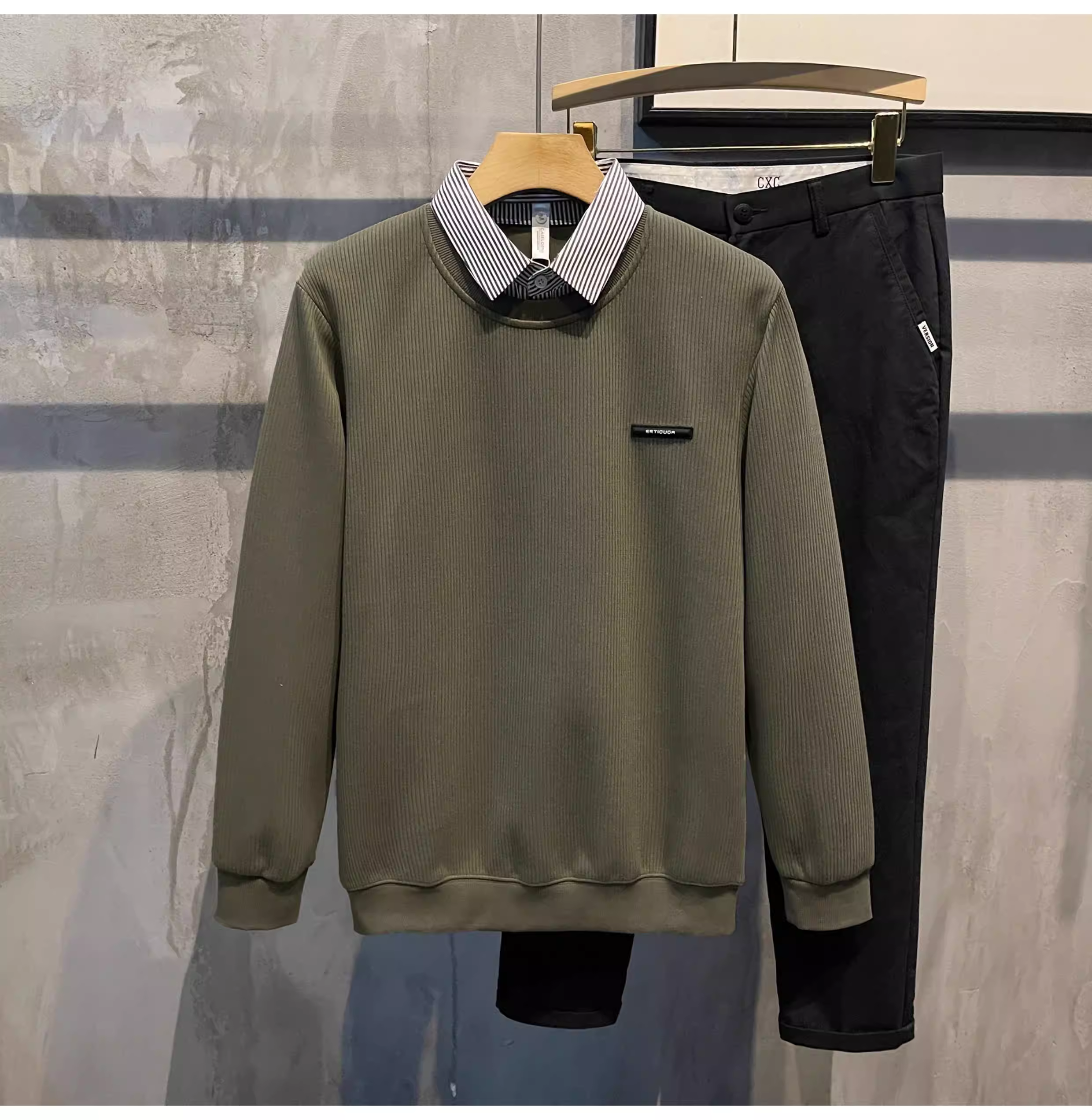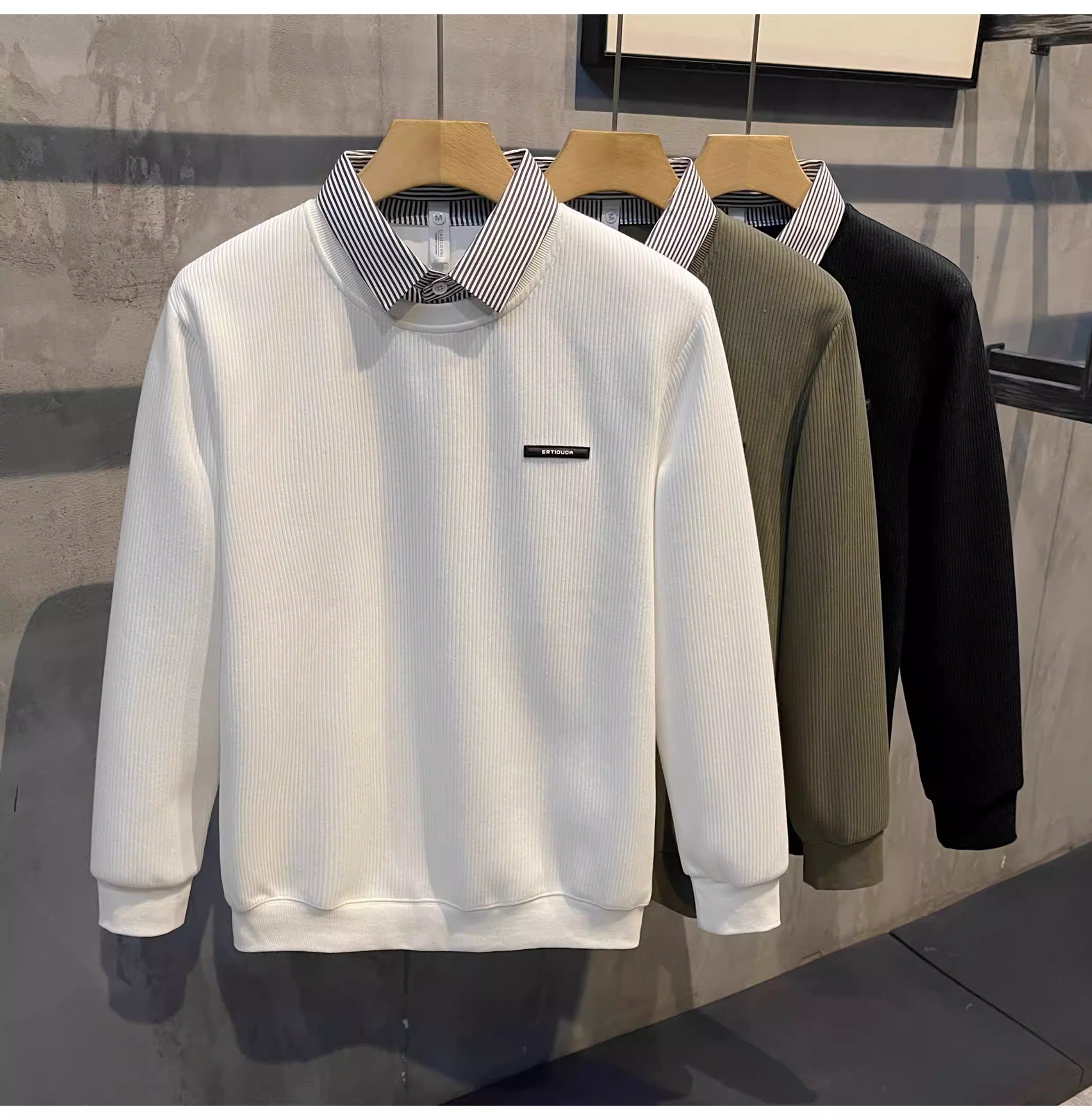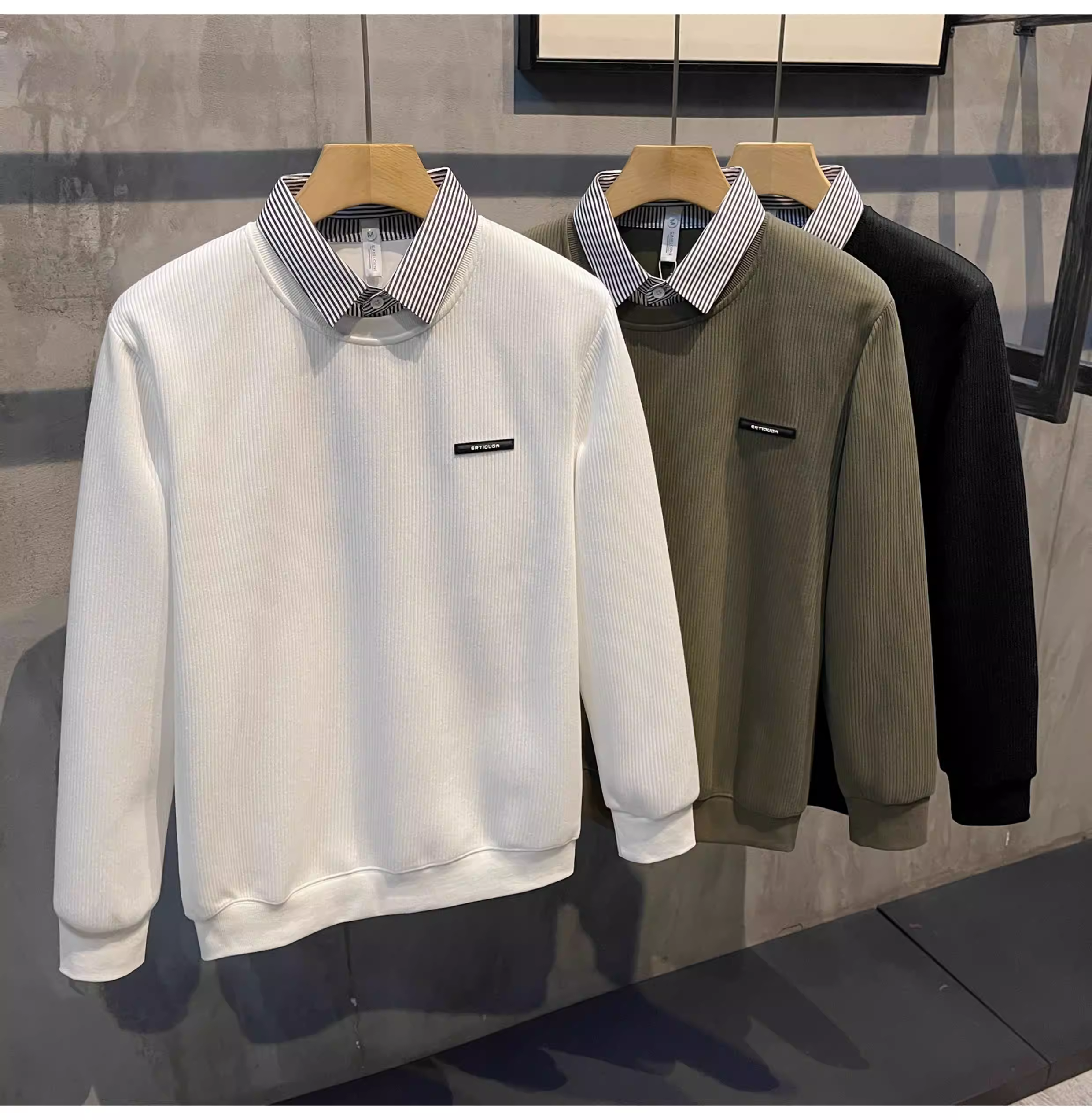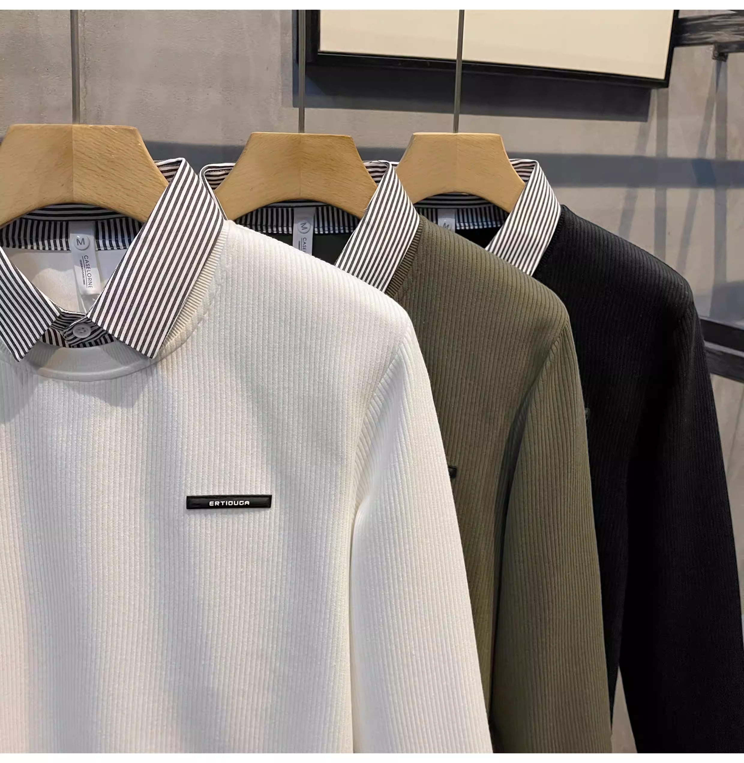 - Áo len dệt kim có nhãn nhỏ sọc jacquard LUUD dành cho nam, áo len chui đầu giả hai mảnh có cổ lật.