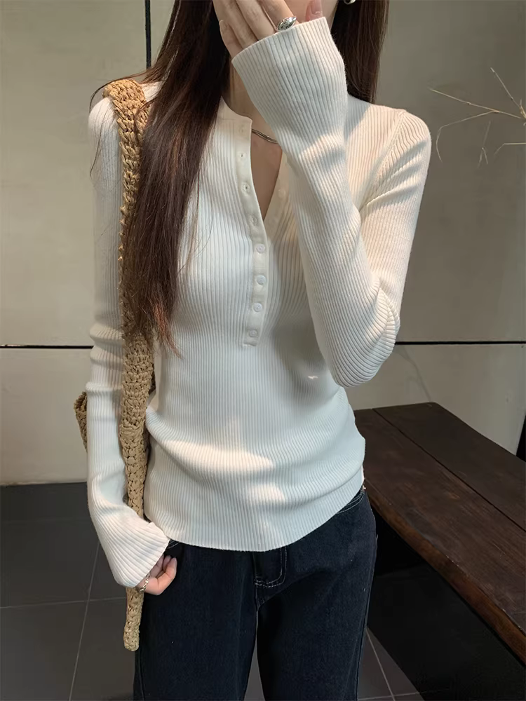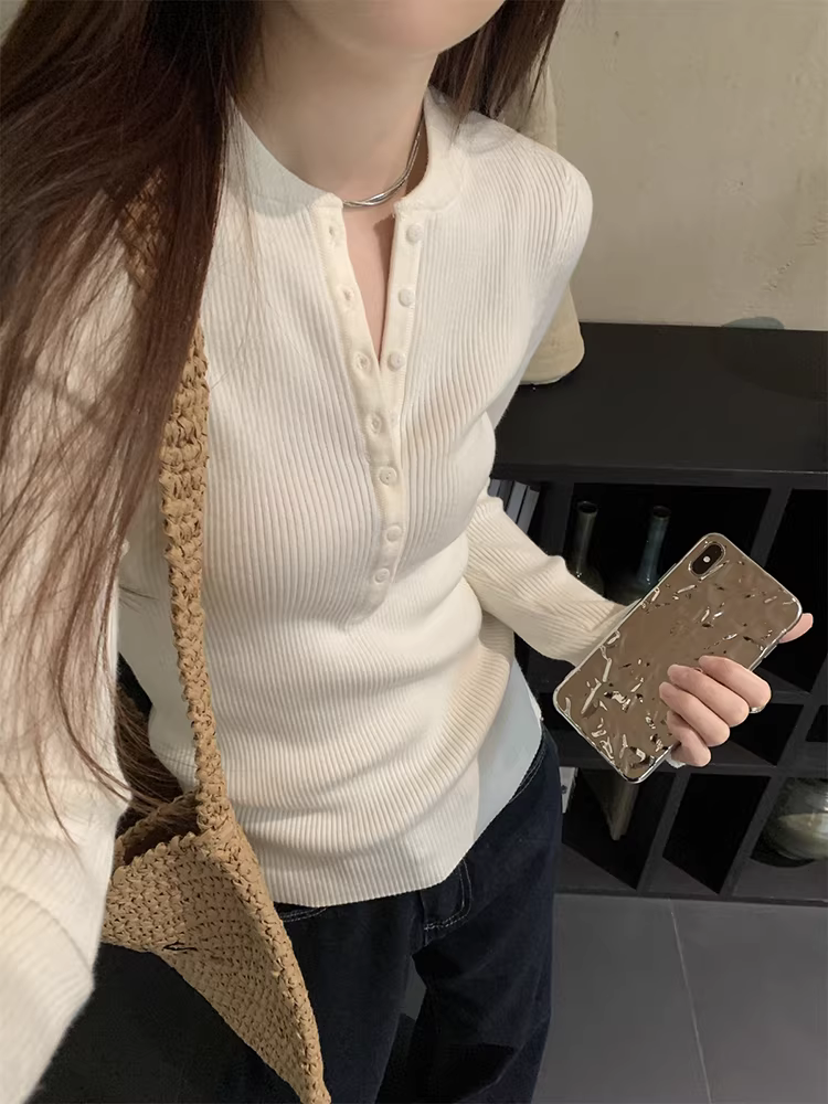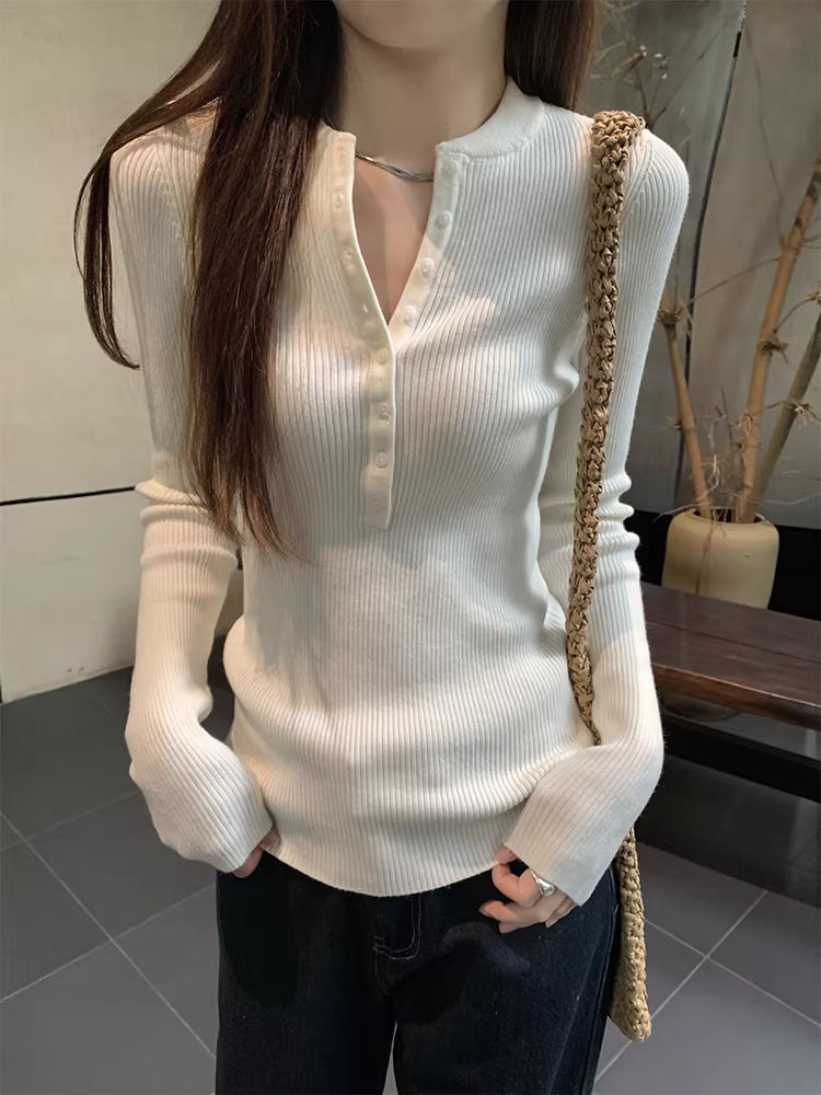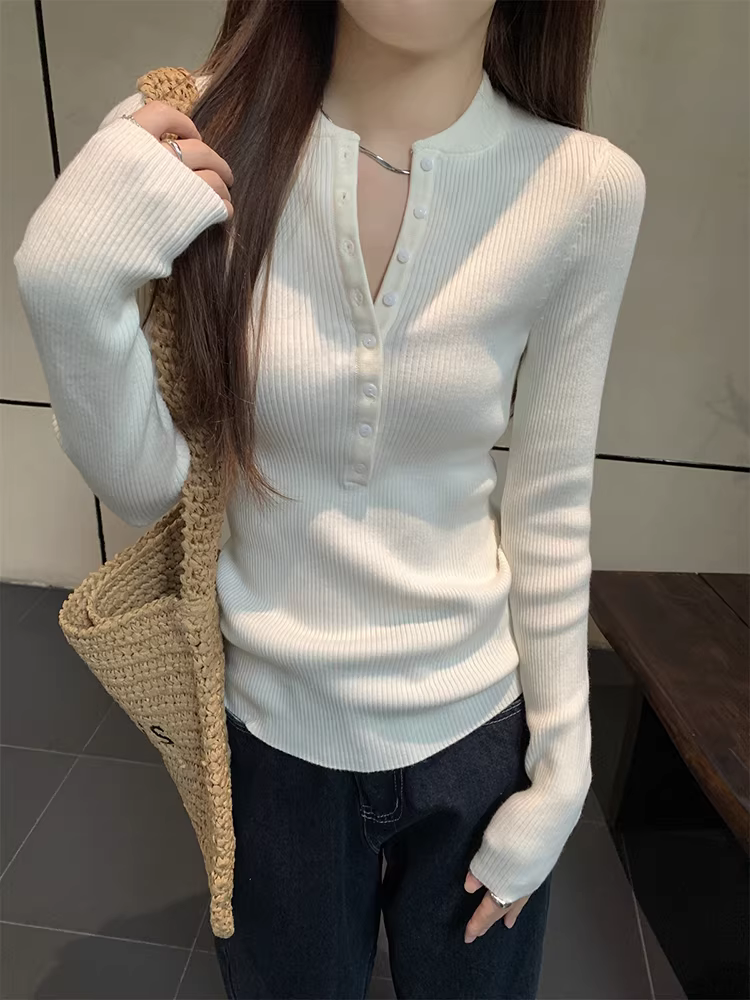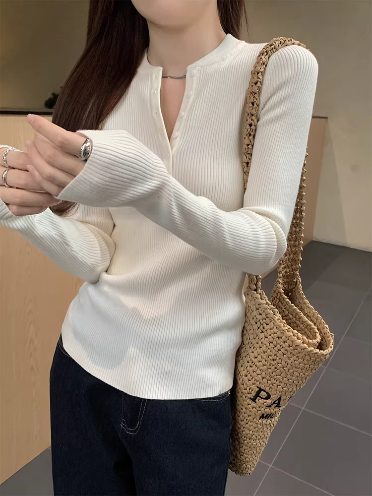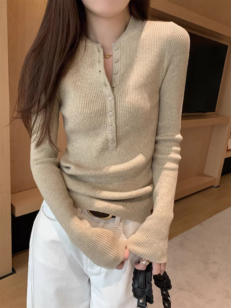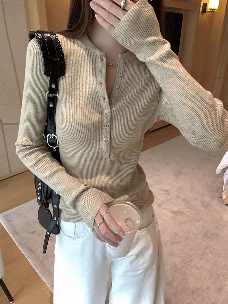 - Áo len dệt kim cổ nửa mở La Chapelle dành cho nữ, mẫu mới thu đông 2025, ôm dáng, mặc lót bên trong