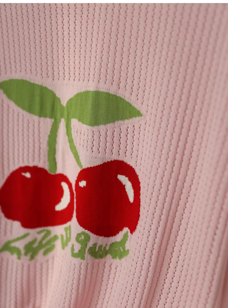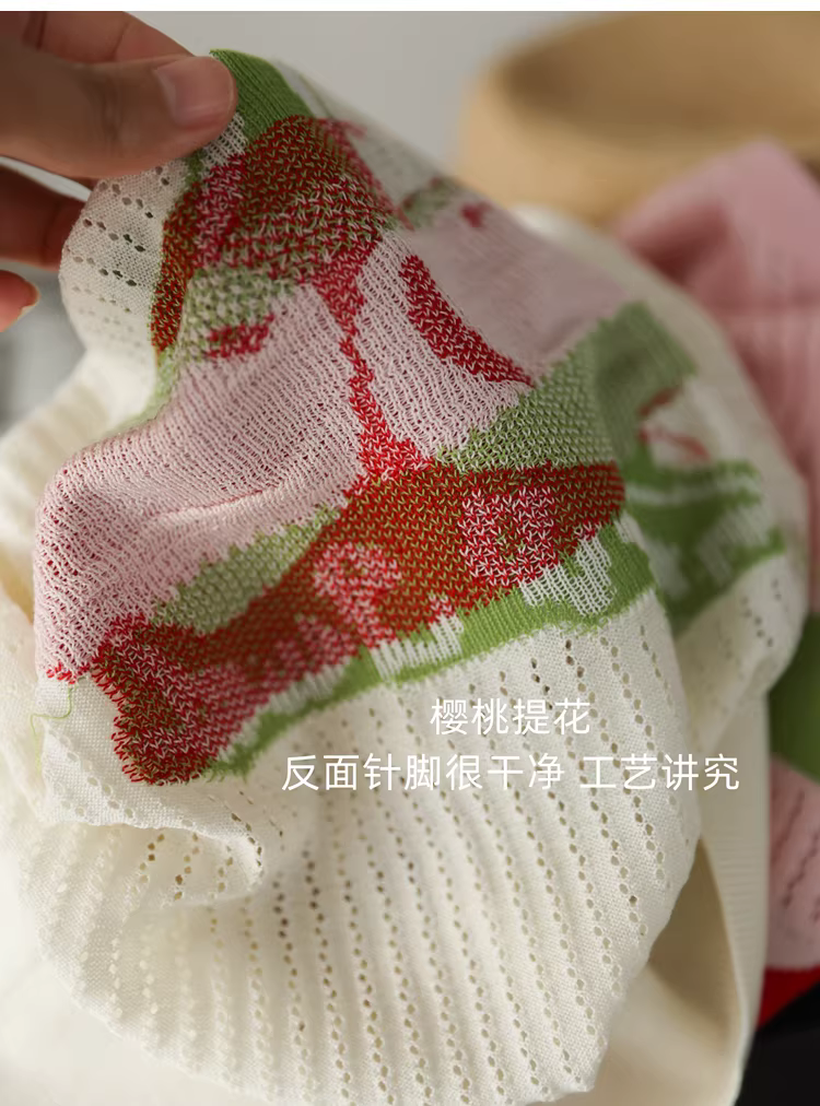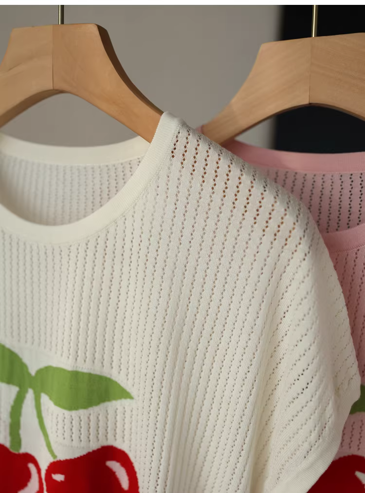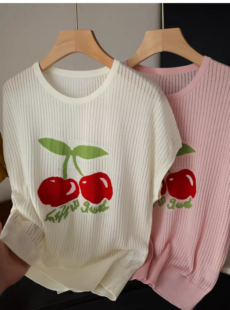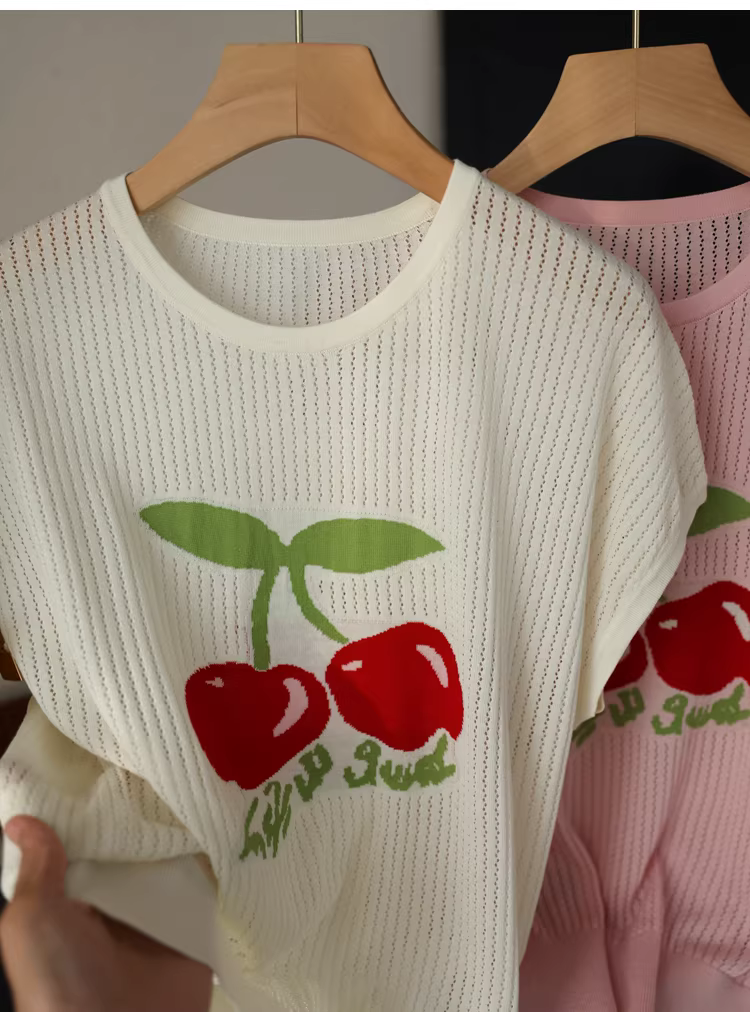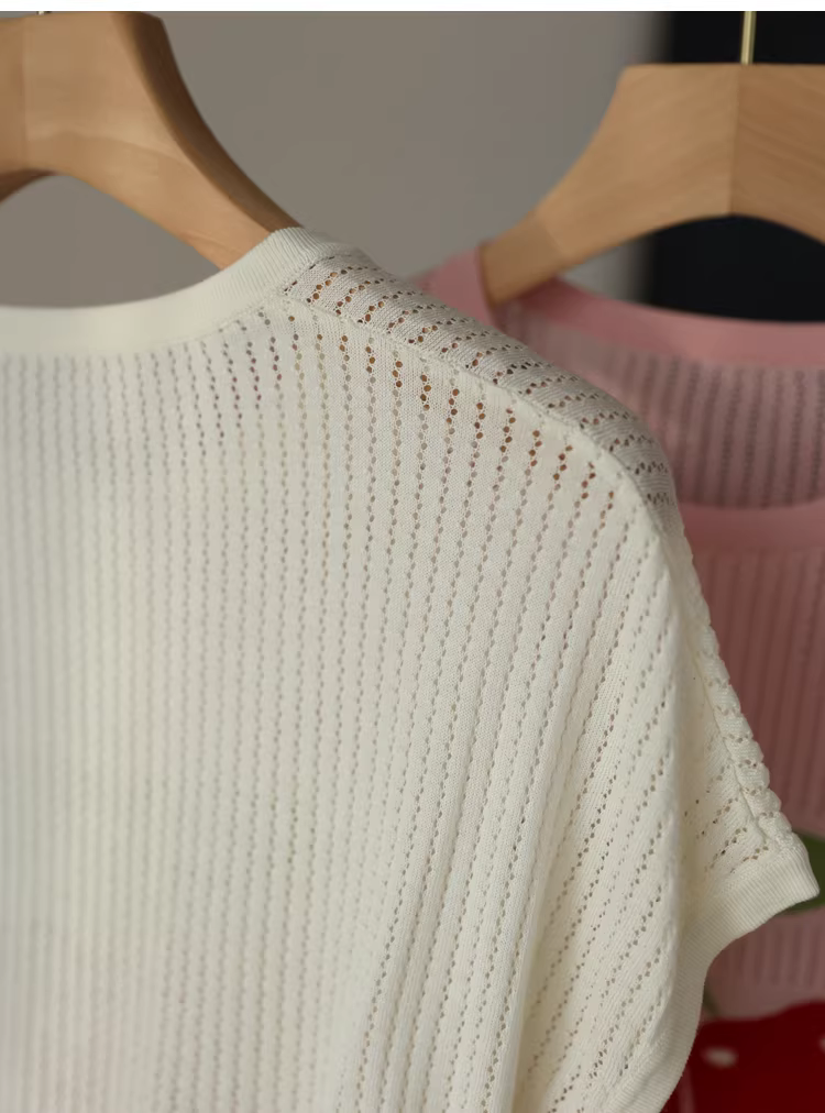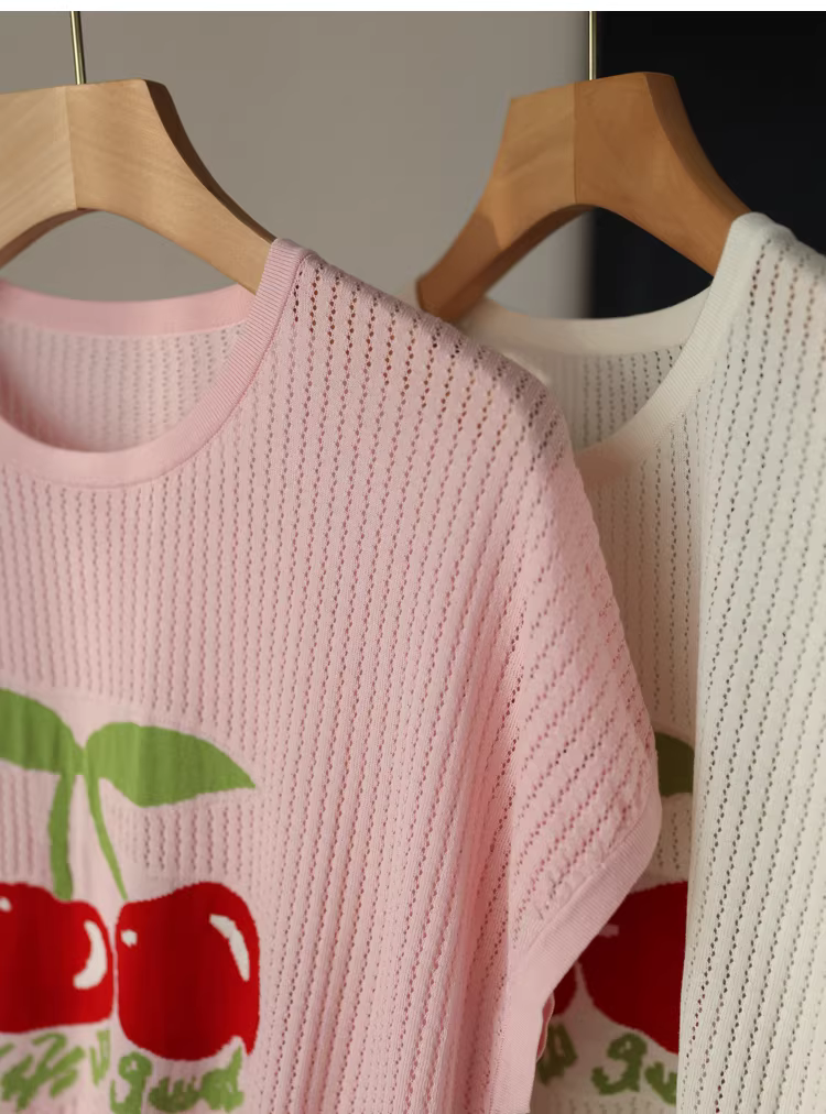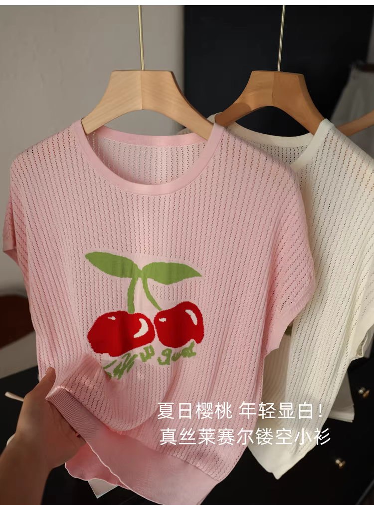Áo len dệt kim cổ tròn bằng lụa Lyocell rỗng màu anh đào mùa hè trẻ trung và sáng màu dành cho nữ