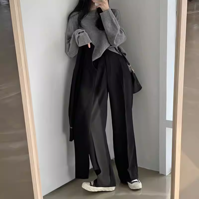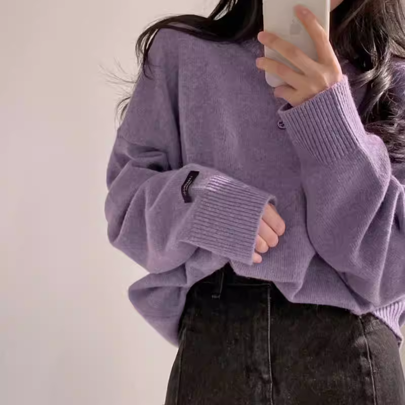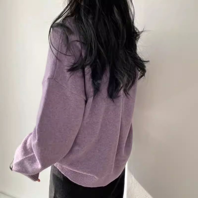 - Áo len dệt kim cổ tròn màu tím La Chapelle dành cho nữ, kiểu mới thu đông 2025, áo len phong cách lười biếng, áo thun rộng rãi.