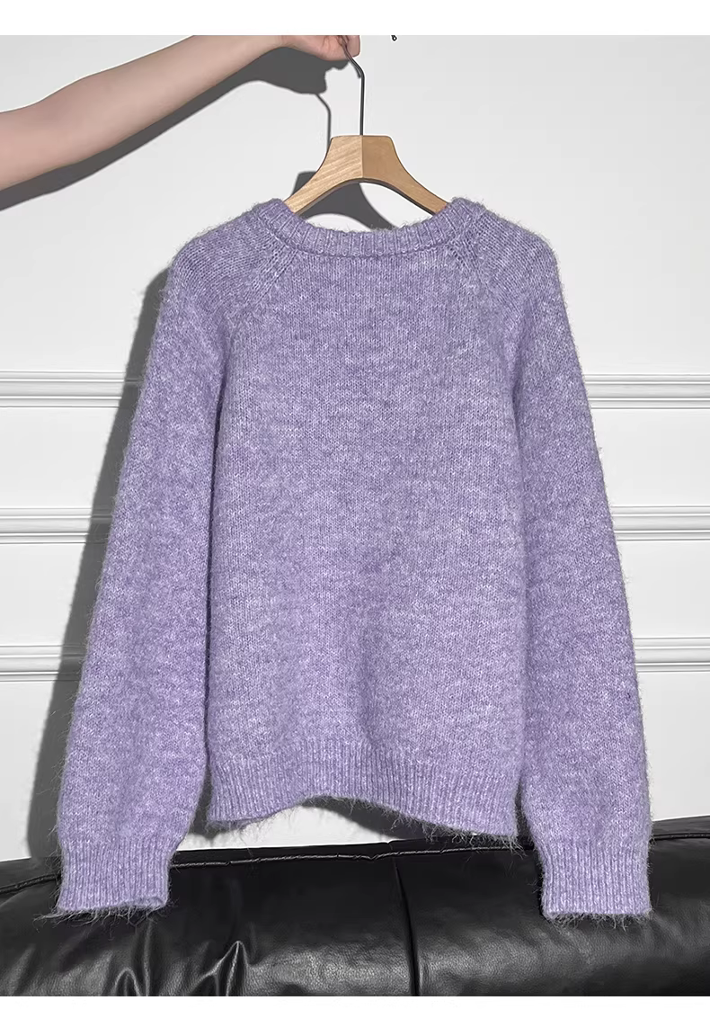 - Áo len dệt kim cổ tròn màu xám La Chapelle dành cho nữ, mẫu mới thu đông 2025, kiểu dáng rộng, chất liệu cardigan