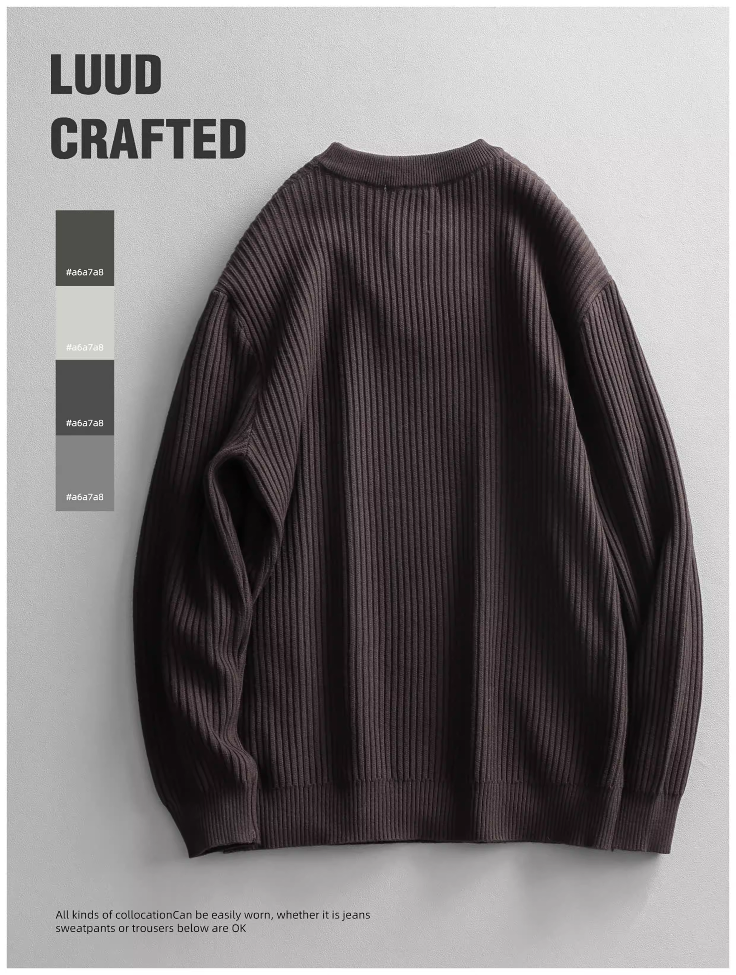 - Áo len dệt kim cổ tròn nhiều màu thời trang LUUD dành cho nam, áo len dệt kim dài tay ấm áp có sọc dọc, lớp trong.
