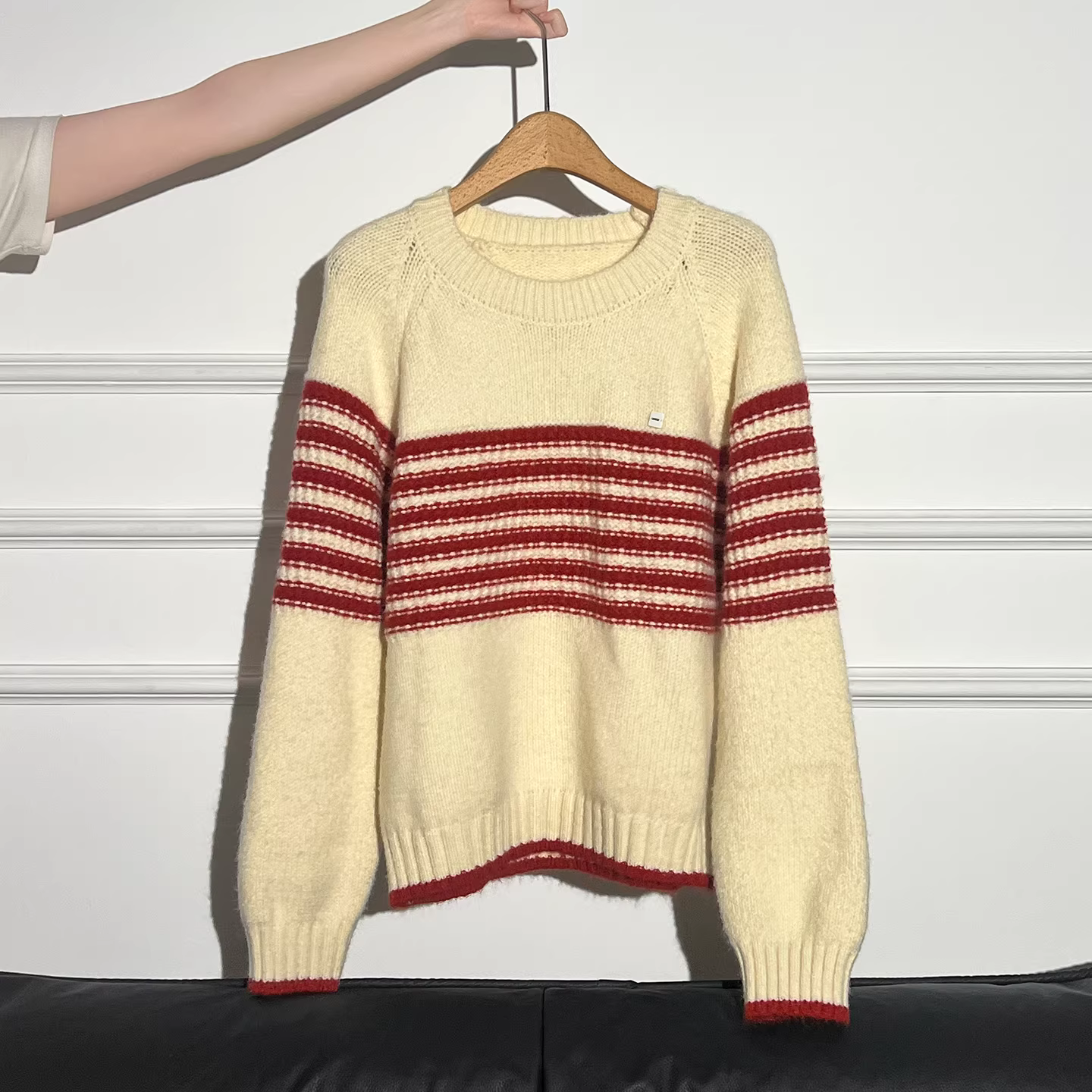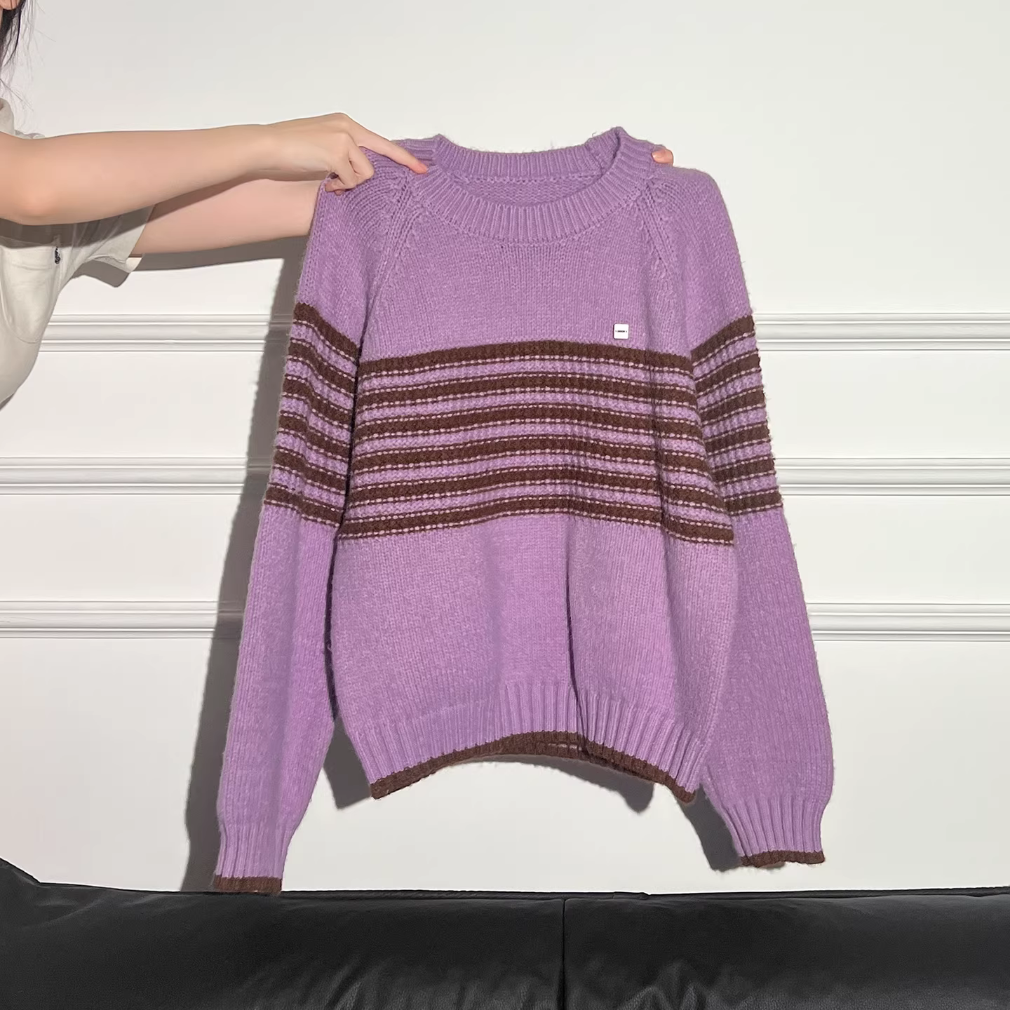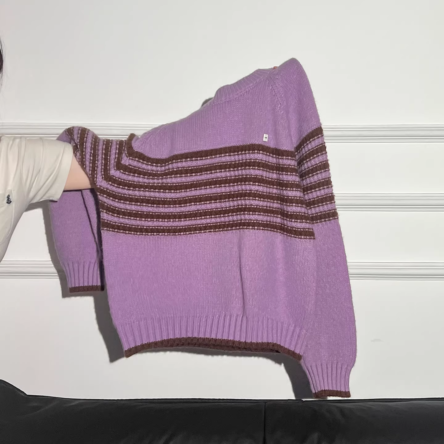 - Áo len dệt kim cổ tròn sọc tím La Chapelle dành cho nữ 2025 mới thu đông phong cách Hàn Quốc lớp trong