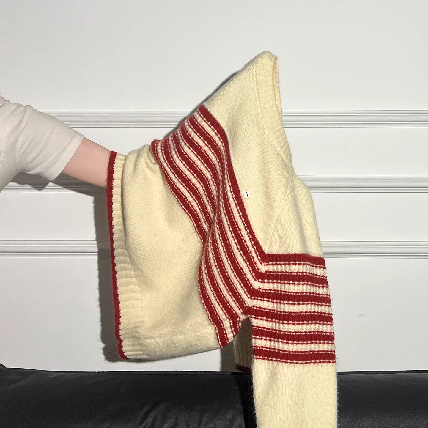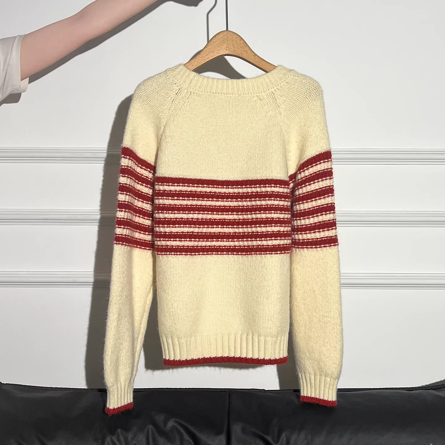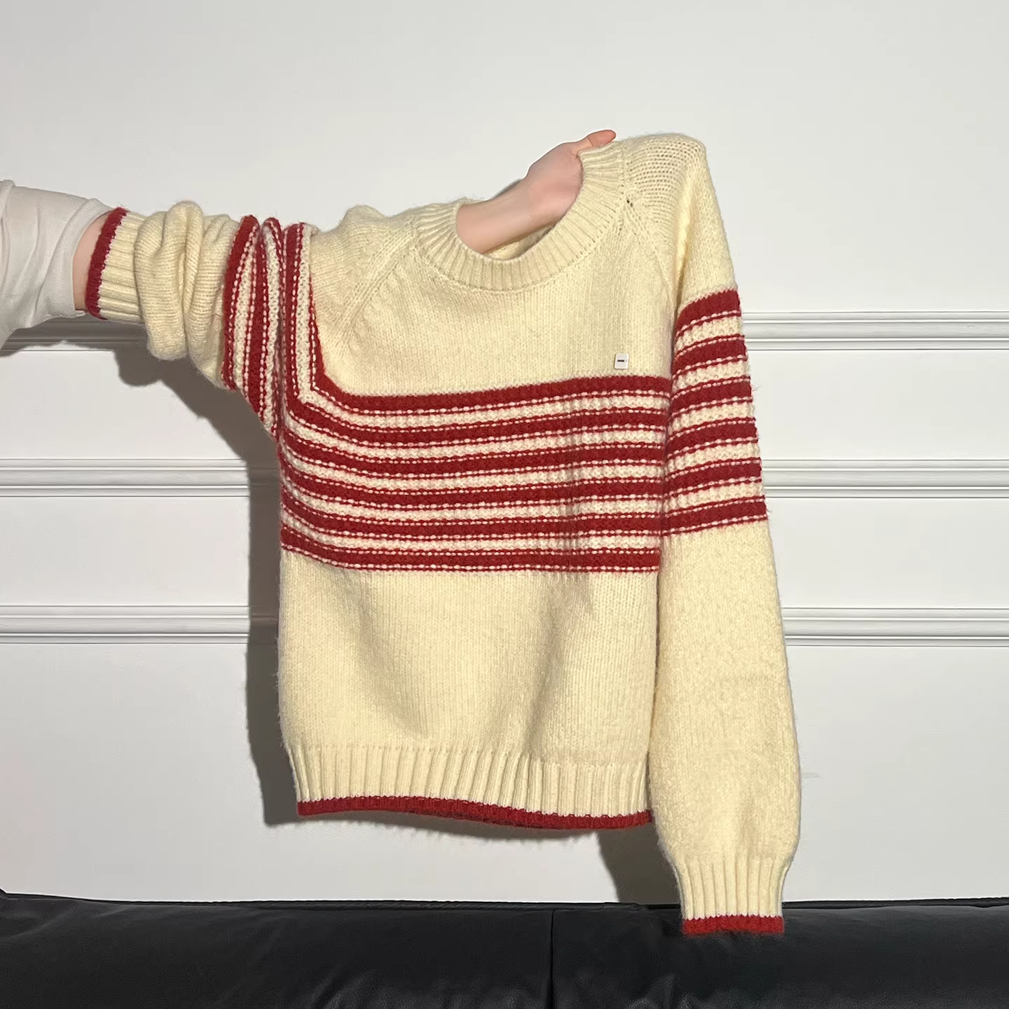 - Áo len dệt kim cổ tròn sọc tím La Chapelle dành cho nữ 2025 mới thu đông phong cách Hàn Quốc lớp trong