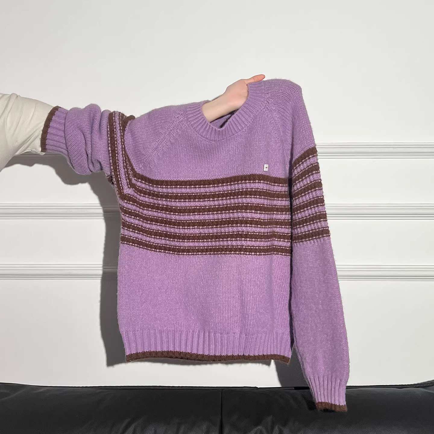 Áo len dệt kim cổ tròn sọc tím La Chapelle dành cho nữ 2025 mới thu đông phong cách Hàn Quốc lớp trong