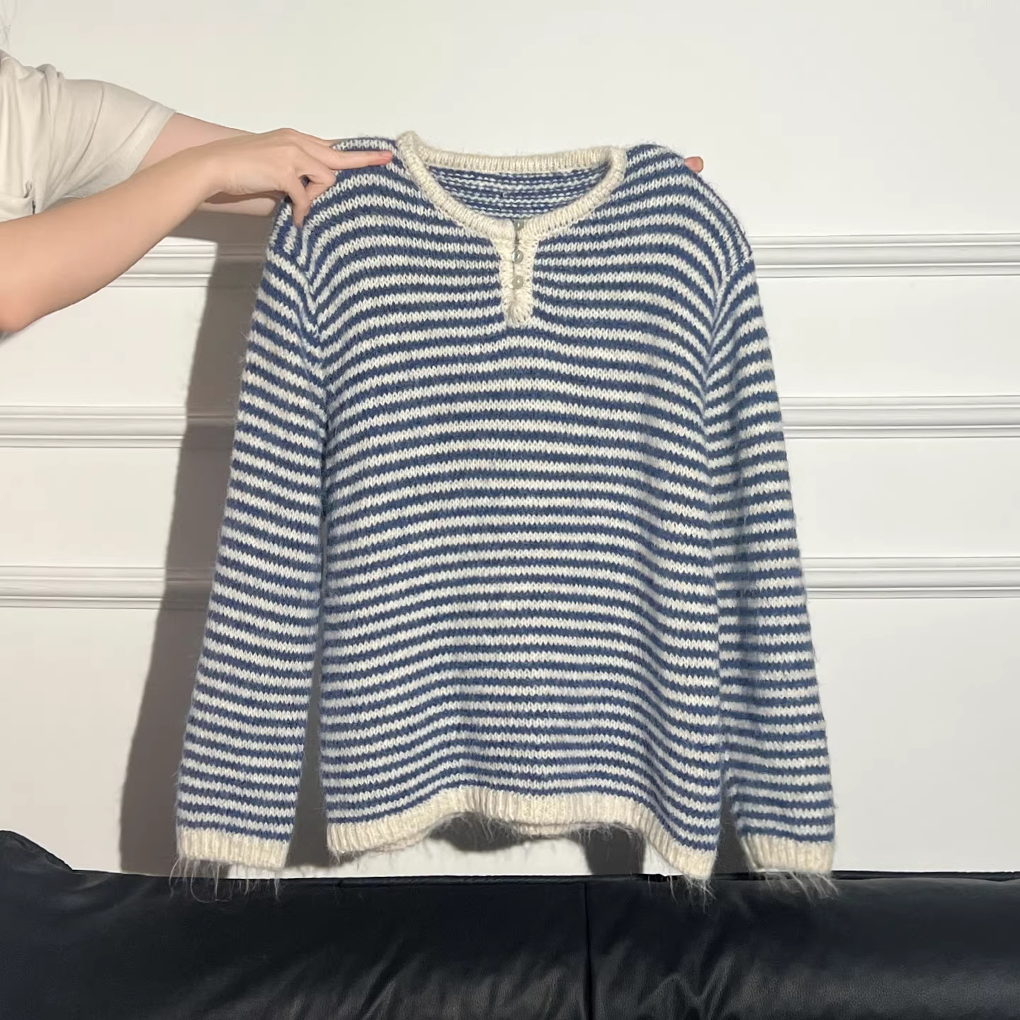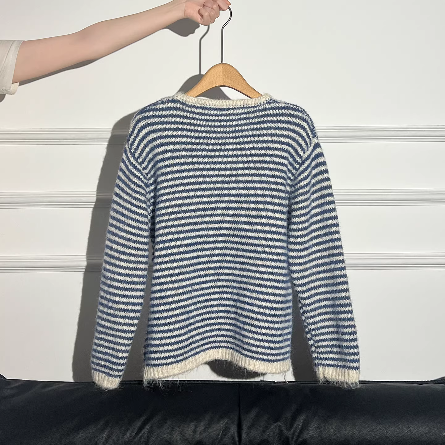 - Áo len dệt kim cổ tròn tay dài sọc đỏ La Chapelle dành cho nữ, mẫu mới thu đông 2025, áo lót Giáng sinh