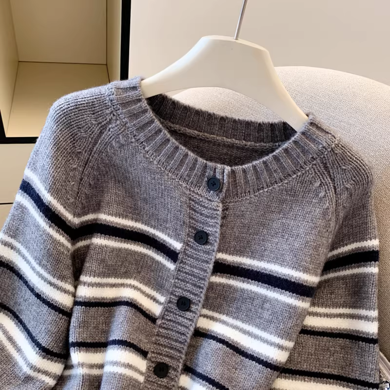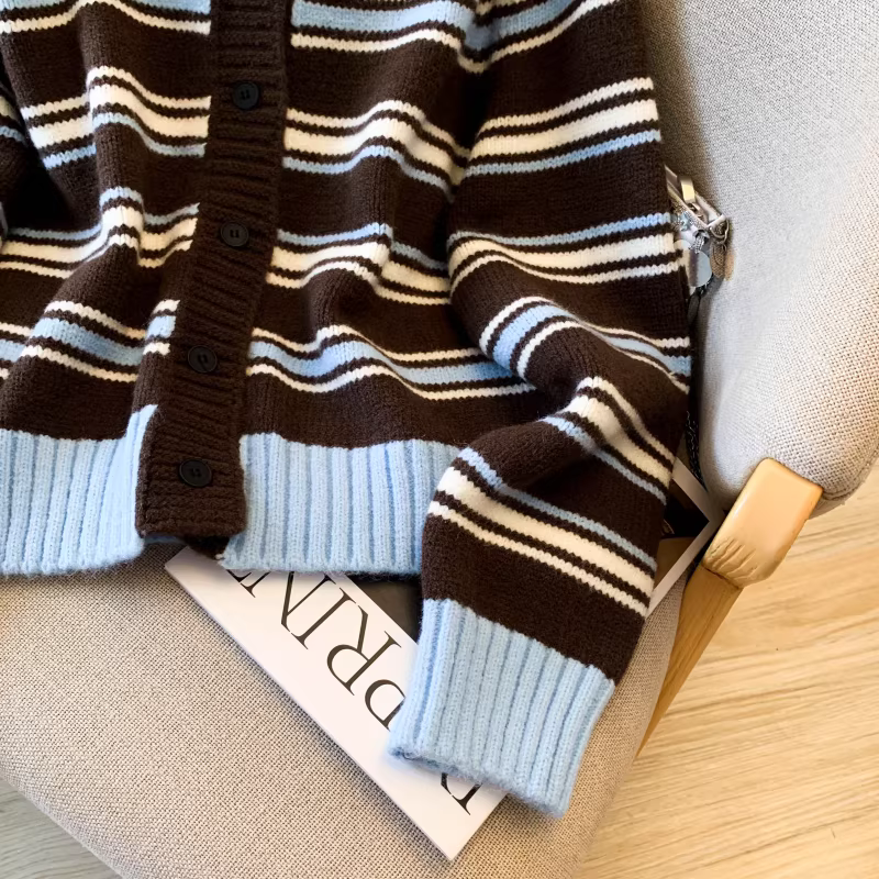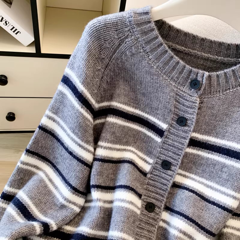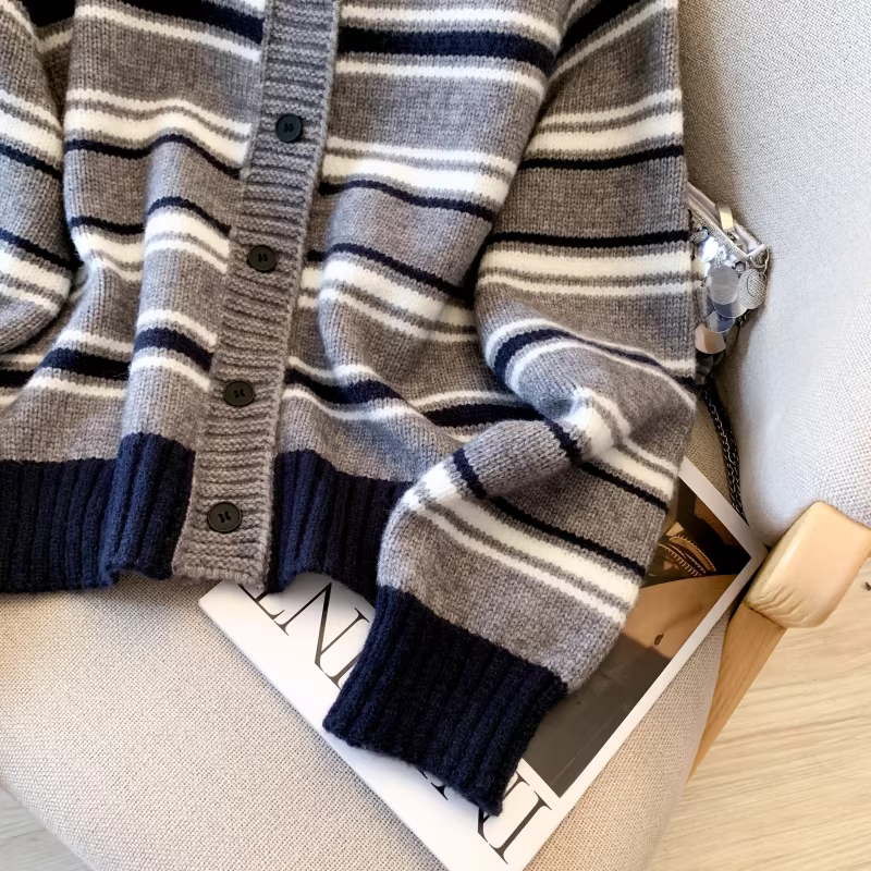 - Áo len dệt kim dài tay kẻ sọc phong cách La Chapelle dành cho nữ, mẫu mới thu đông 2025, kiểu dáng rộng rãi