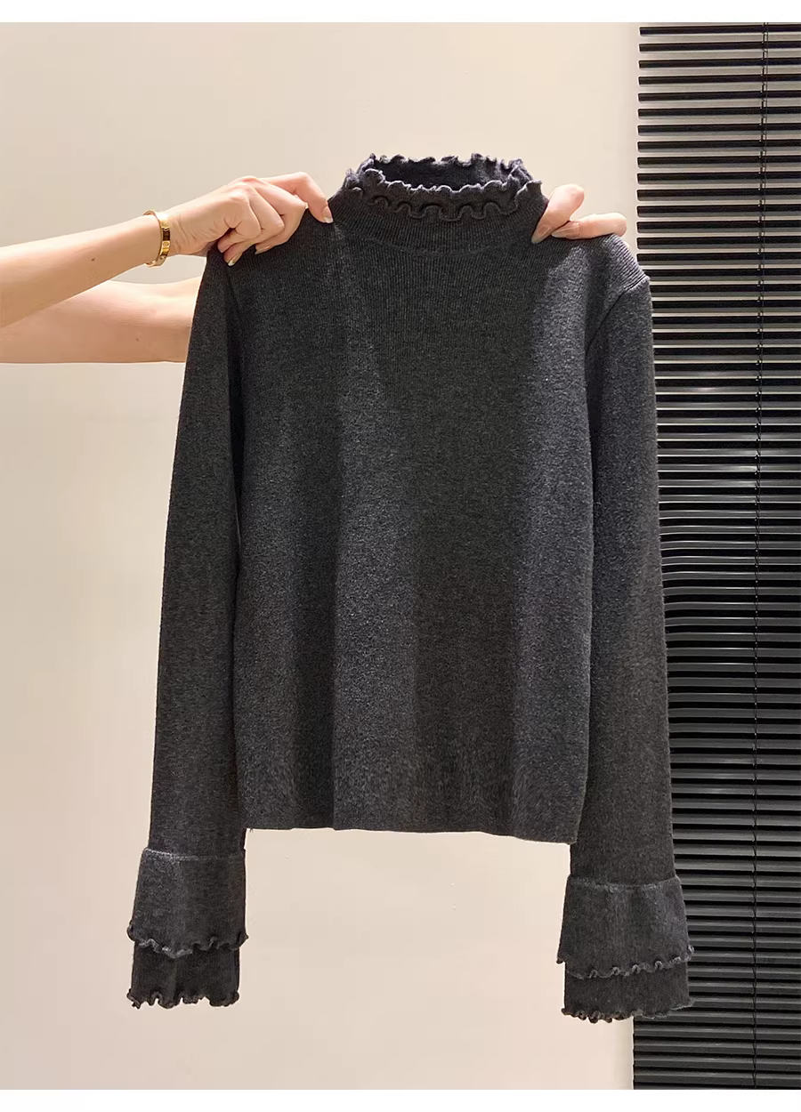 - Áo len dệt kim dài tay màu xám La Chapelle dành cho nữ 2025 lớp trong mới mùa thu đông