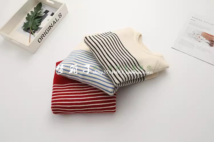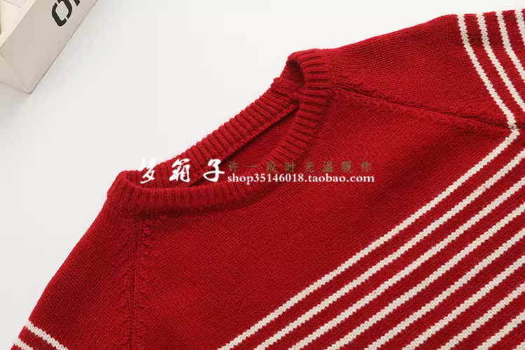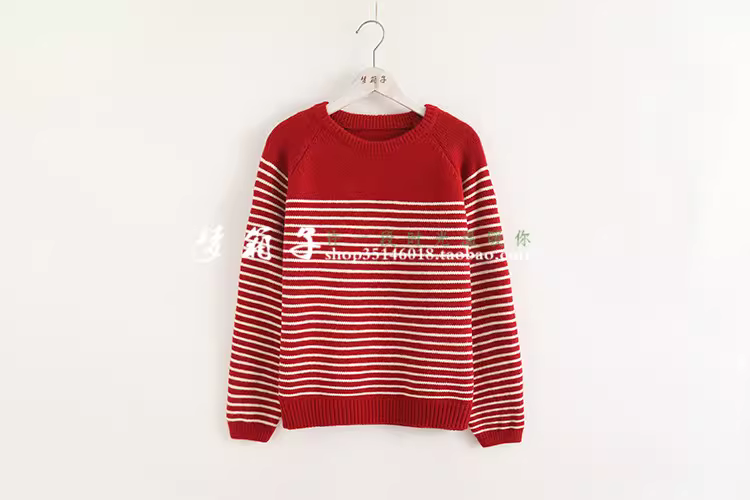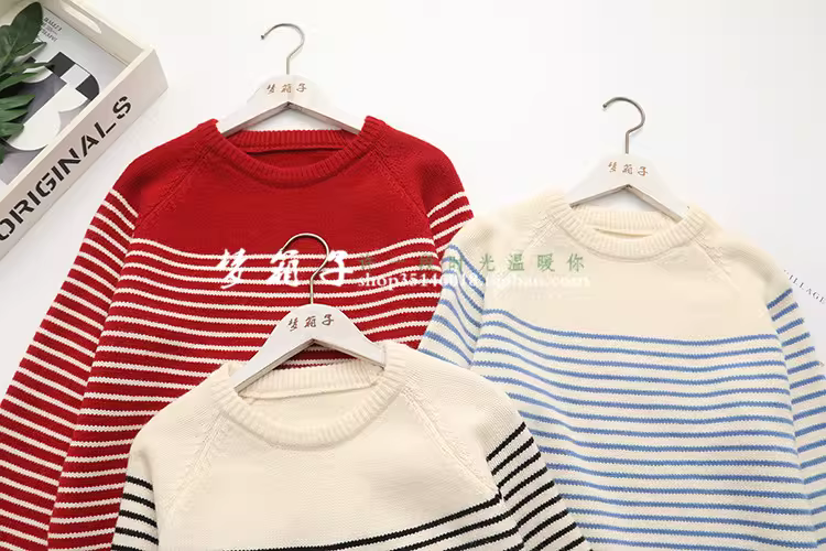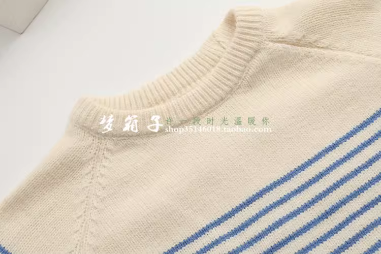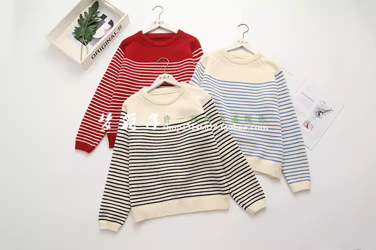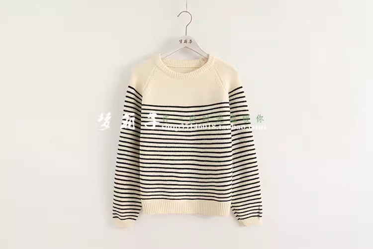 清新条纹,圆领套头,插肩袖,百搭宽松