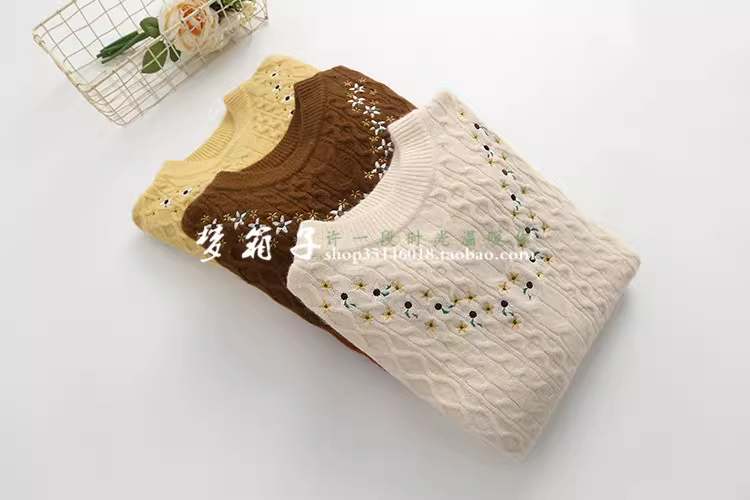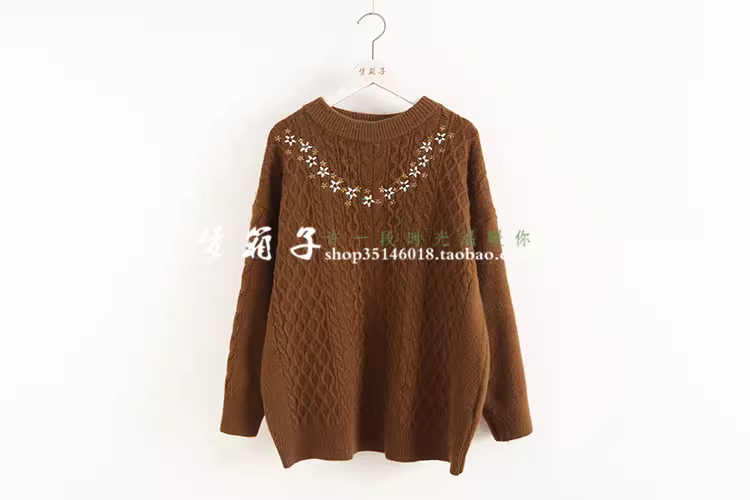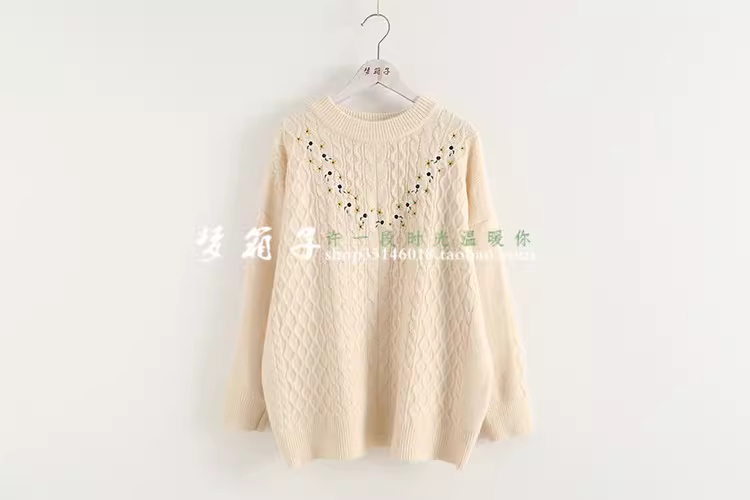 - Áo len dệt kim dáng rộng cổ tròn tay dài thêu hoa Mori Girl Thu Đông 2025 Dream Box