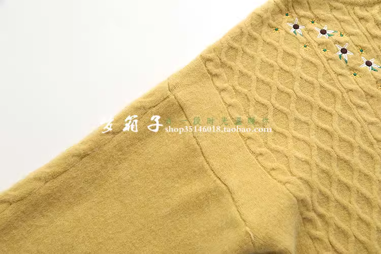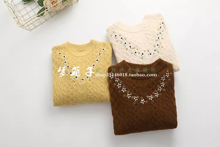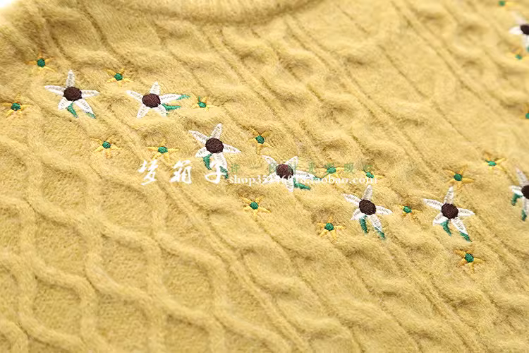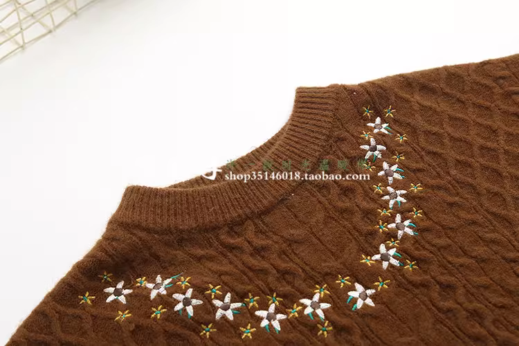 宽松套头,V字型小花朵刺绣绣花