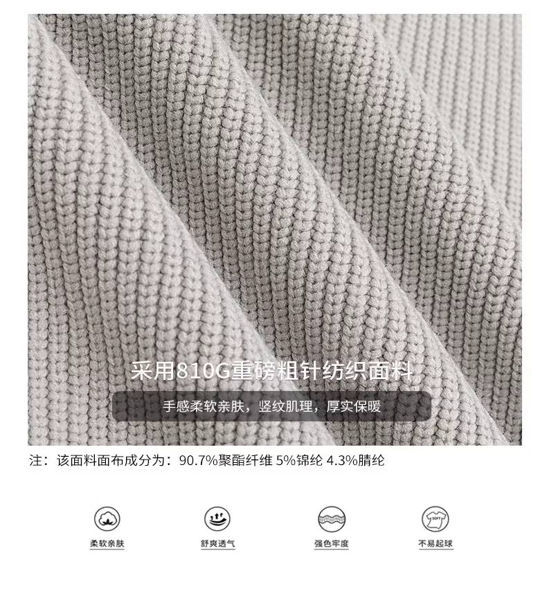 Áo len dệt kim hạng nặng dành cho nam, mùa thu đông, sọc dọc có kết cấu, dày dặn để giữ ấm, cổ tròn, áo khoác màu trơn.