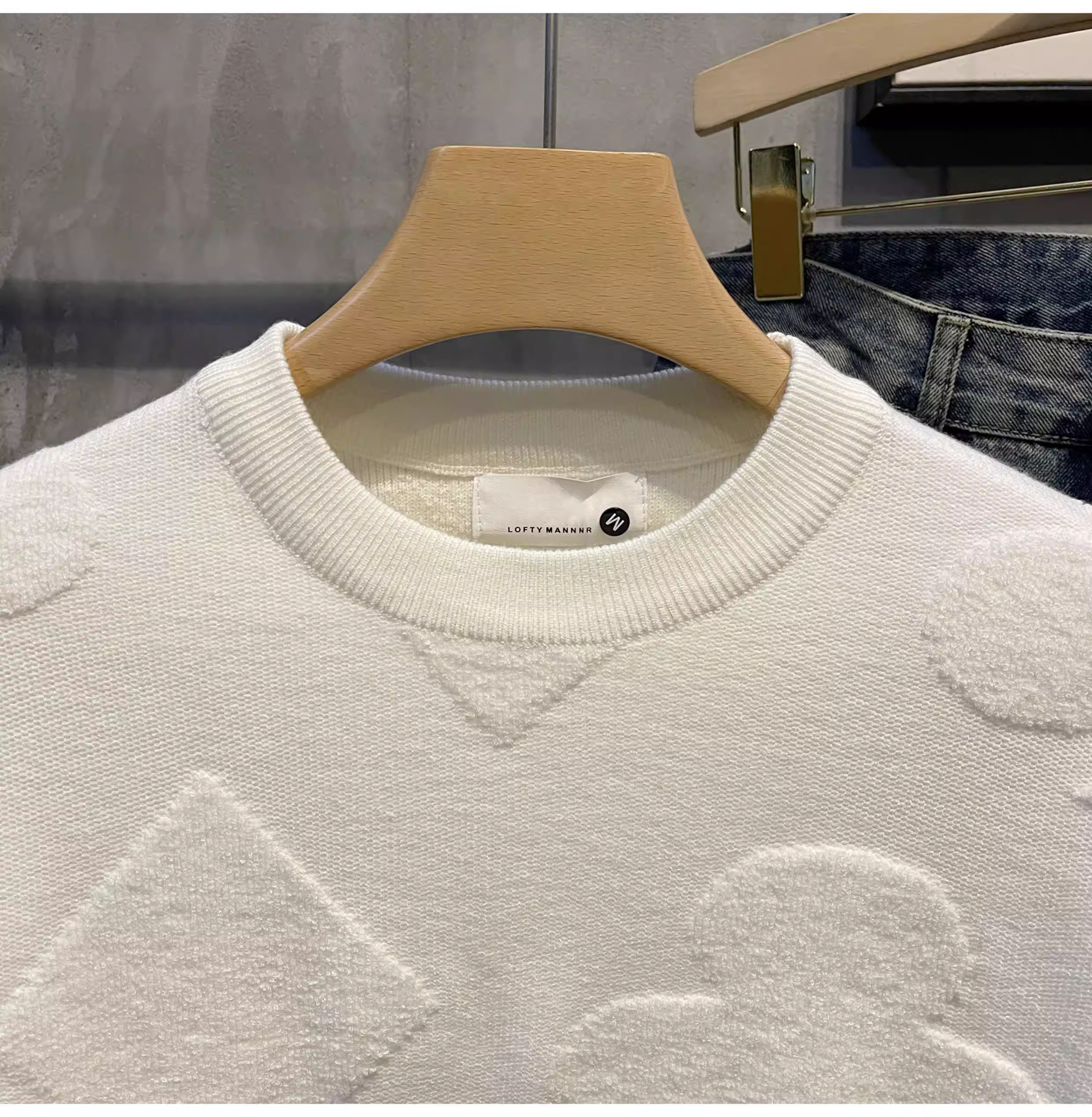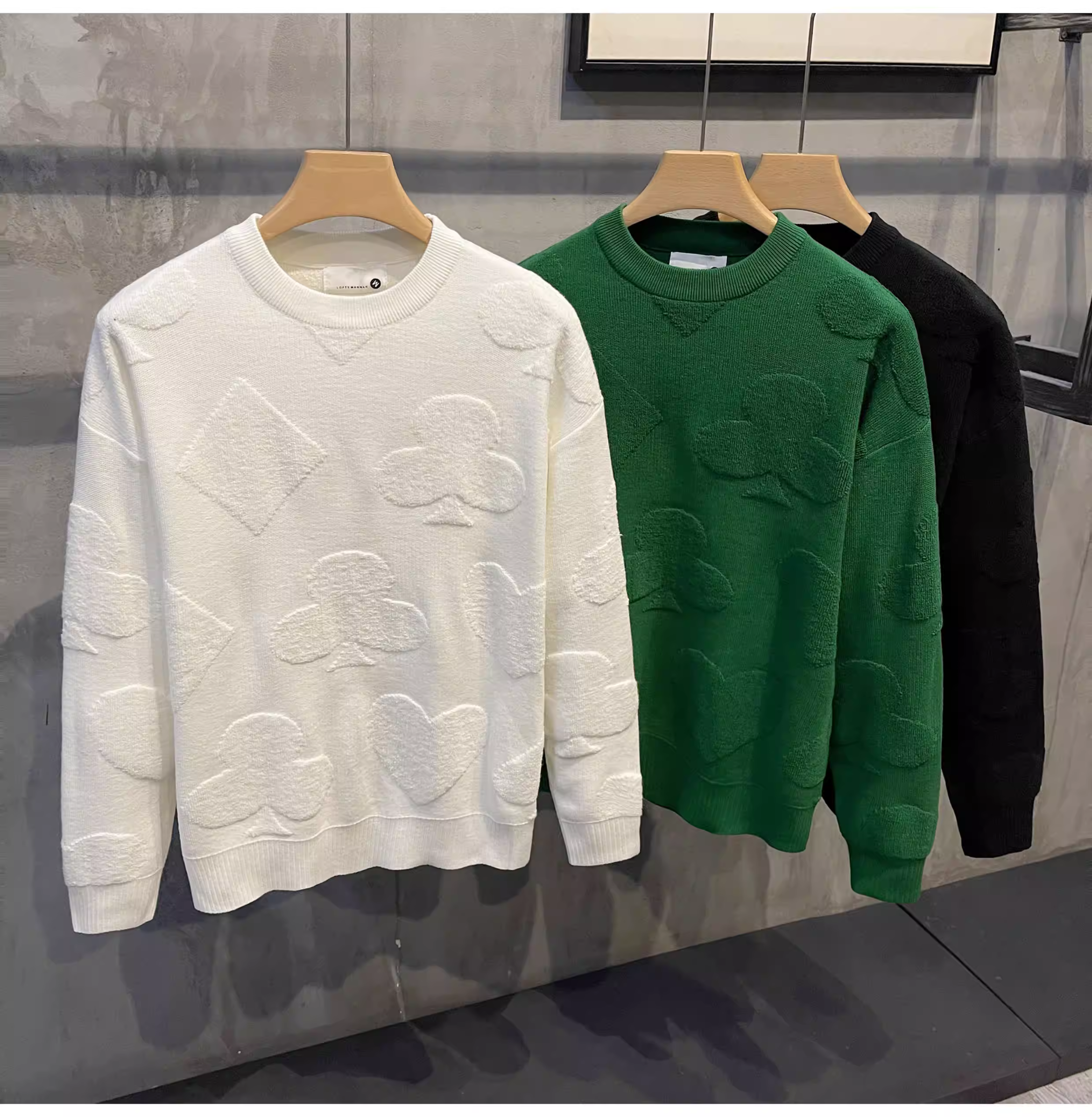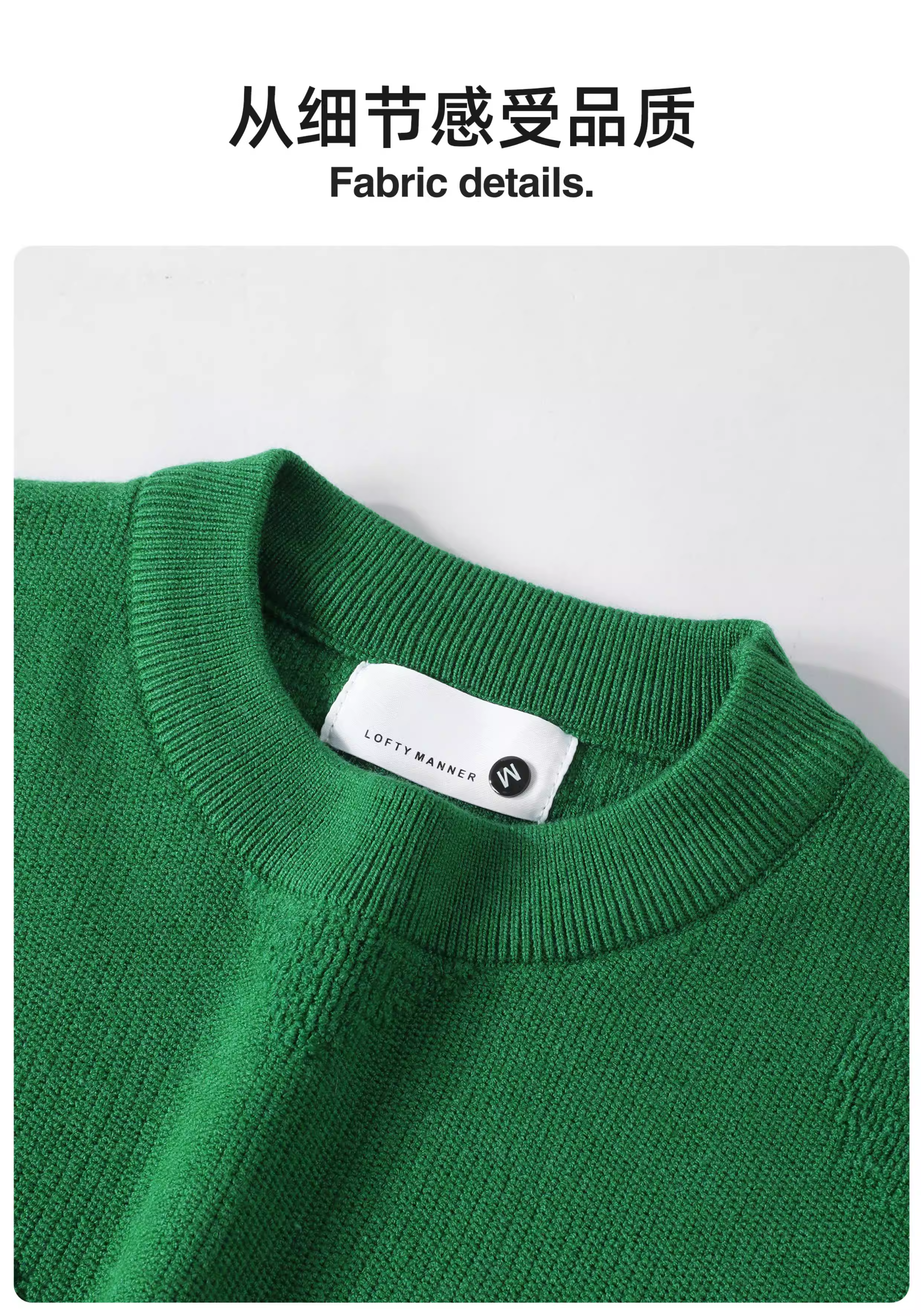 Áo len dệt kim jacquard màu trơn LUUD ấm áp, thời trang thu đông, cổ tròn, tay dài, chất liệu sợi core-spun, mặc trong cho nam