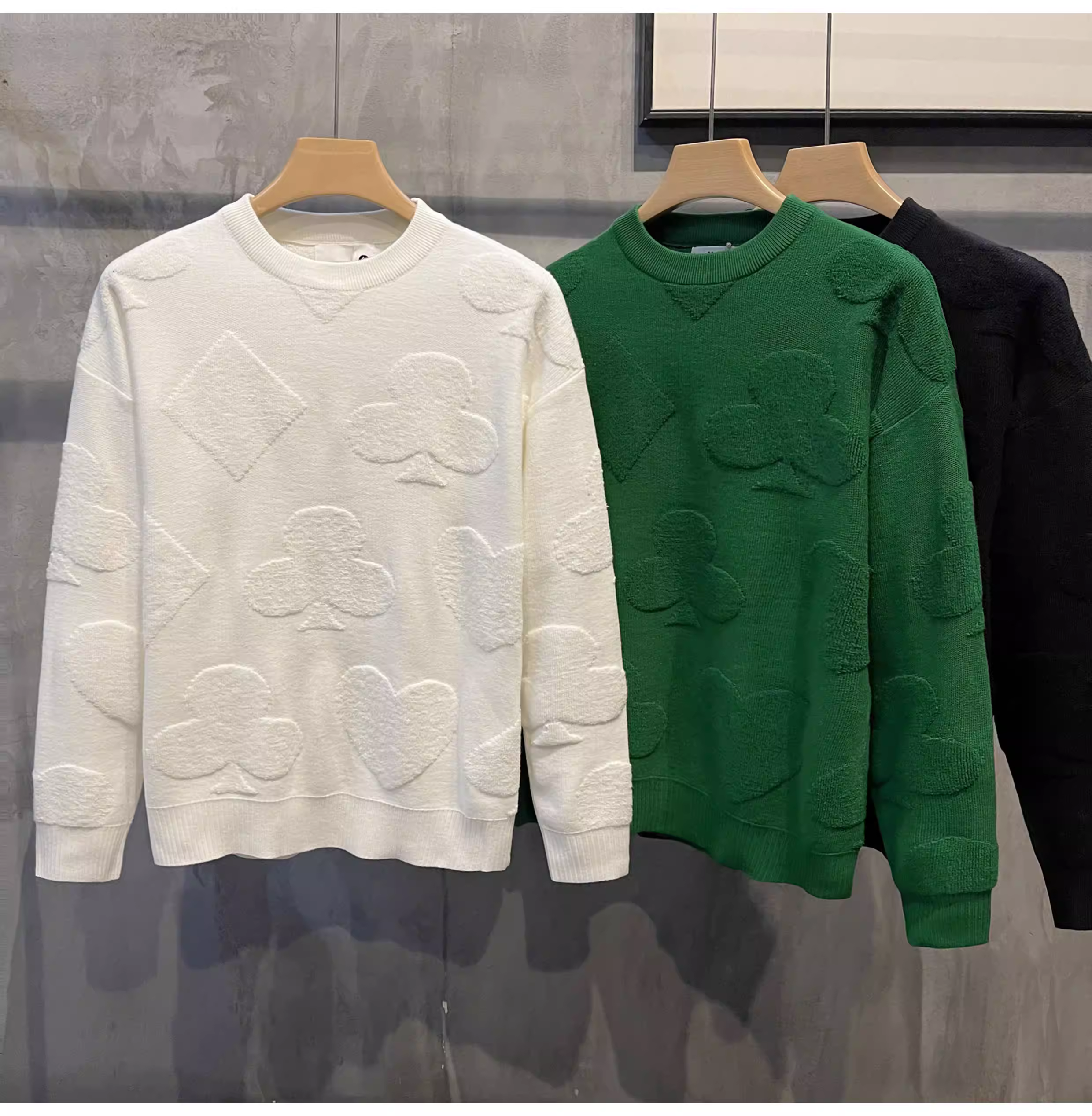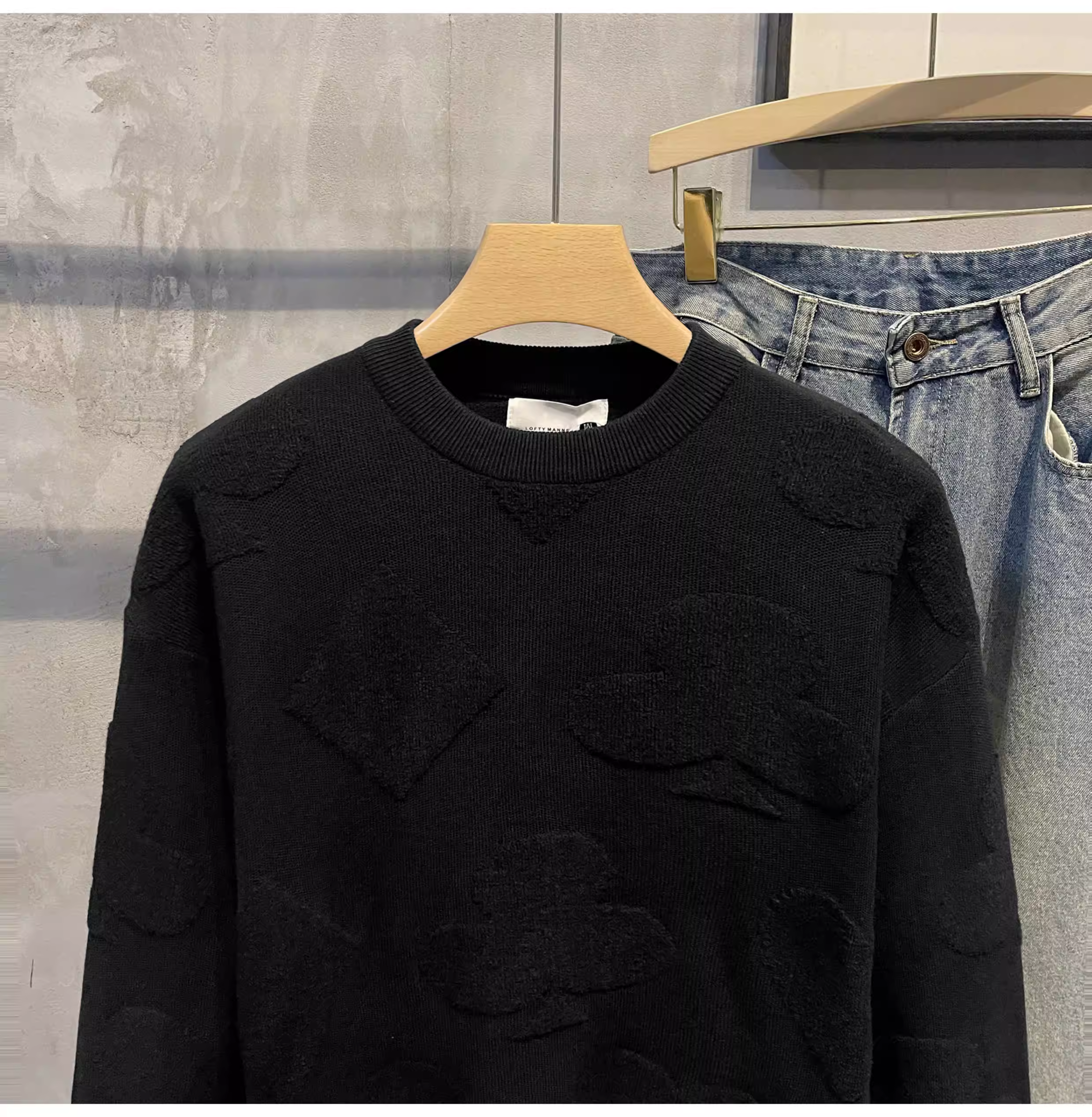 - Áo len dệt kim jacquard màu trơn LUUD ấm áp, thời trang thu đông, cổ tròn, tay dài, chất liệu sợi core-spun, mặc trong cho nam
