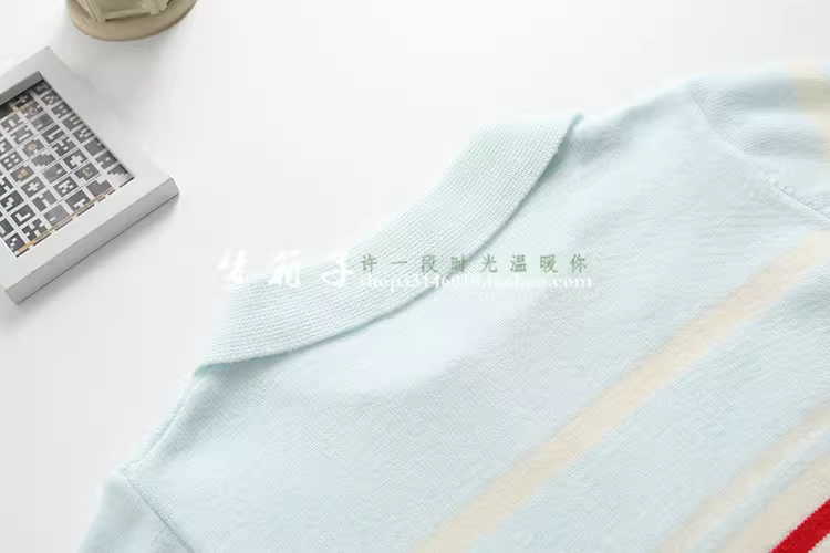 - Áo len dệt kim kẻ sọc dáng rộng cổ polo khóa kéo thêu chữ mùa thu mới Dream Box 2025