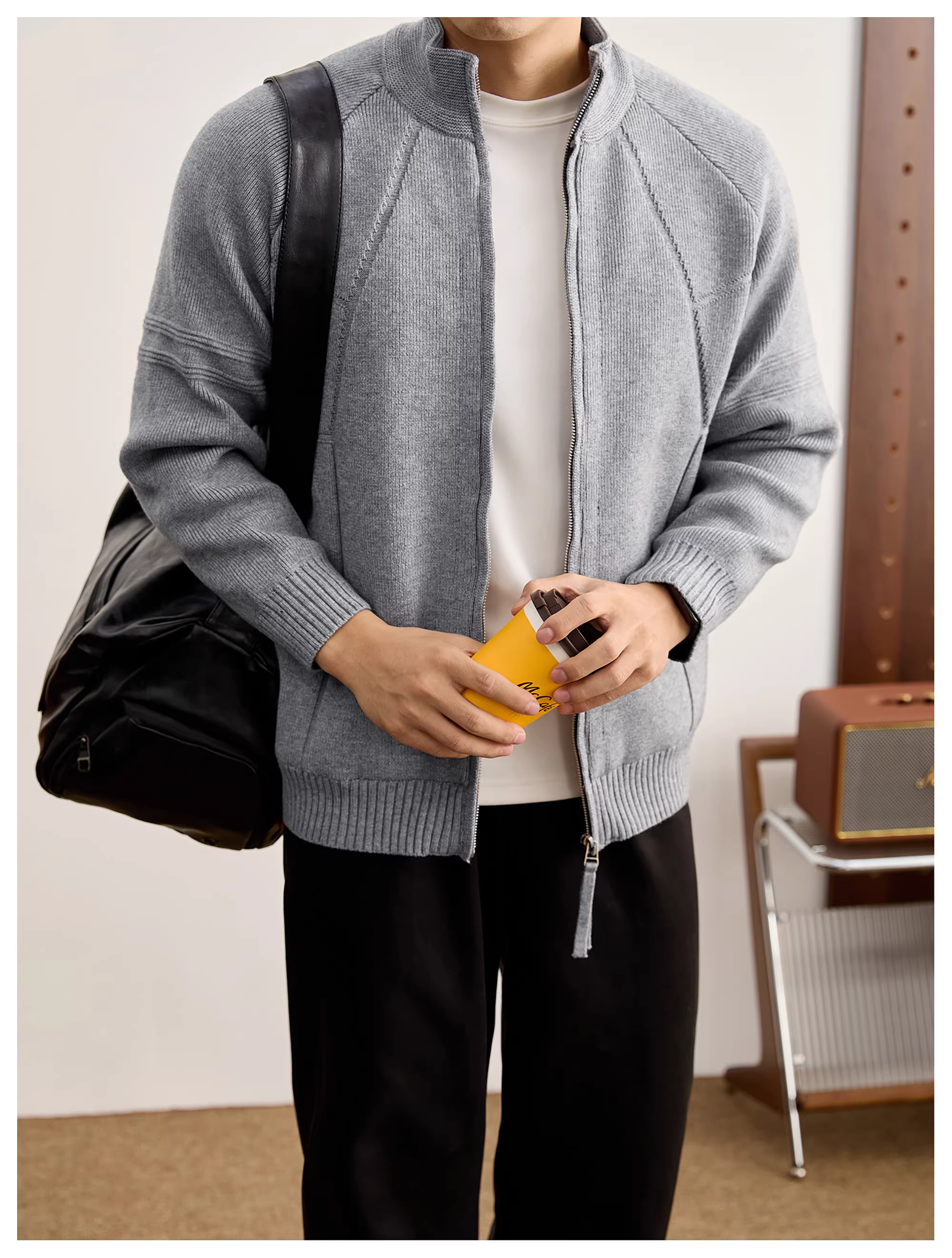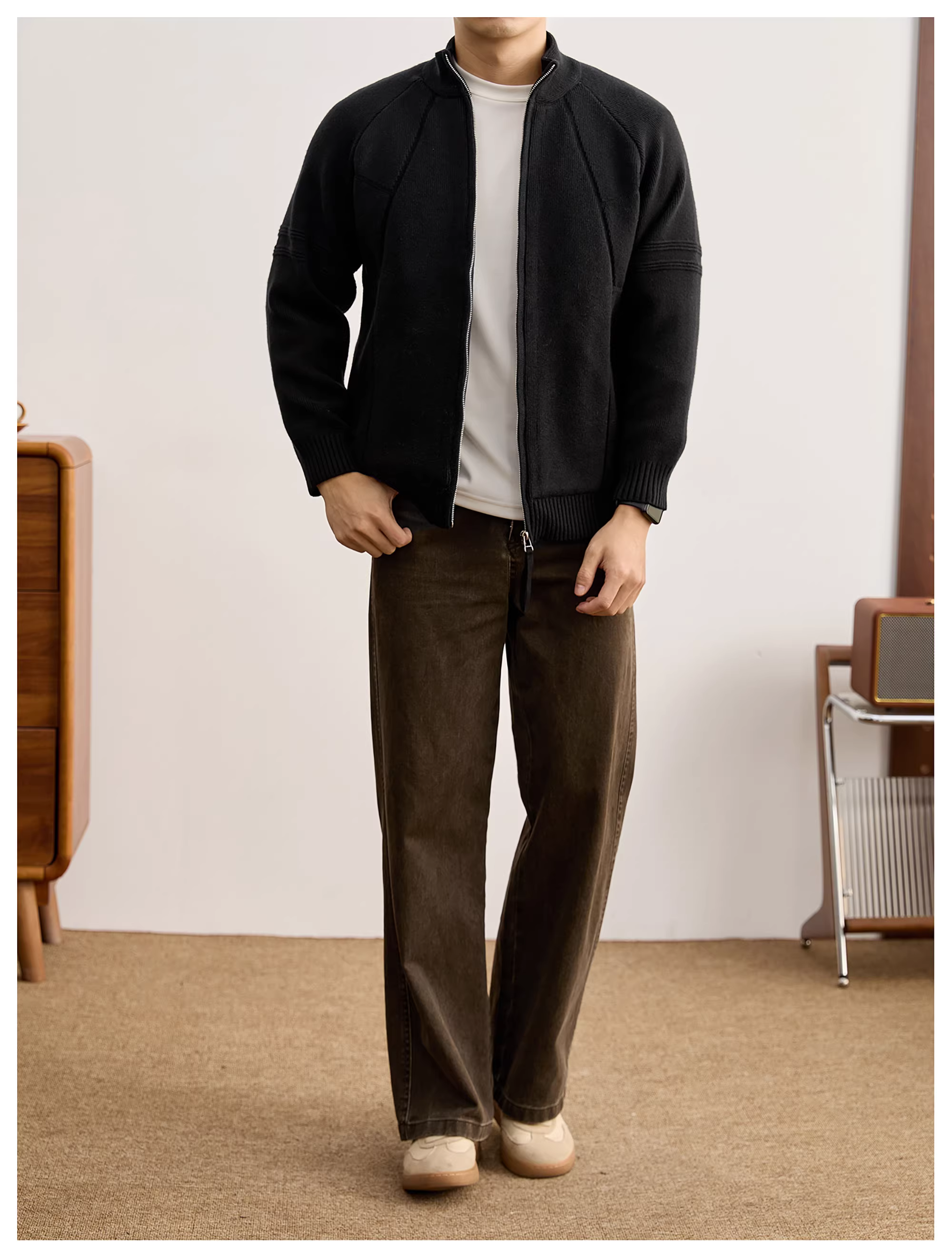 Áo len dệt kim màu trơn có họa tiết gân hình học LUUD dành cho nam, áo khoác len cổ đứng dày dặn ấm áp mùa đông